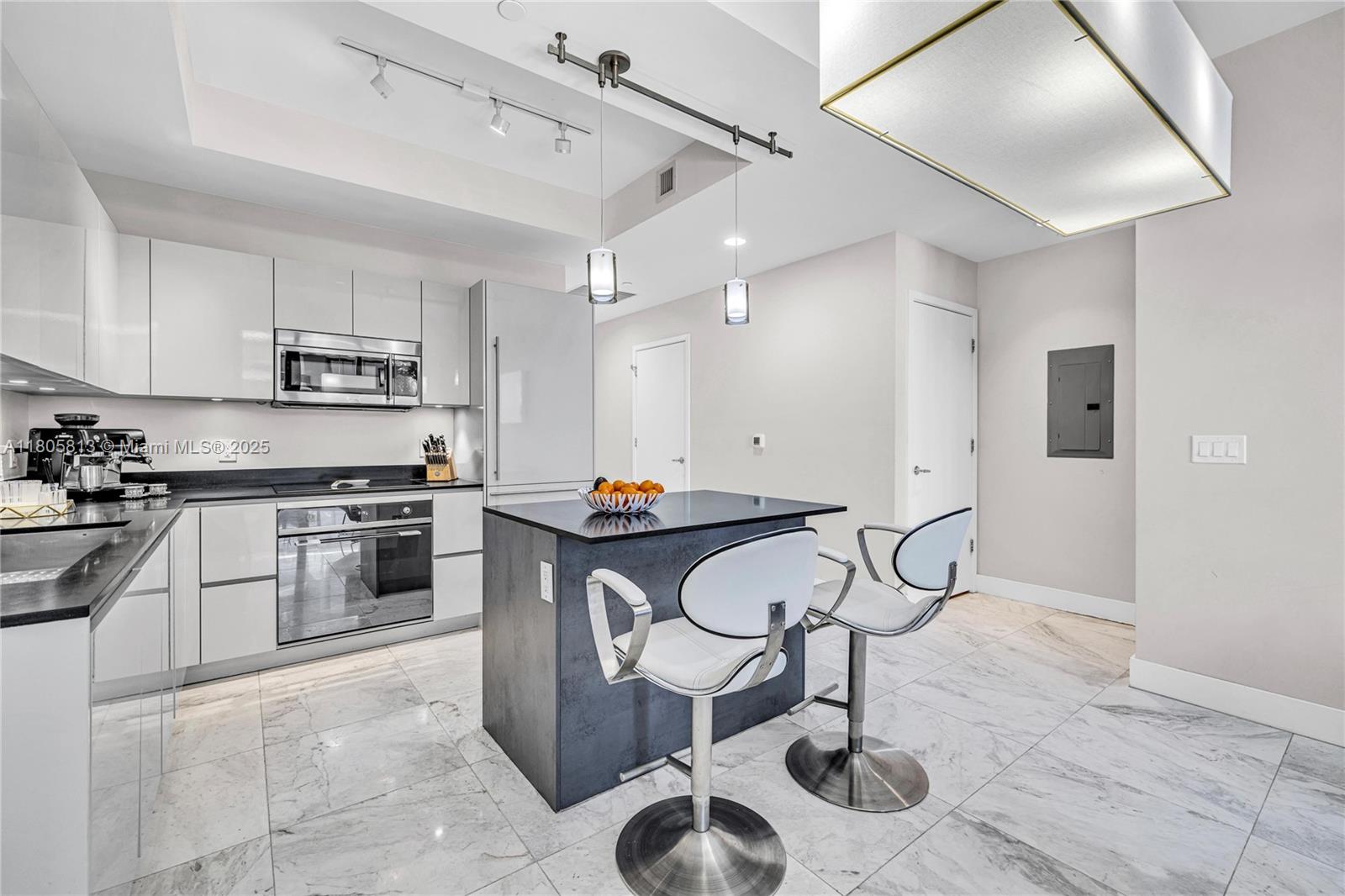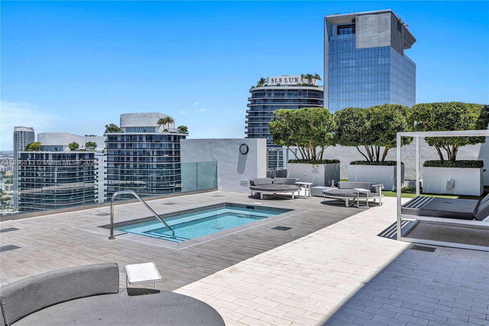 This stunning architectural gem seamlessly combines luxury with modern elegance. Situated on the 48th floor, this 2-bedroom, 3-bath Lower Penthouse boasts expansive floor-to-ceiling glass walls that frame panoramic views of the Miami skyline, alongside a generous balcony perfect for outdoor relaxation. The interiors are adorned with premium finishes, including porcelain flooring and a sleek European kitchen. Exceptional amenities include an indoor heated pool with retractable glass walls that open to an outdoor pool and Jacuzzi, a sun deck, and a rooftop terrace. The exclusive Club at 1010 features a two-story spa with a Hammam Turkish steam bath, a state-of-the-art fitness center, and a running track, offering an unparalleled lifestyle of comfort and convenience.