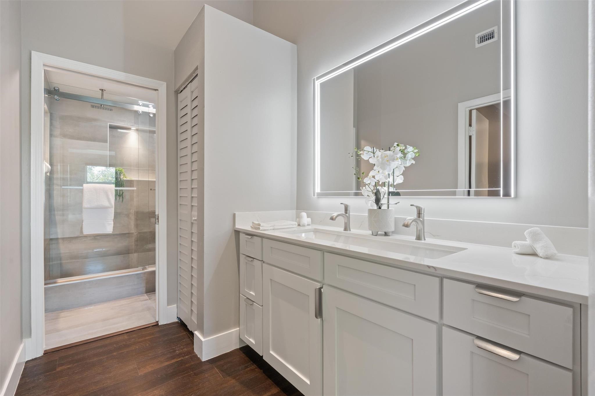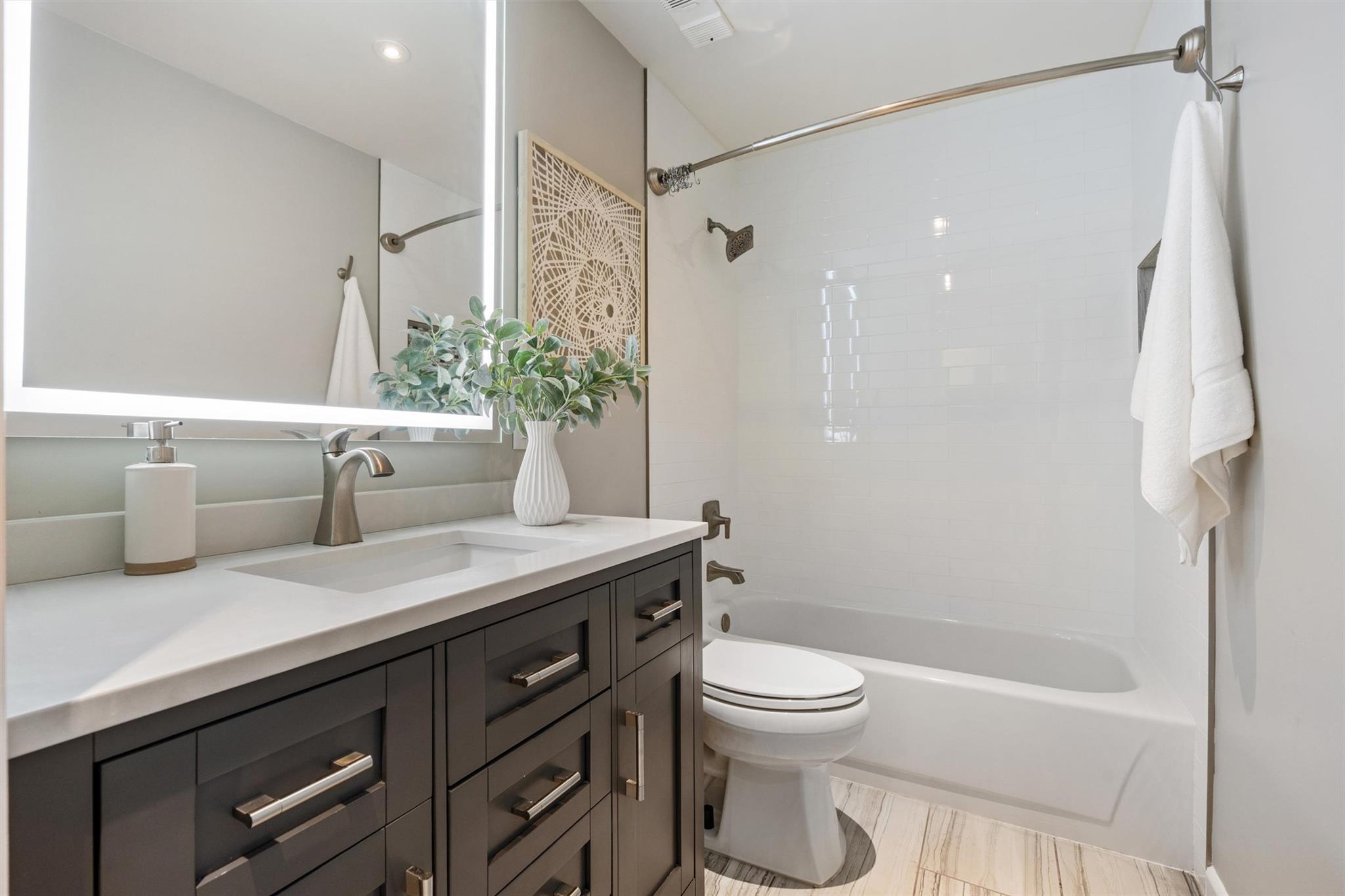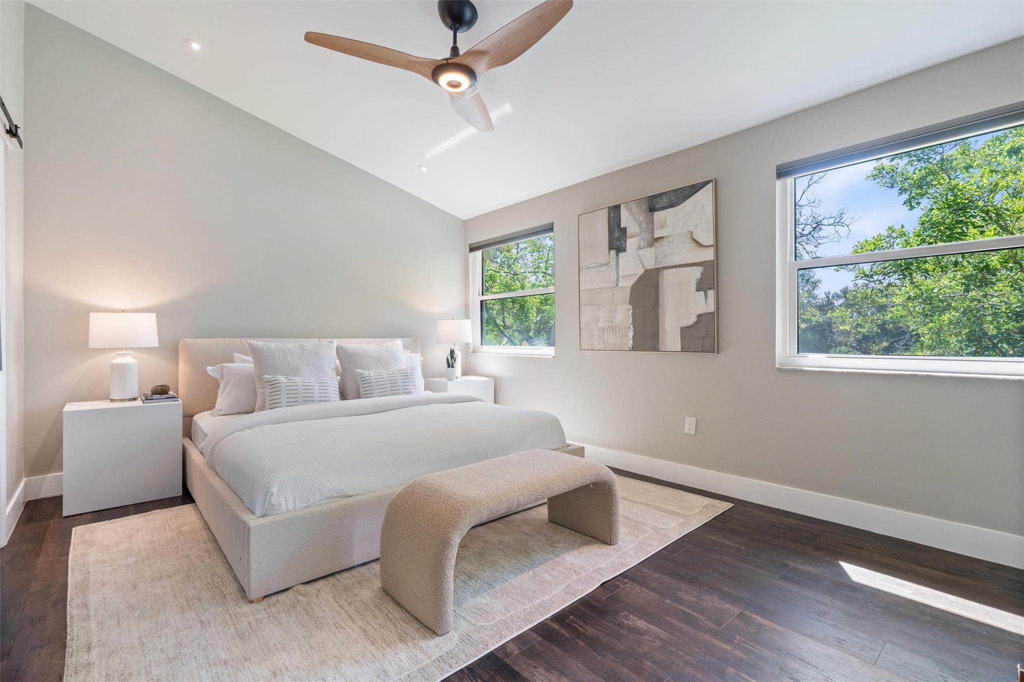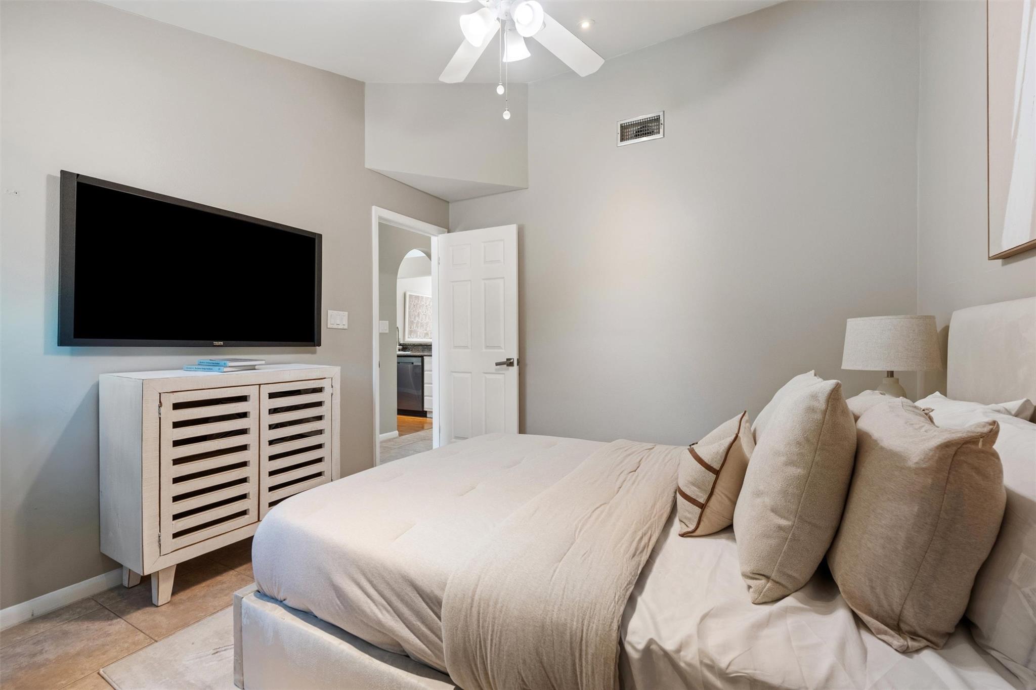 Welcome Home! You’re going to fall in love w/the open layout, cathedral ceilings & skylights which create a bright & airy flow throughout. Hunter Douglas blinds add a touch of class & ~YES~ those are 2 Big Ass Fans (literally!) offering both style & comfort. The bathrooms are generously sized & modern w/beautiful mirrors that elevate the design. Both bedrooms are comfortable in size & include closet built-ins for maximum storage. The primary suite features a stylish new barn door that opens to a beautiful spa-like bathroom & a walk-in closet. Enjoy the views of the lake & the lush, park-like grounds from the living area & primary bedroom. “Wine down” at the end of the day on your spacious screened-in patio ~ the perfect, serene place to relax. CHECK OUT THE VIDEO TOUR ABOVE!