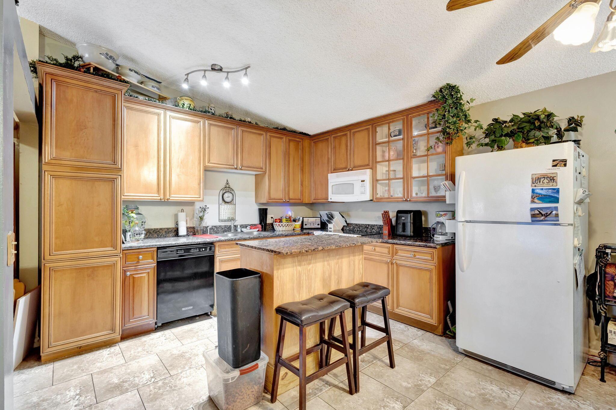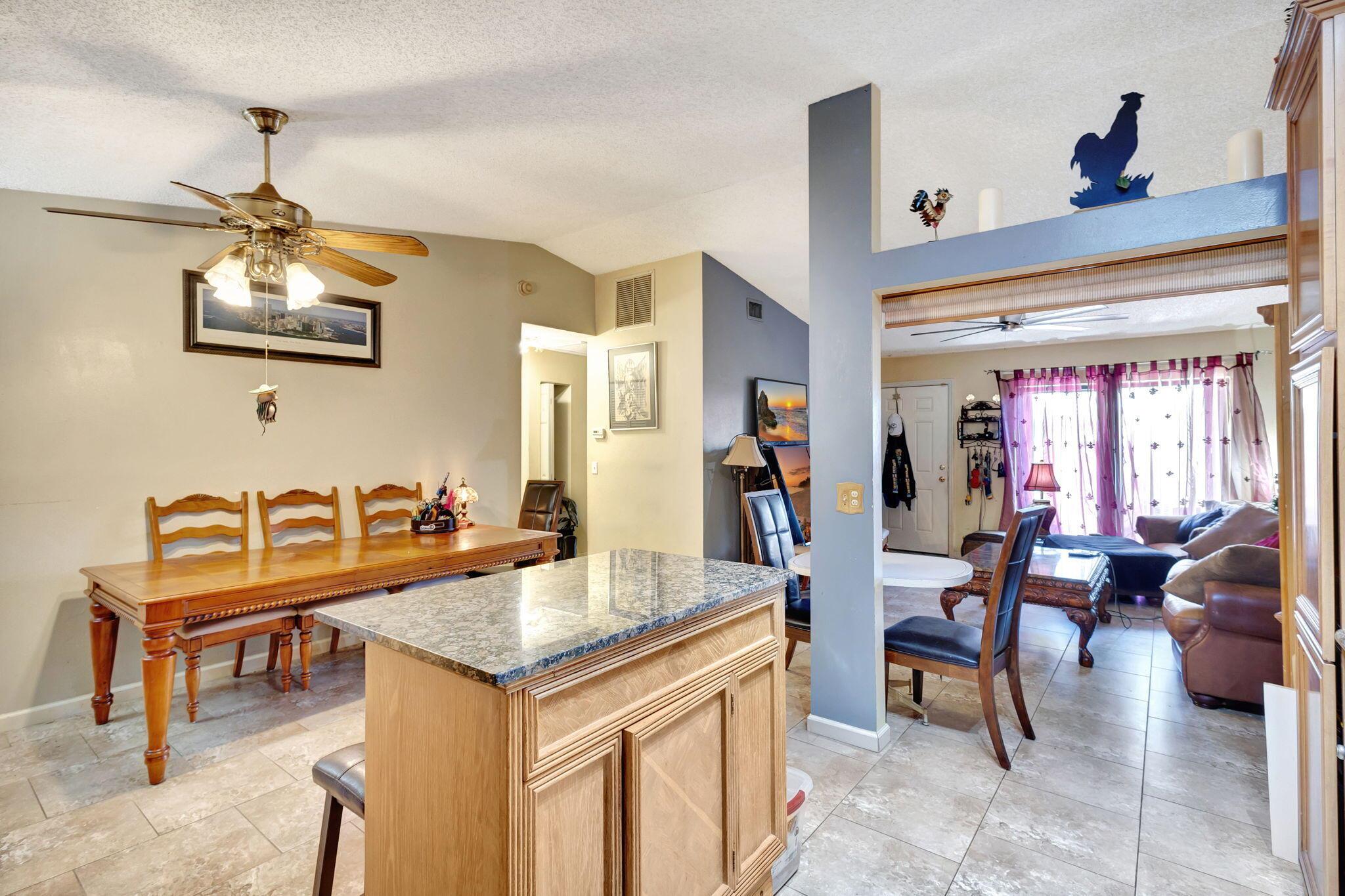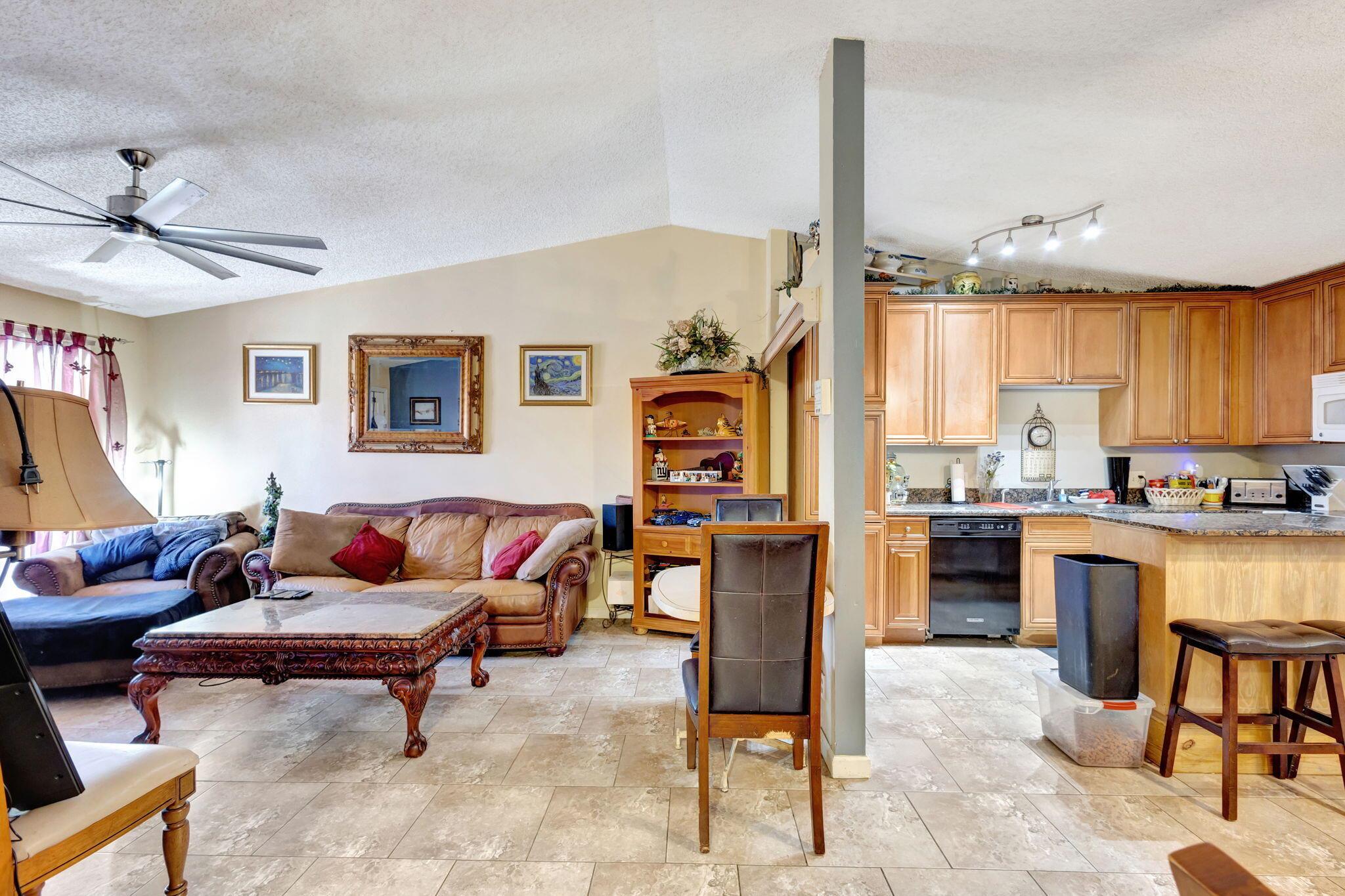 Spacious and open, this home features tile flooring throughout for easy upkeep and a sleek look. The kitchen boasts rich wood cabinets and elegant granite countertops, perfect for cooking and entertaining. Enjoy expansive living areas with volume ceilings that create an open, airy feel. Every window is fitted with accordion shutters, offering both safety and convenience. With its thoughtful design, this home offers comfort, style, and functionality in every room.