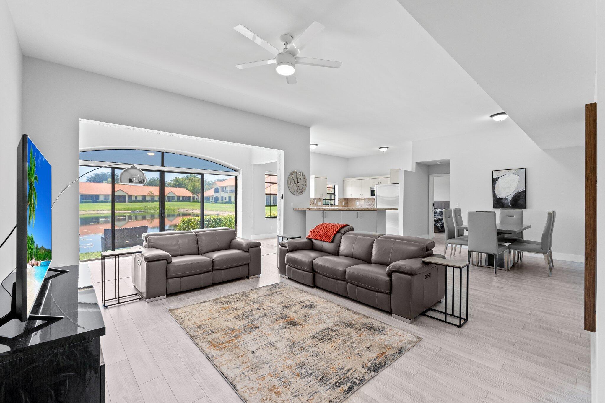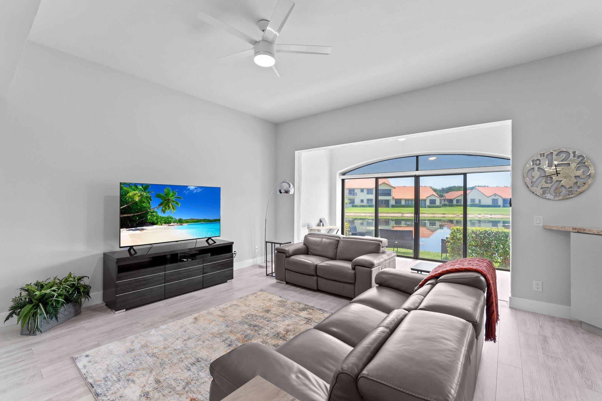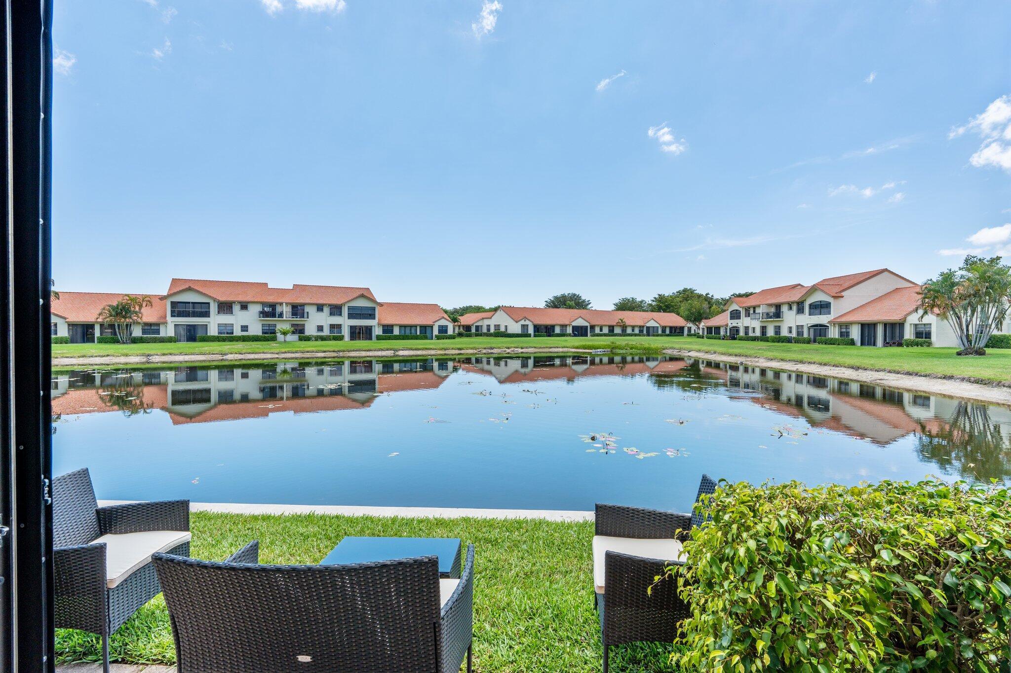 Panoramic lake views steal the show in this beautifully updated 2 bed, 2 bath single story condo with a 1-car garage in The Harbours at Aberdeen, an active 55+ community. The renovated kitchen features new cabinetry, upgraded countertops, and bar seating, all overlooking the water. Vaulted ceilings, natural light, and water-resistant laminate flooring create a warm, open feel. The primary suite offers lake views, a walk-in closet, skylit shower, and dual vanities. Additional updates include a 2023 water heater, 2014 AC, accordion shutters, and interior laundry. HOA covers roof maintenance, exterior insurance, landscaping, cable, water, and more. Enjoy access to pools, tennis, pickleball, clubhouse, and a vibrant calendar of social events.