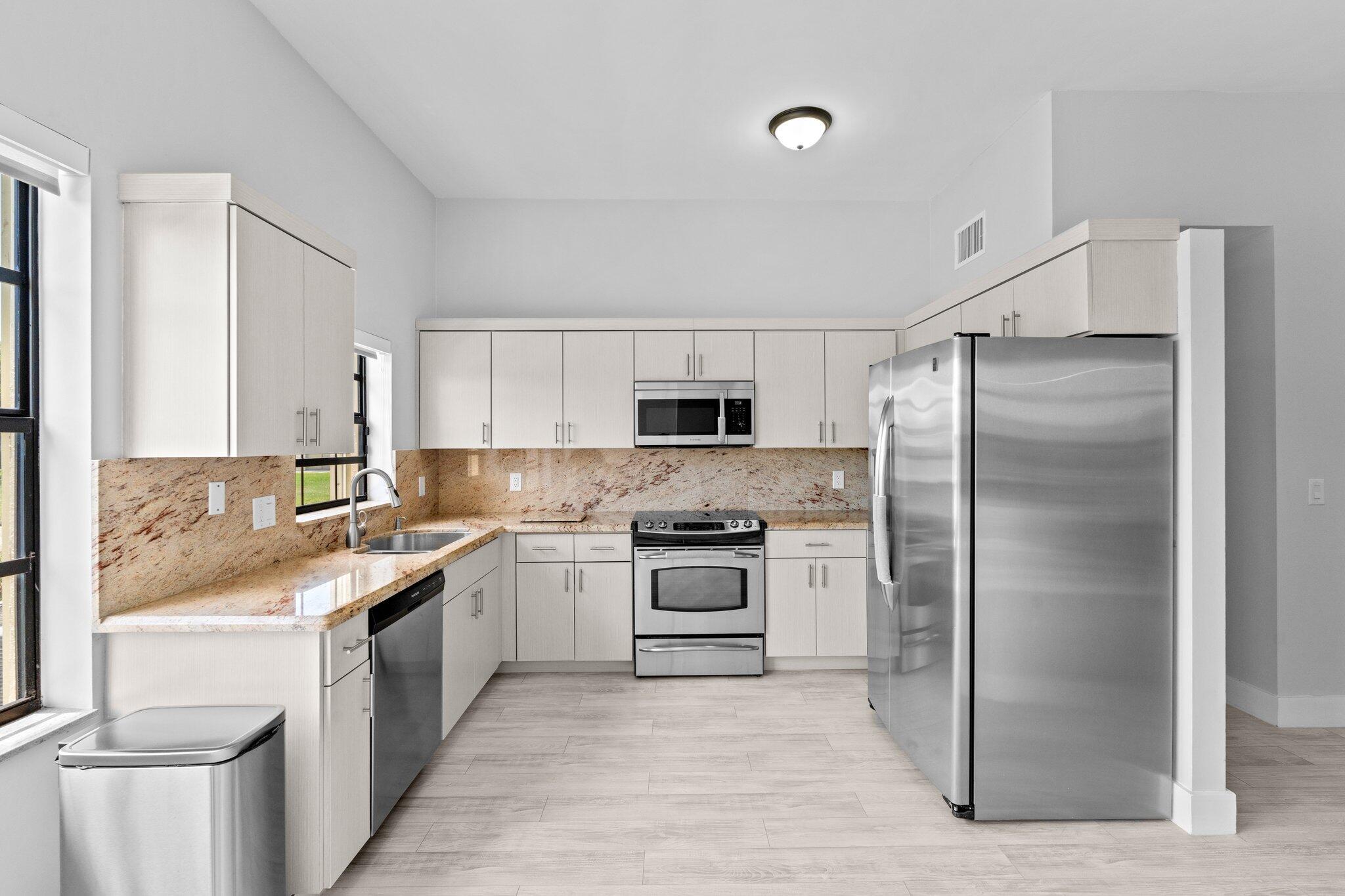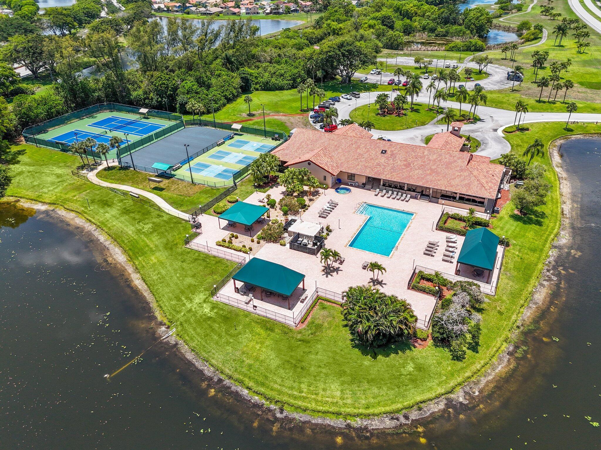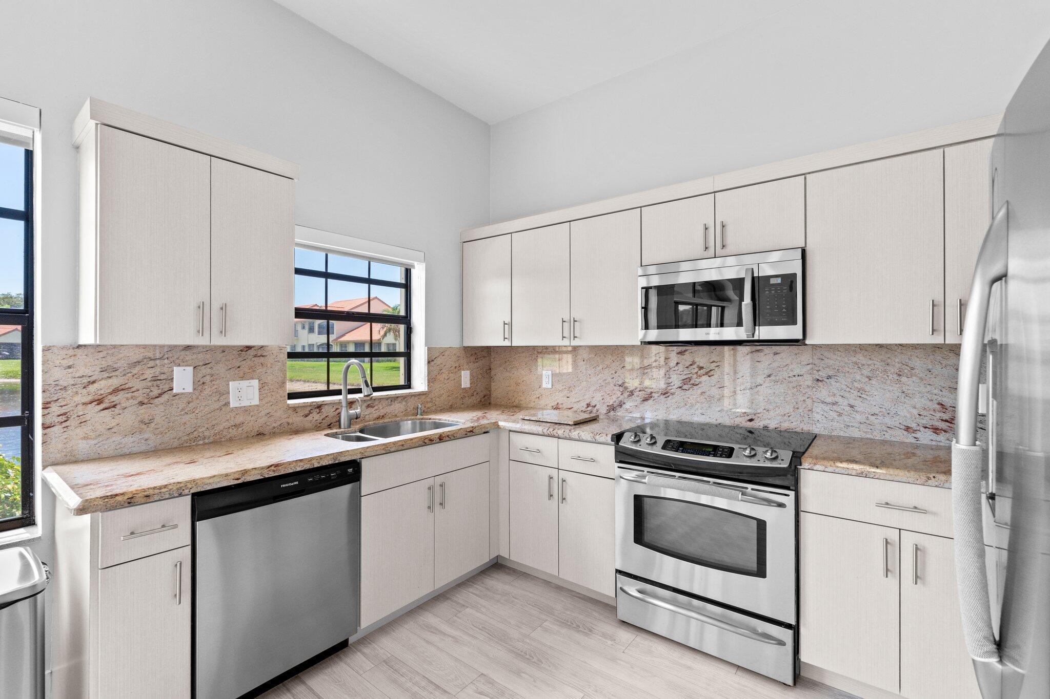 Panoramic lake views steal the show in this beautifully updated 2 bed, 2 bath single story condo with a 1-car garage in The Harbours at Aberdeen, an active 55+ community. The renovated kitchen features new cabinetry, upgraded countertops, and bar seating, all overlooking the water. Vaulted ceilings, natural light, and water-resistant laminate flooring create a warm, open feel. The primary suite offers lake views, a walk-in closet, skylit shower, and dual vanities. Additional updates include a 2023 water heater, 2014 AC, accordion shutters, and interior laundry. HOA covers roof maintenance, exterior insurance, landscaping, cable, water, and more. Enjoy access to pools, tennis, pickleball, clubhouse, and a vibrant calendar of social events.