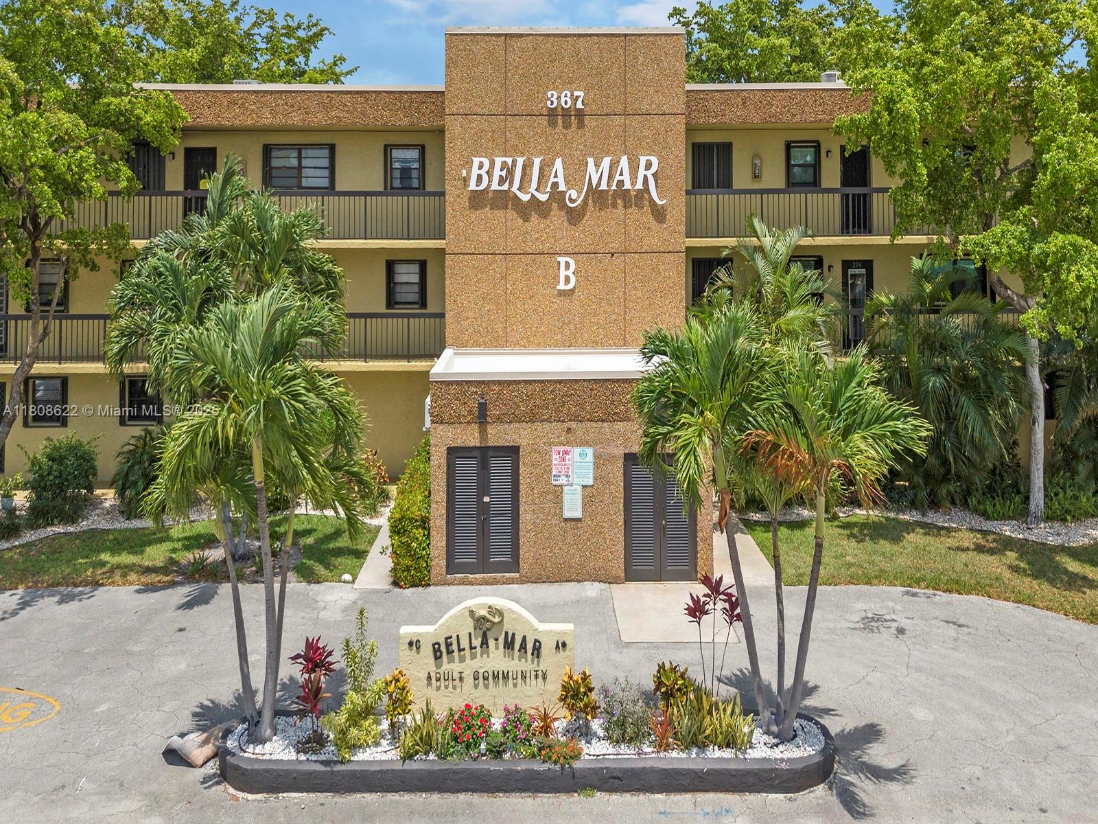 Welcome to Bella Mar! When you enter the building, it's a beautiful, quiet community of 55+ with plenty of guest parking. The unit itself is very welcoming, bright, and clean—a beautifully remodeled kitchen with a purpose. The bathrooms are renovated, and the main bedroom is spacious and has plenty of closet space. Spacious balcony overlooking the pool area. This unit is one of the most beautiful ones in the community. There's a washer and dryer hook-up, but right down the hall, a laundry room only the seller uses it on the floor, a stylish front door, and impact windows for safety. The AC unit is only 7 months old. Also, a brand New Hospital is being built not too far from the building.