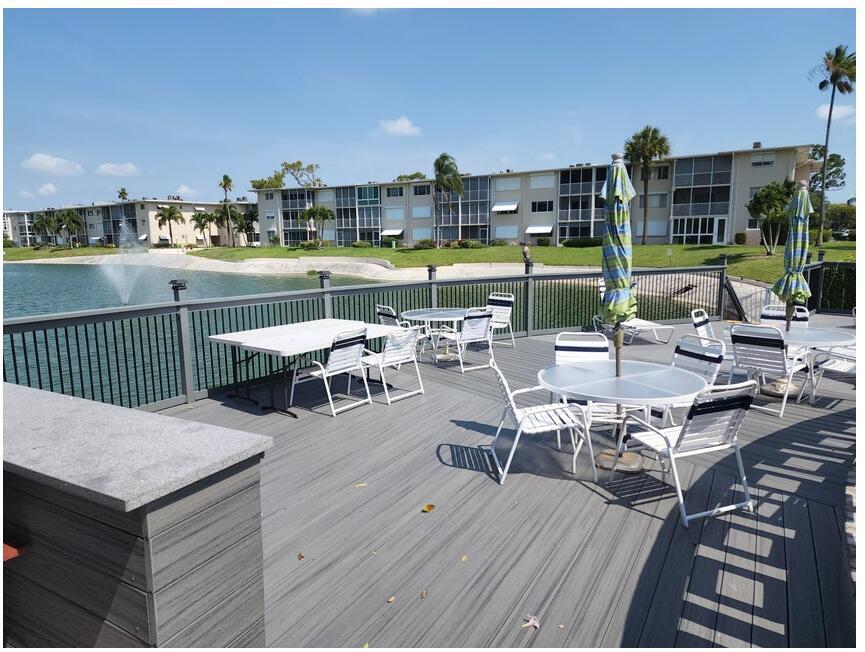 This delightful 1-bedroom, 1-bath condo on the first floor offers a serene lake view. Featuring an inviting open floor plan, elegant crown molding, and neutral flooring, the space is filled with natural light. The kitchen is equipped with classic white cabinets and a convenient snack bar, perfect for casual dining or entertaining. Modern amenities include a tankless water heater for efficiency and cost savings. Step out onto the screened-in patio to relax and enjoy peaceful views and fresh air. A.C. NEW 07-2025 !! MUCH more..