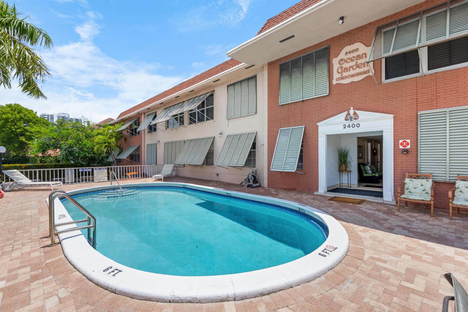 Great corner 2/2 unit in Fort Lauderdale steps away from the beach. Located in a quiet 2 story boutique building with 24 units. Very well maintained 1st floor unit with new laminate flooring and paint. New refrigerator. Laminate flooring and tile throughout. Corner south east exposure unit with lots of light. Ample closet space throughout. Communal pool with barbeque area. Laundry in building. Beach access. Assigned parking space. Great location between the ocean and intracoastal. Close to Las Olas, Lauderdale By the Sea, shopping, Birch state park, and many restaurants. Best seaside location! Great investment.