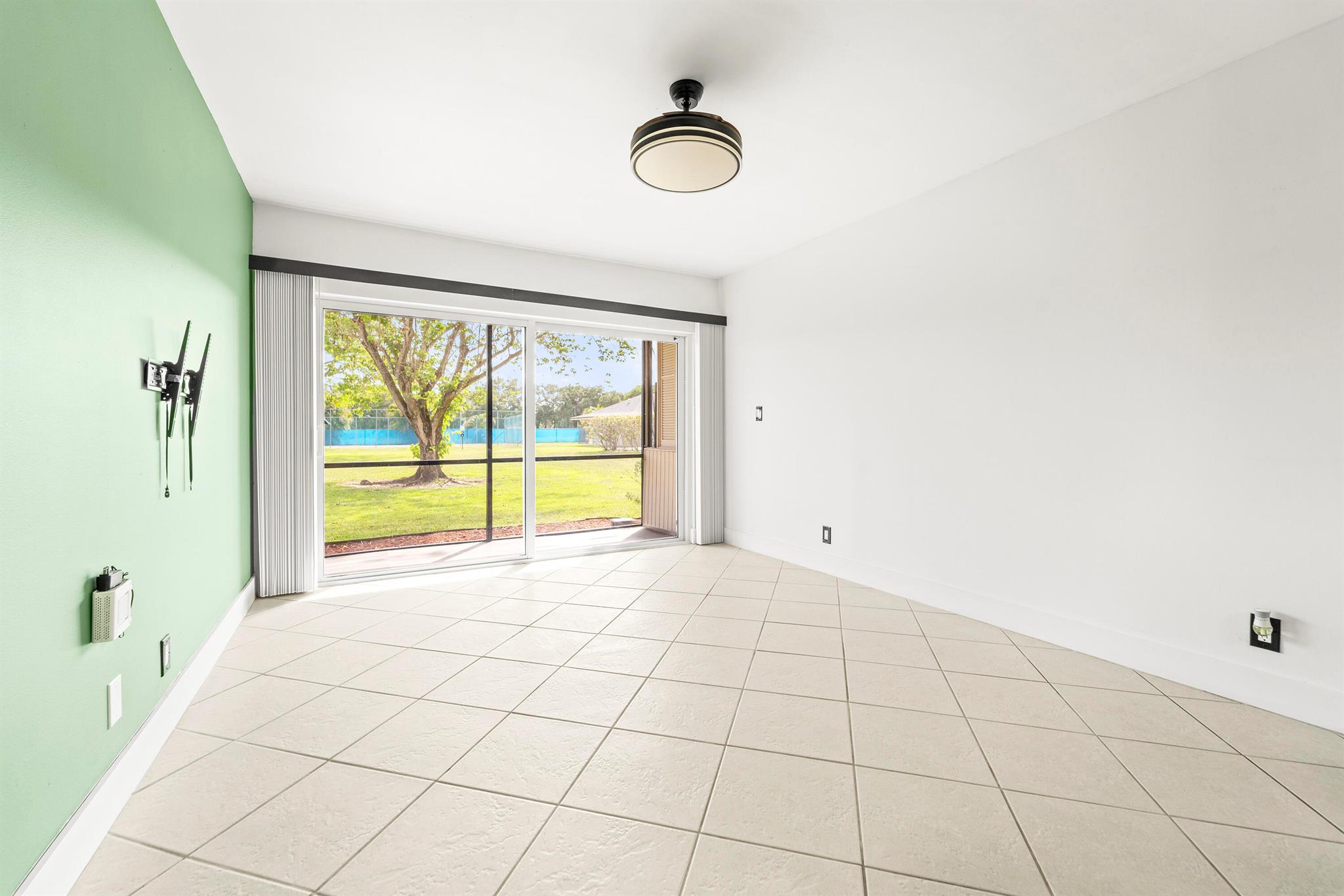 Move-in ready and beautifully updated 2BR/2BA + bonus room in Village Green! This first-floor home was fully renovated in 2021 with new plumbing, electrical, and energy-efficient appliances. Impact windows, doors, and sliders added in 2024, plus fresh interior paint and a new roof in 2025.The community has a fresh new look with updated stucco, grey exterior paint, and modern lighting. Enjoy a private porch overlooking the tennis court and pool. Bright open layout, natural light, and modern finishes throughout.All condo assessments are paid in full. HOA includes cable, water, and exterior insurance. Great all-ages community with A-rated schools, close to shopping, dining, and major roads.