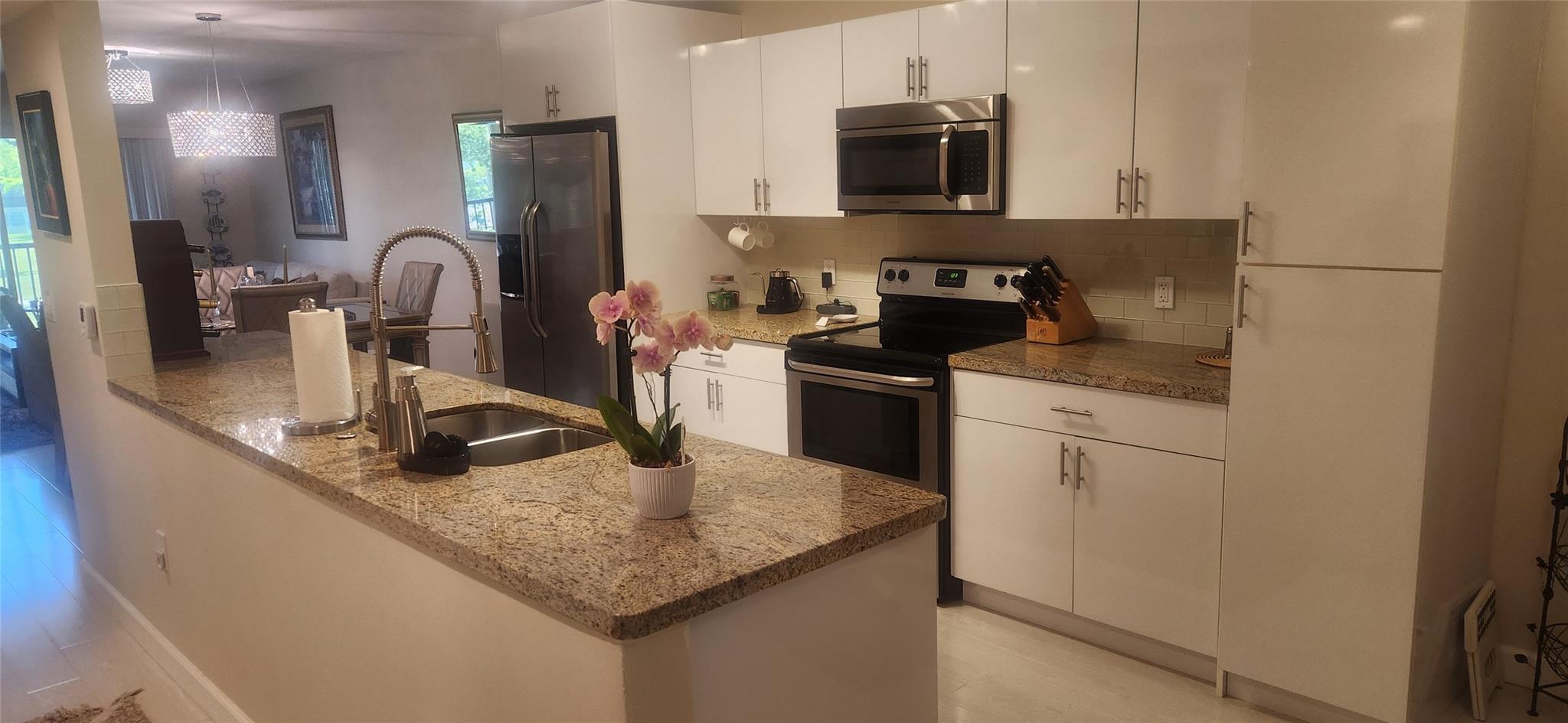Just REDUCED! Welcome to this beautiful updated 2/2 condo in vibrant 55+ gated Century Village Community. This unit features a stunning Open eat in kitchen with white cabinets, pullouts, & granite, SS appliances, waterproof laminate wood flooring, & overlooking the pool. Each bedroom has a walk-in closet, washer & dryer in the unit, bathrooms remodeled, & Accordion shutters. Building is freshly painted, roof approx. 5 years old & no assessments. Very close to residential entrance on Pembroke RD. So many amenities in this resort style living including, golf, tennis, fitness center. 24-hour security, & a busy clubhouse with entertainment and social activities. Start your next chapter here, in a perfect place to call home! Nothing needs to be done to this condo!