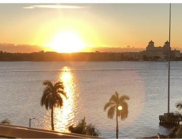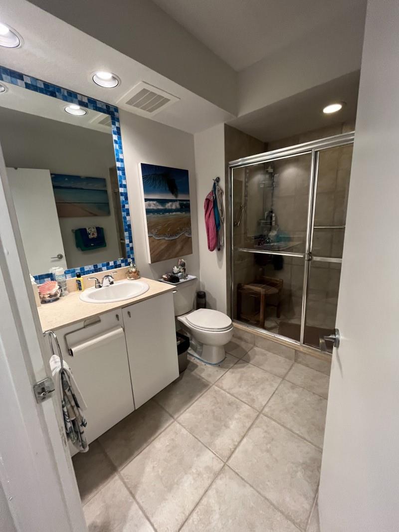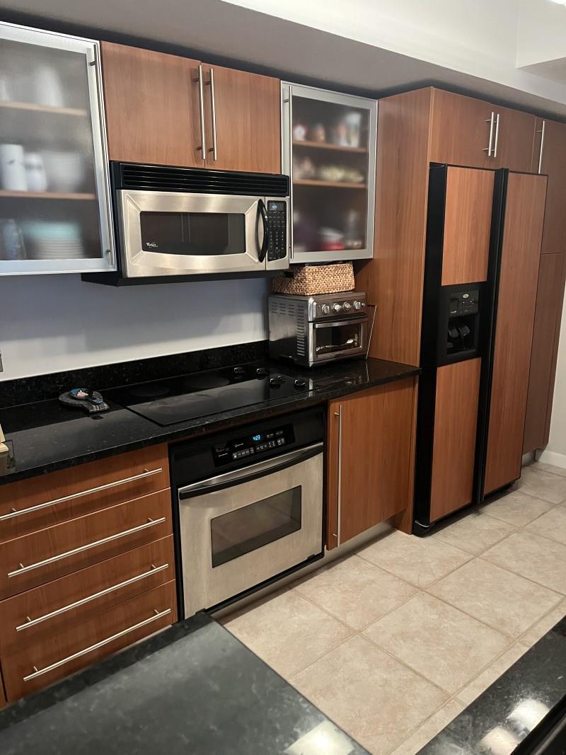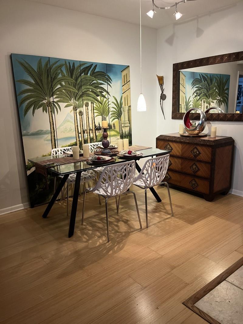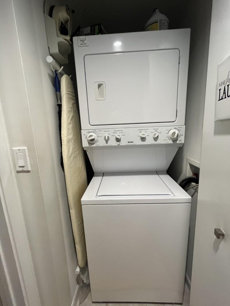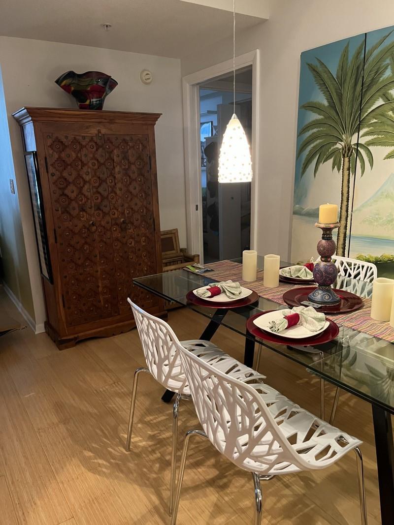 SELLER PAYS ALL CURRENT ASSESSMENTS. Breathtaking intracoastal view at the coveted SLADE! Bamboo floors in all well-appointed living areas & neutral tiles in kitchen and baths. Stunning light fixtures throughout. Open floor plan. Stainless steel kitchen stars a 2 drawer dishwasher. Lots of storage with custom soft-close pullouts. Full size stackable washer/dryer next to guest bath with walk-in shower. Close the pocket door to guest bedroom suite for privacy. The main bedroom suite has nice size walk-in and wall closets! The bathroom has relaxing soaking tub & massage jets for shower. Your deeded garage space is steps from the east elevator and your home &the largest in the building, envied by all.