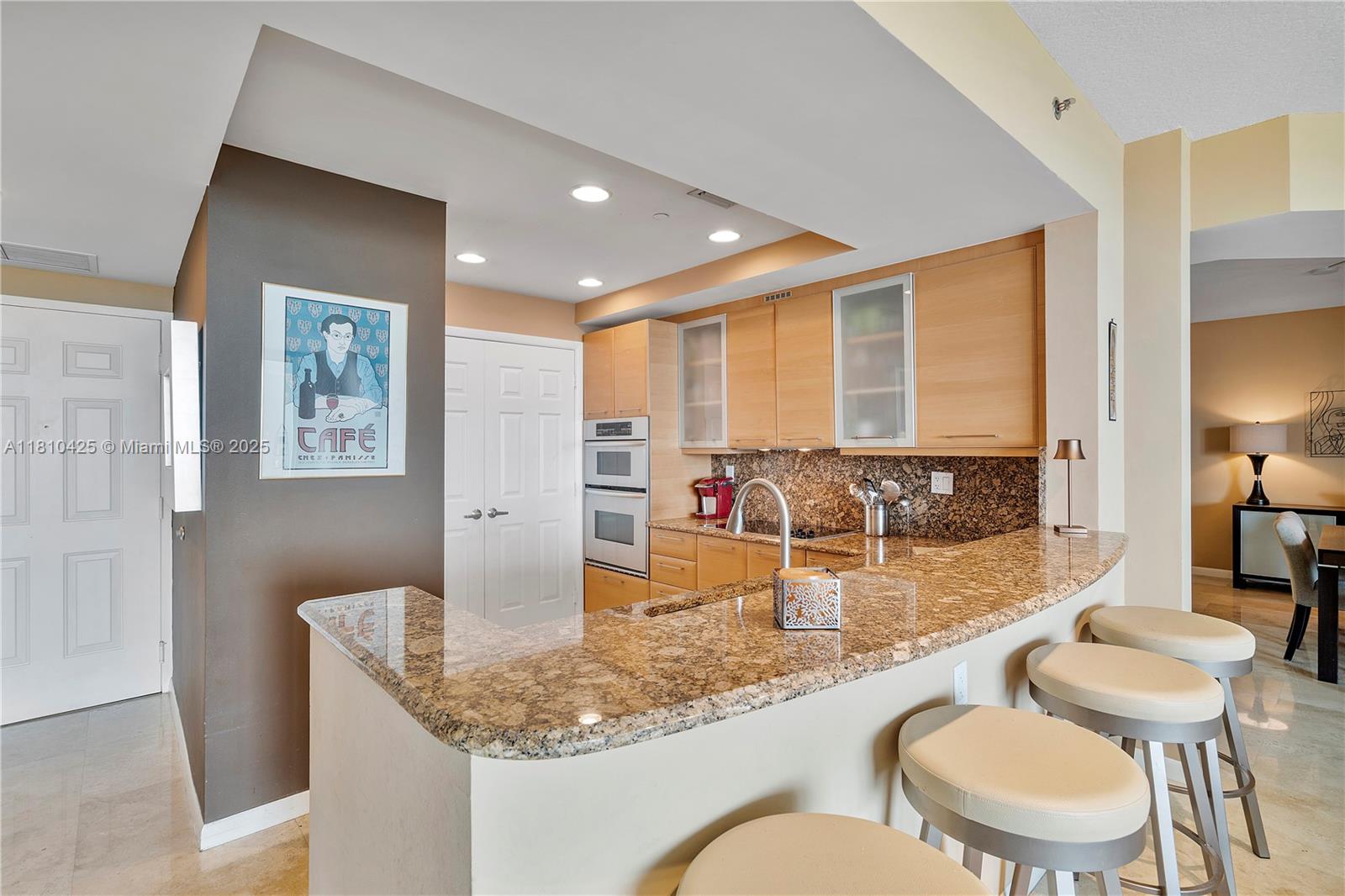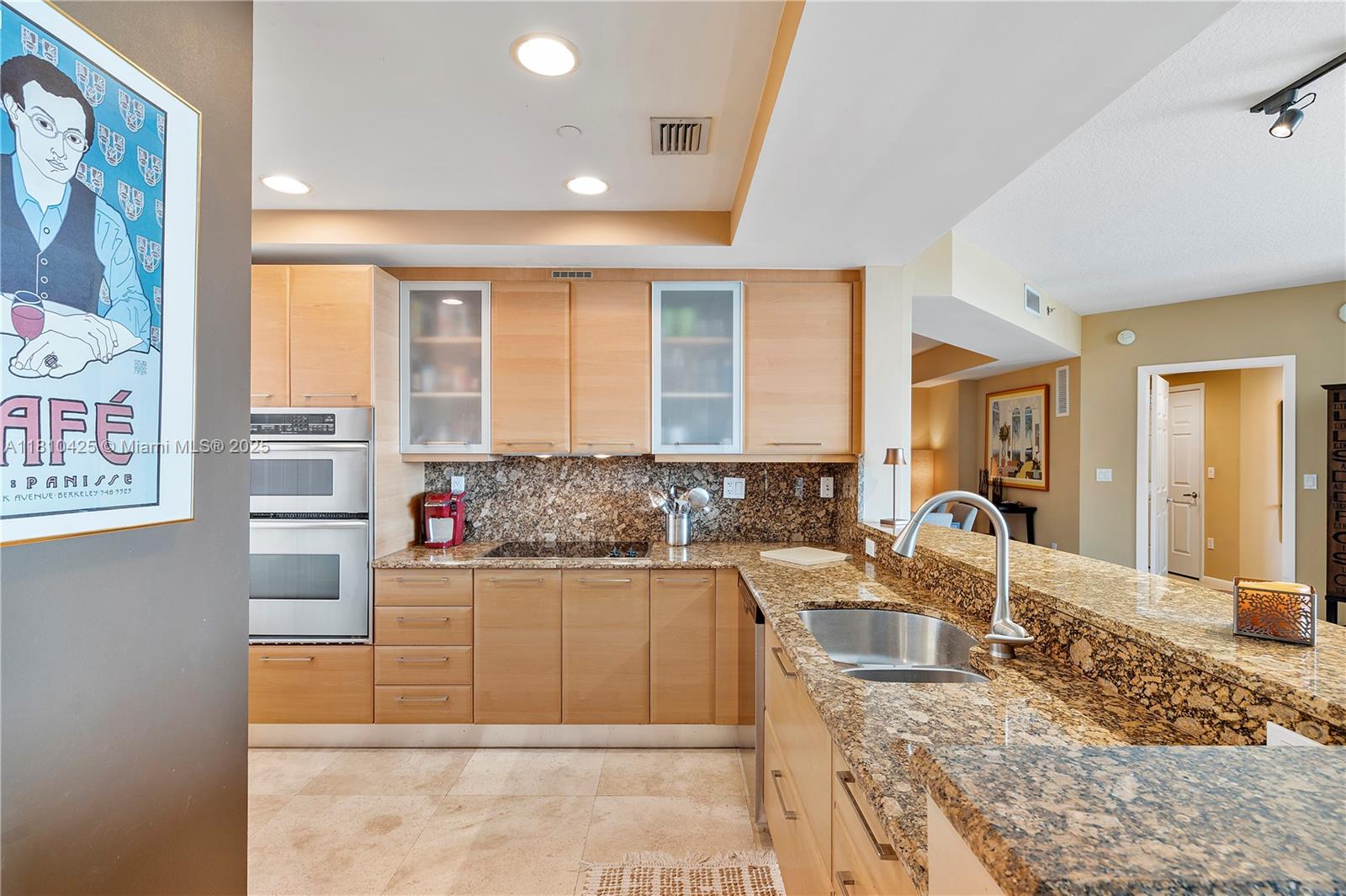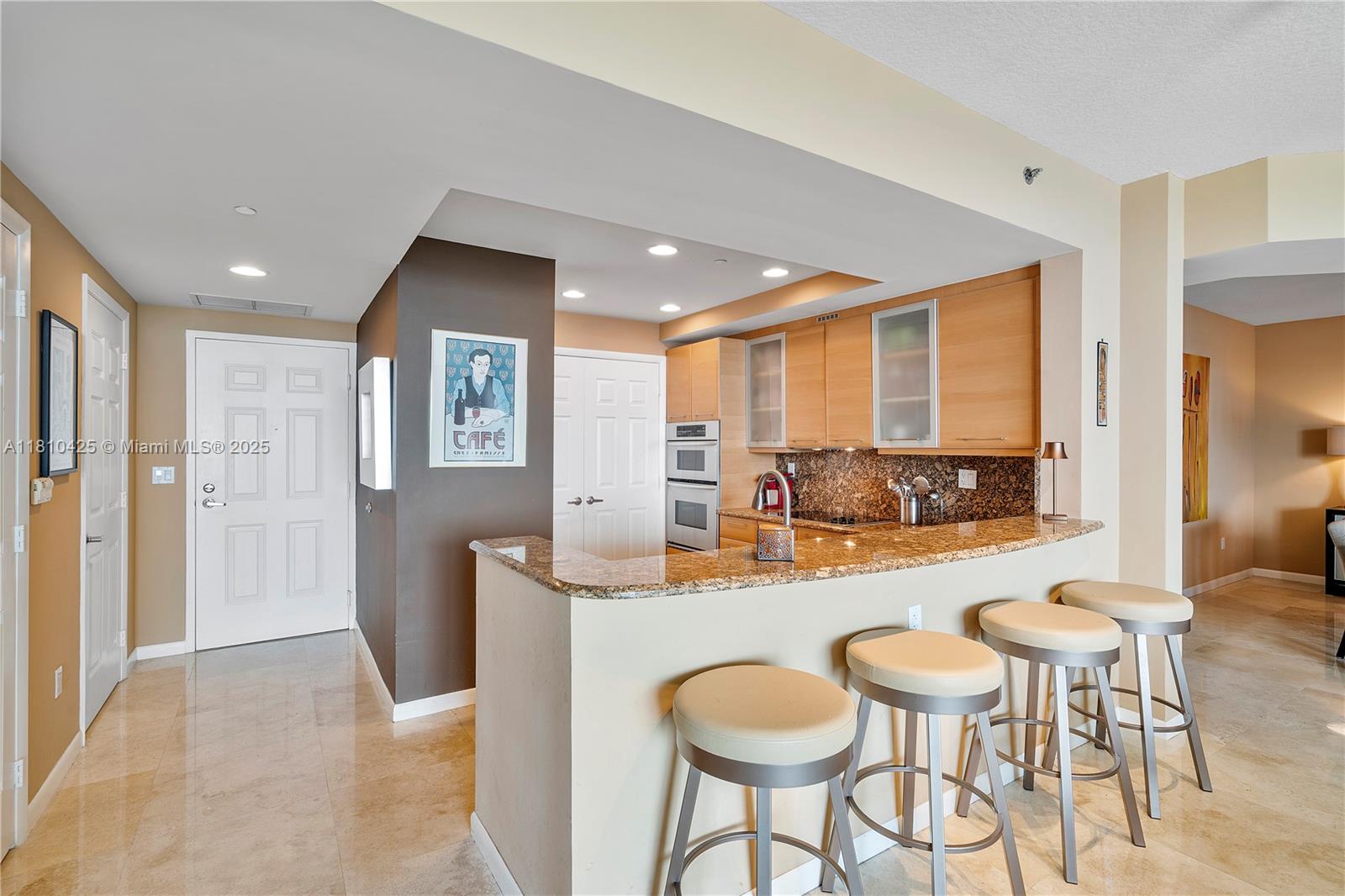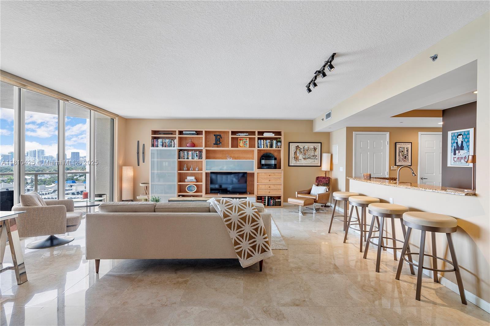 Larger than many 2-bedroom condos w/ spacious rooms, high ceilings, natural stone flooring, floor-to-ceiling windows, and a 13' deep glass balcony. Flex space ideal for office/media/guests. The generous bedroom opens to the balcony and features 2 walk-in closets. The primary bath features, Hansgrohe fixtures, double vanity, Jacuzzi spa, & separate shower. A yacht-inspired kitchen with built-in ovens, Della Casa cabinetry, and full-size laundry with storage. 2 secure garage spaces + separate climate-controlled storage. Includes water/sewer/trash/Wi-Fi/Direct TV/hot water/parking/storage/amenities/reserves/staff. 24-hour attended lobby, pool/spa, club room, well-equipped fitness center, saunas, & business center. Dockage available for lease/purchase at the adjacent Port Marina.