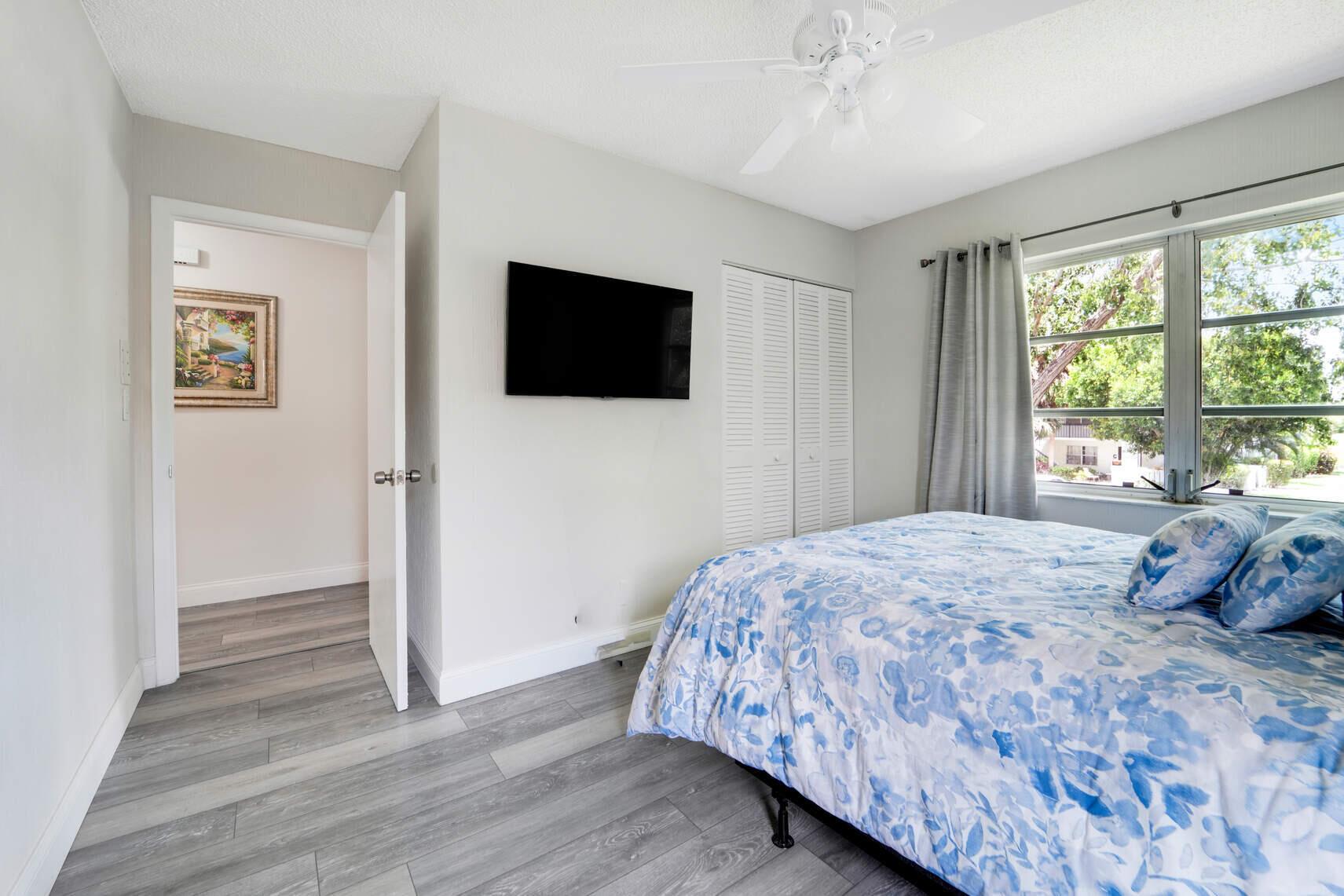 Elegantly Remodeled, Spacious Bright Corner 2BD/2BA Condo with water views! Stylish NEW kitchen, all new appliances, light granite counters and custom white cabinetry. NEW 2025 AC, NEW FULL washer & dryer, NEW 2024 water heater. All new laminate flooring throughout. HUGE primary bedroom with large walk-in closet & plenty of room for an office. CORNER patio is the perfect place to lounge, entertain, and enjoy the tropical water views. STORAGE CLOSET. Gorgeous condo located in the esteemed Palm Greens community. PG2 pool, tennis/pickle ball courts & hot tub nearby. HBO, water & wifi included. NEW STATE OF THE ART CLUBHOUSE & AMENITIES INCLUDED! THE perfect place to relax or enjoy an active, enriching lifestyle. DON'T MISS OUT ON THIS DREAM RETREAT IN DELRAY BEACH!