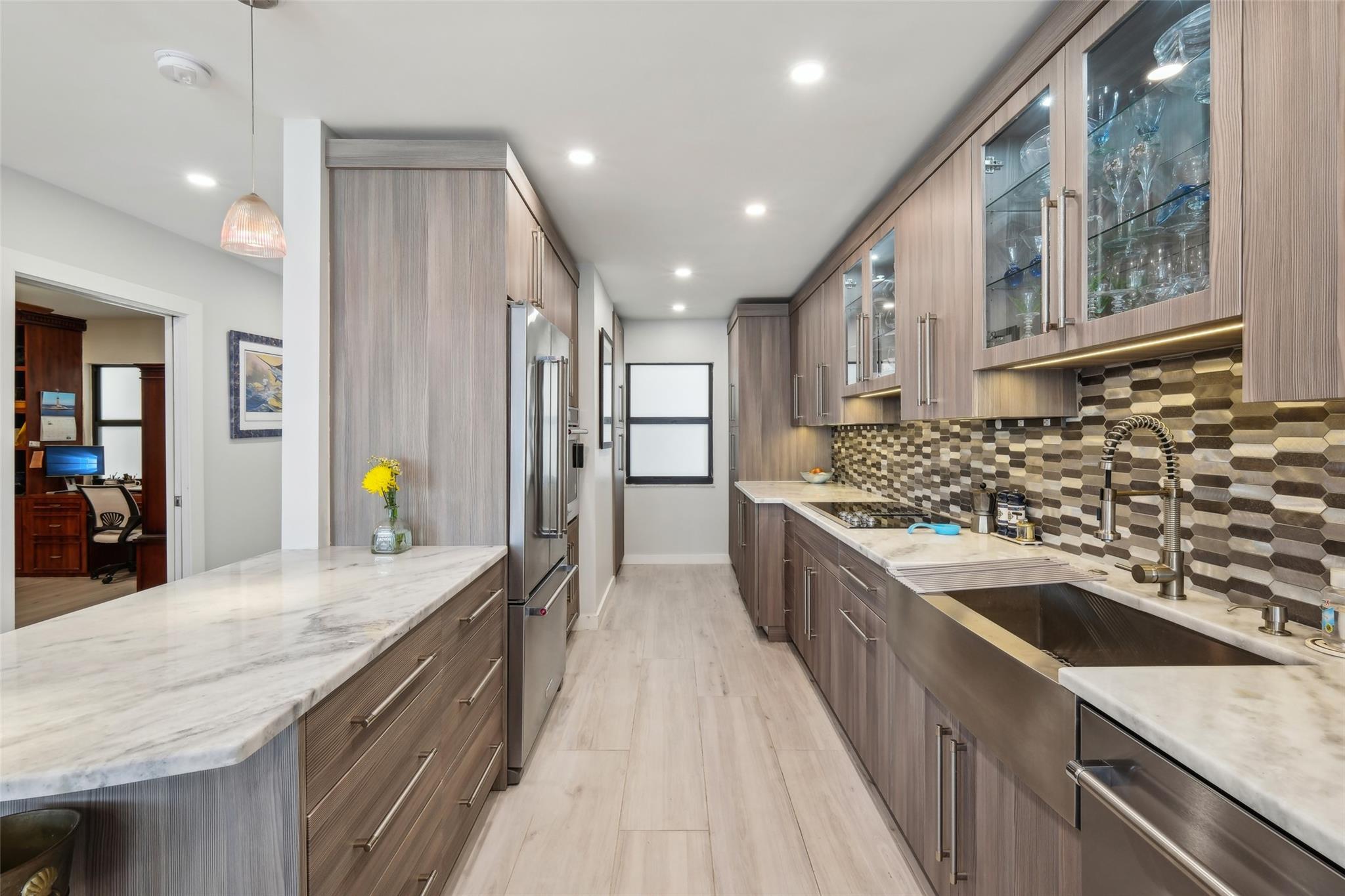 Bring your boat and your pets to this stunning Townhome in the Heart of Fort Lauderdale! Completely renovated with modern high-end finishes, this 3-bed, 3-bath home offers Intracoastal views. Just a few minutes to Lauderdale By The Sea, it offers a spacious layout with floating stairs, impact sliders, and a rare loft-style bonus space that expands your living options. Enjoy indoor-outdoor living with a huge private patio perfect for entertaining or relaxing by the water—plus a dock is available for your boat. The chef’s kitchen is a standout with under cabinet lighting, premium stainless steel KitchenAid appliances including a smart oven with pizza stone, steamer, and grill attachments, electric downdraft cooktop, and a wet bar with sleek lighted shelves.