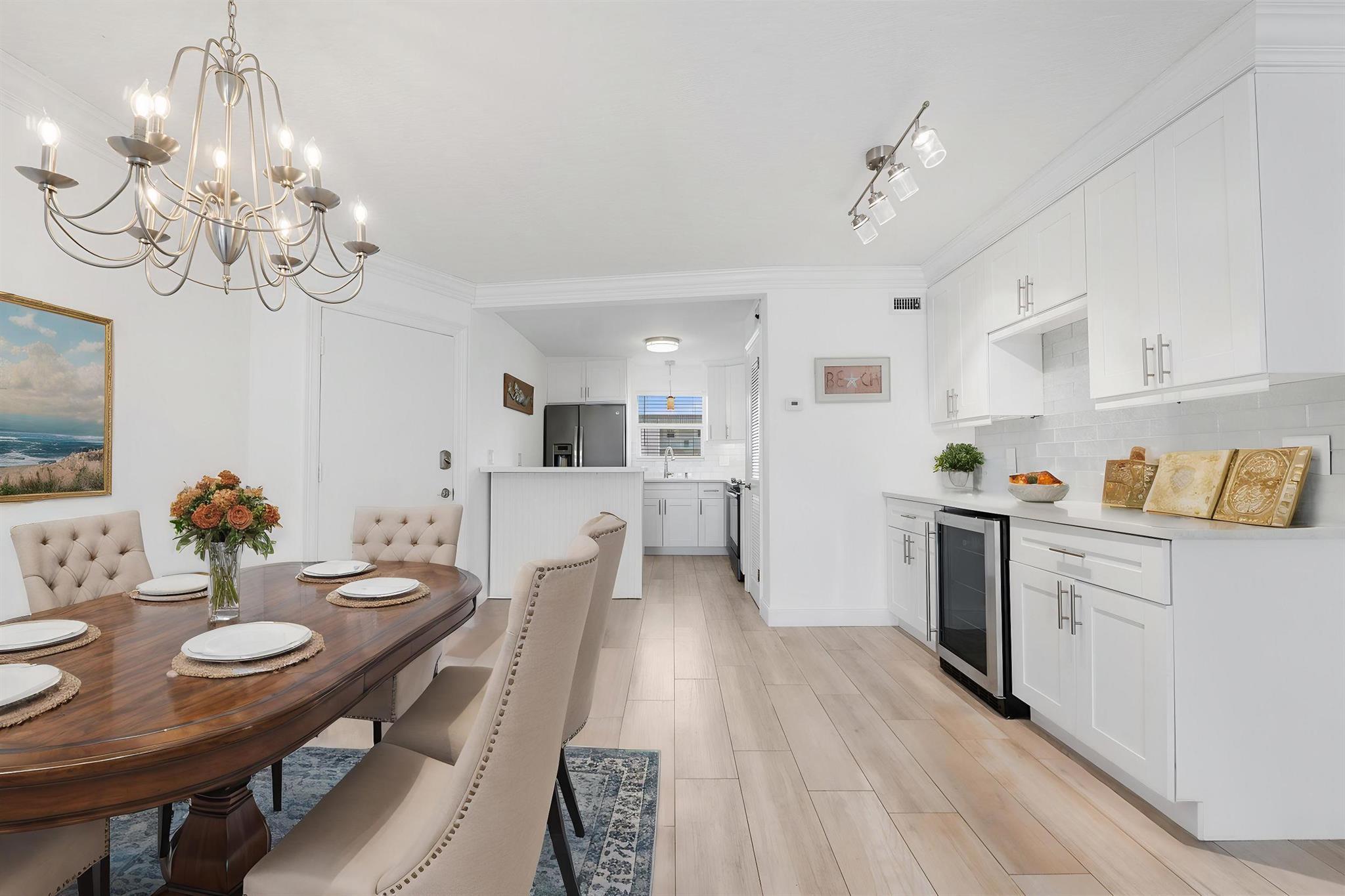 Windor Park is situated along an interior canal just off the intracoastal in the Village of North Palm Beach. This fully renovated two-bedroom, two-bathroom condo features tile flooring throughout, along with soft close cabinetry in both the kitchen and bathrooms, which also include updated vanities. The master bedroom has a generous walk-in closet and has direct access to a screened patio that offers picturesque views of the canal and passing boats. The condo is equipped with impact windows adorned with plantation shutters, and the dining room, conveniently located adjacent to the kitchen, includes a bar with a wine cooler. This property is move-in ready and is ideally positioned near beaches, restaurants, and the North Palm Beach County Club.