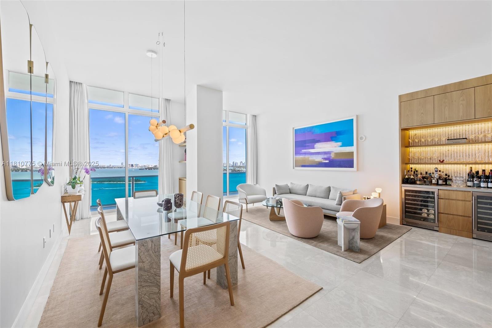 This stunning fully furnished 2 bedroom + den / 2.5 bath residence is a rare combination of units PH3C & PH3D, offering 1,900 sq ft of fully remodeled living space and a private rooftop terrace. Located in the New Wave waterfront condo in Miami’s Edgewater, it features 12-foot ceilings, floor-to-ceiling windows, granite countertops, and sleek European-style cabinetry, all with breathtaking direct water views. Enjoy resort-style amenities including a bayfront lap pool, fitness center, meditation garden, resident lounge, valet, covered parking, and 24-hour security. Just minutes from South Beach, Brickell, Downtown, Wynwood, and Margaret Pace Park. Fully furnished as pictured, wall art not included.