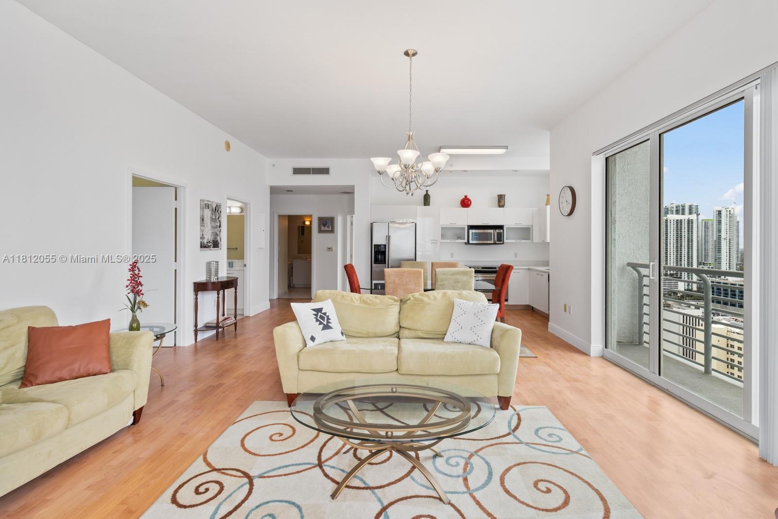 **Views from Every Room! Stunning Sunsets from a High-Floor Corner Residence in Downtown Miami!** Spacious two-bedroom, corner unit offers breathtaking views and the Largest Floor Plan in the building. The living room is illuminated by two large sliding glass doors, welcoming an abundance of natural light and showcasing the vibrant energy of Downtown Miami. Enjoy captivating sunsets, and when night falls, the skyline sparkles with city lights. Key Features: High ceilings, open kitchen, In-unit washer/dryer, Floor-to-ceiling glass with sweeping city views, 24-hr front desk attendant, secured entry, Rec room w/pool table, Rooftop gym w/sauna, Rooftop pool. Perfectly located for urban living, walk to The Arena, Bayside Marketplace, Theaters, Museums, Brickell, & short drive to So.Beach.