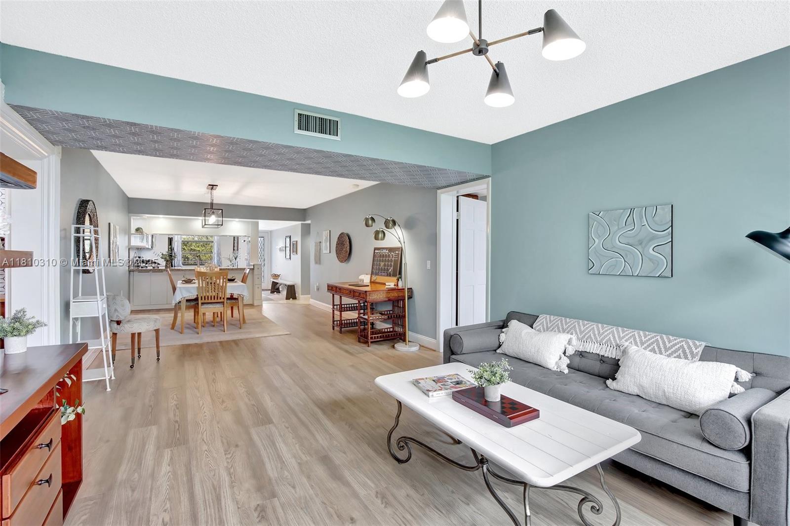 Beautifully updated & artist-decorated 2-bed, 2-bath condo with 1,385 SF of spacious living. Located on the top floor. This private corner unit is filled with natural light & offers panoramic golf course view. Thoughtfully designed layout with an in-unit W&D and a versatile utility room perfect for an office, guest or yoga room. Enjoy access to Pine Island Ridge Country Club lifestyle with no membership fees, featuring 2 restaurants, Gym, pool, golf, tennis & more. 1 assigned space & ample guest parking. Association fee covers Water, Cable, Wi-Fi, Insurance, Roof repairs, exterior painting & all common areas. Centrally located near Nova Southeastern University, hospitals, shopping, dining, FLL Airport & more. No Special assessments due. Furniture is included at no cost. Easy to show.