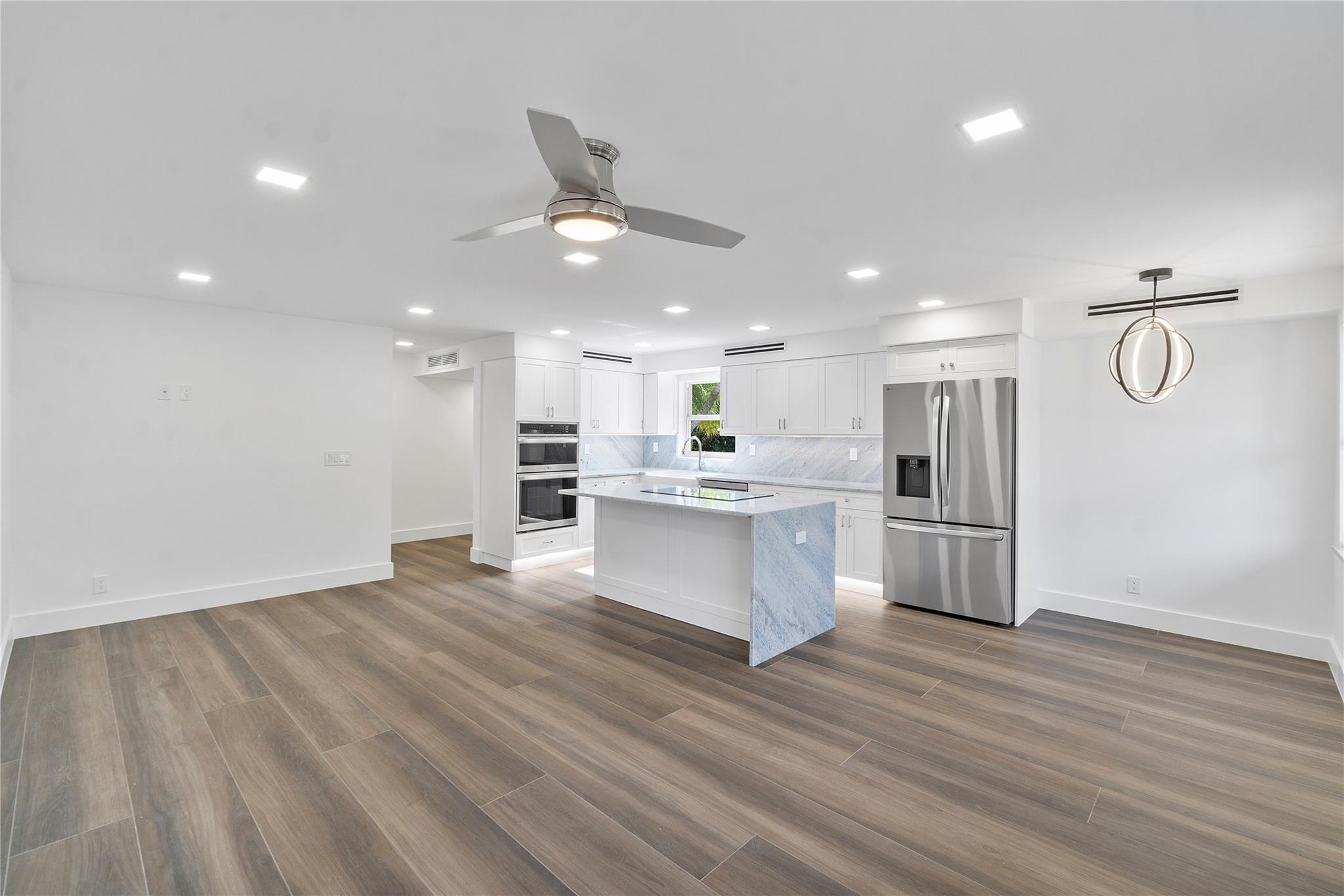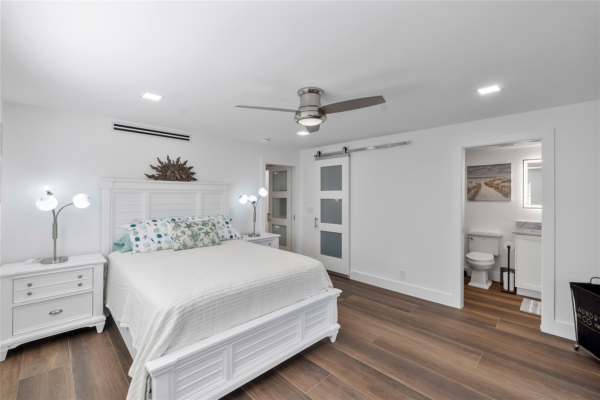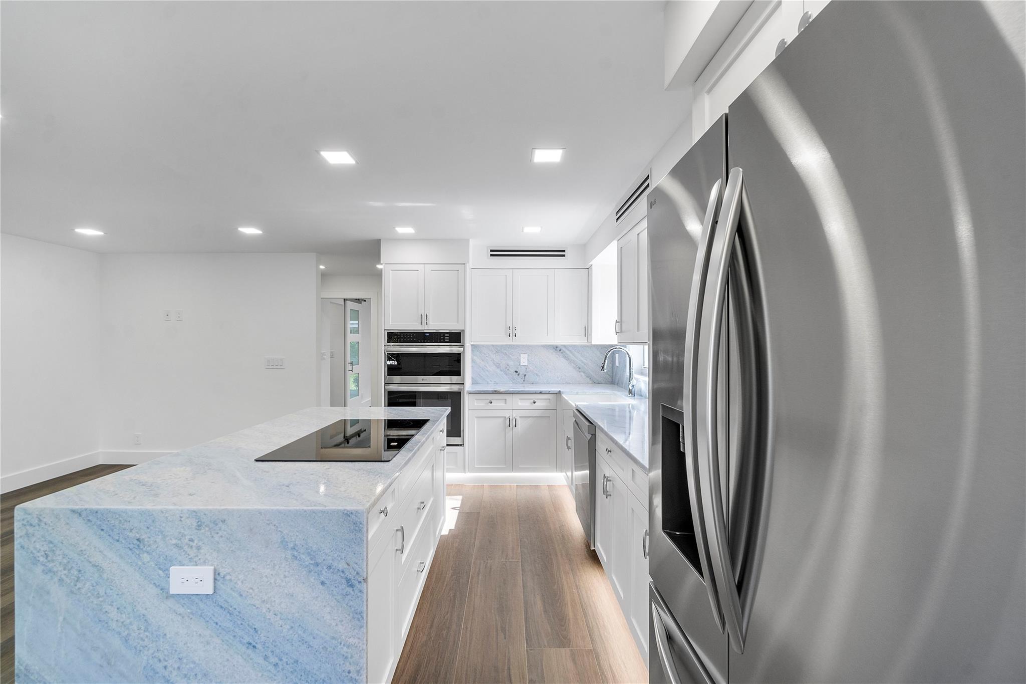 OCEAN RIDGE'S BEST KEPT SECRET! Freshly painted walkway lit w/LED lights. Completely luxury renovated unit: porcelain tile flooring, LED ceiling lights, Island Kitchen with induction cooktop & granite countertops. Modern LG appliances, farmhouse sink, expansive cabinet storage. Undermount cabinet light & book match on countertops w/ backsplash. Washer/ Dryer hook up . Half bathroom w/ custom vanity w/ lighted mirror and high toilet. Custom interior doors w/ glass panels, barn doors & pocket doors. Master suite w/ beautifully custom bathroom w/ high toilet, large tile panels and shower with two niches. Hurricane impact windows and sliders. ALL AGES BUILDING, private beach, porch close to community pool. Heated pool, boat dockage, 2 clubhouses w/BBQ areas, fitness center. Seller Motivated