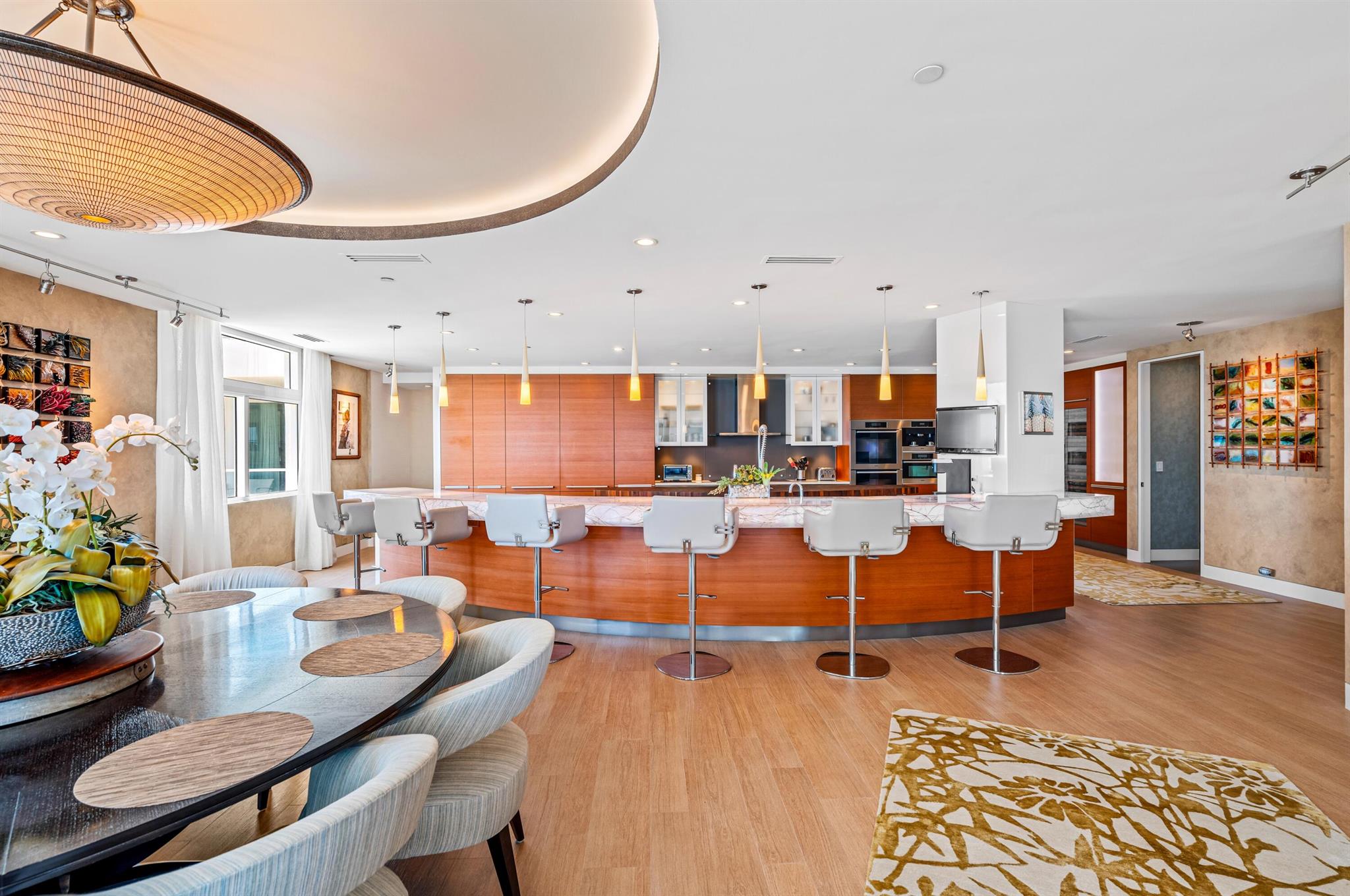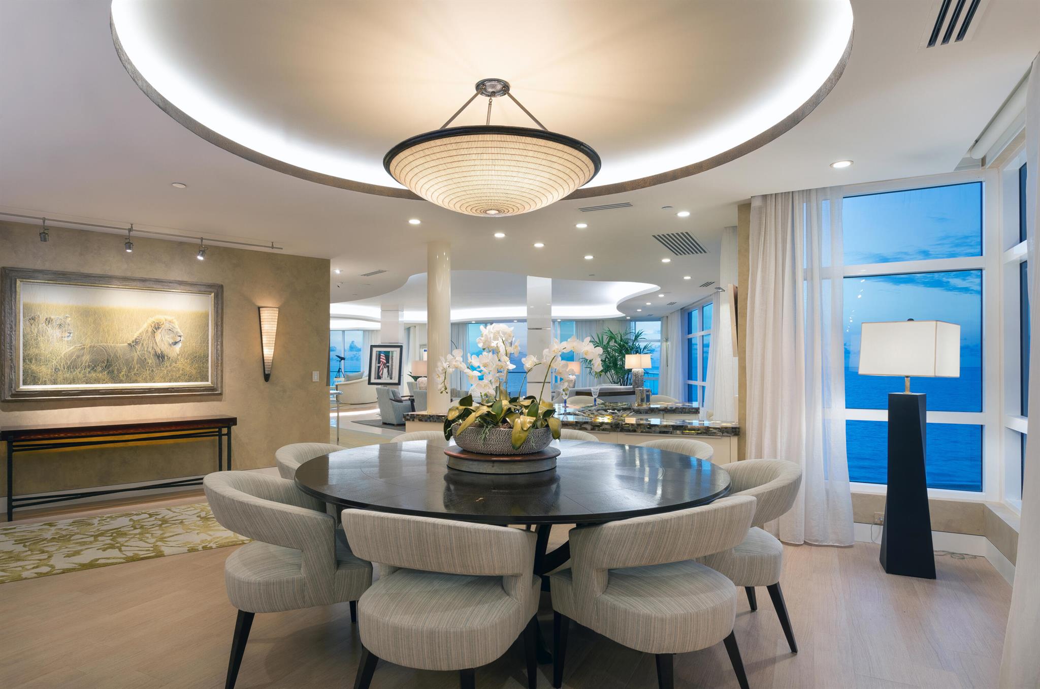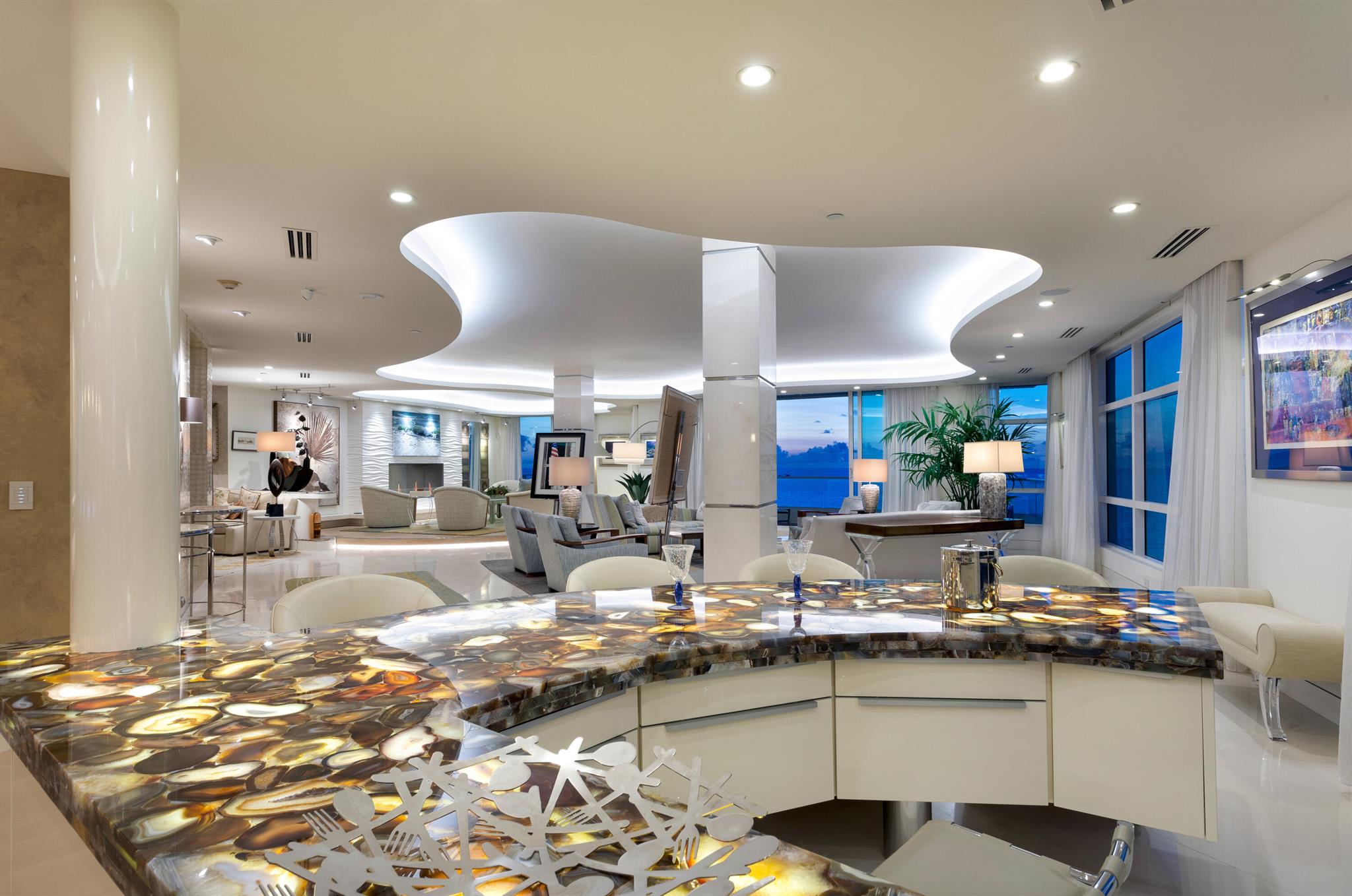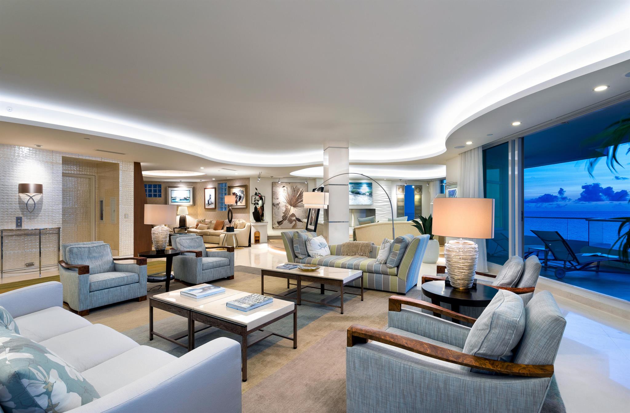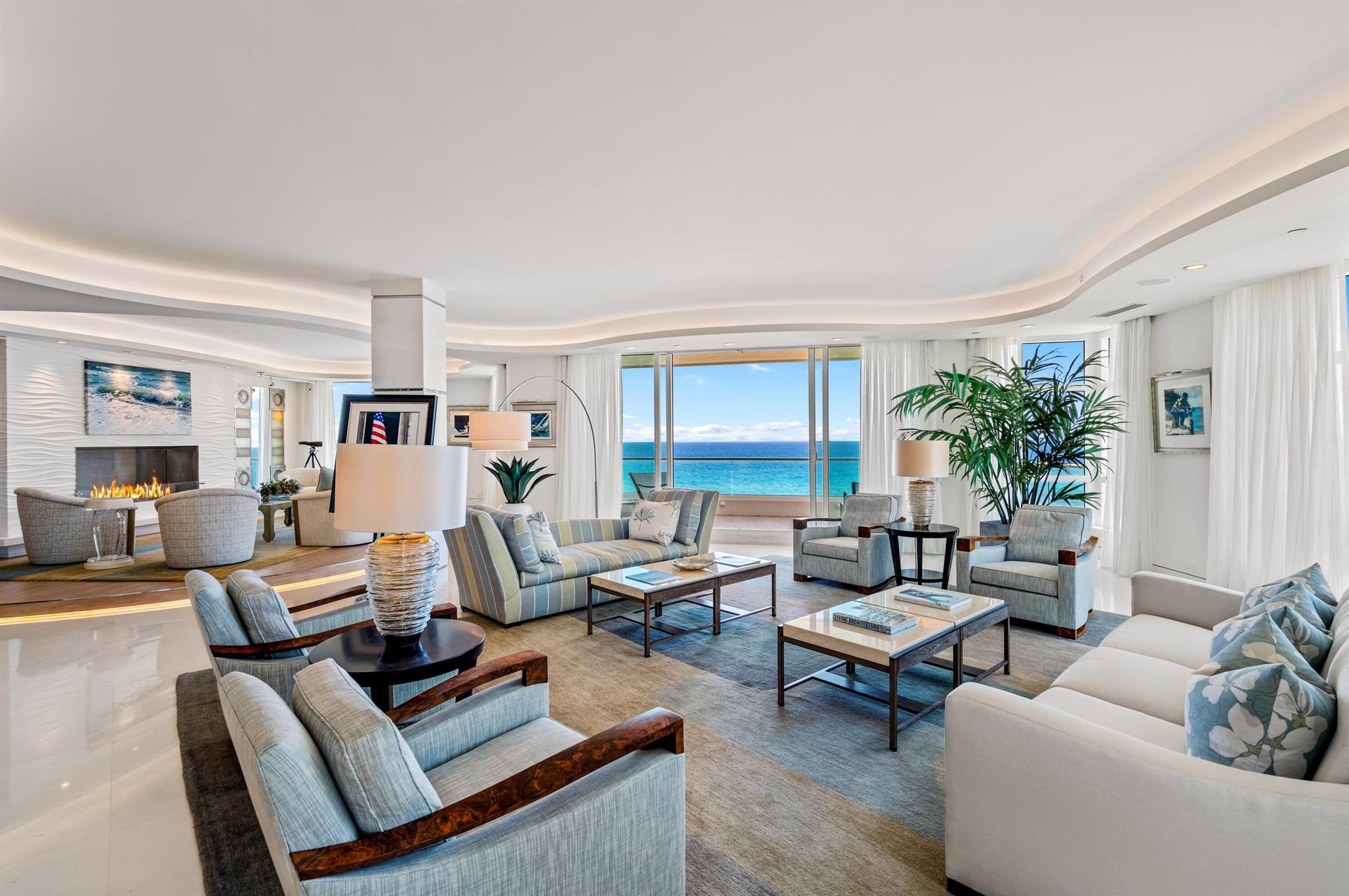 CUSTOM-DESIGNED DIRECT OCEANFRONT, FULLY-FURNISHED 4-BEDROOM DOUBLE RESIDENCE AT THE ARAGON WITH AN OCEANFRONT CABANA. DESIGNED, EXECUTED AND FURNISHED WITH THE FINEST DETAIL BY DECORATORS UNLIMITED. STUNNING WATER VIEWS IMMEDIATELY UPON ENTRY FROM THE PRIVATE ELEVATOR. OCEANFRONT LIVING ROOM WITH ADJOINING DEN AND LIBRARY OPENS TO A LARGE OCEANFRONT BALCONY. LIMESTONE FLOORS, DETAILED CEILINGS, CRESTRON HOME AUTOMATION SYSTEM, CUSTOM FINISHES AND FURNISHINGS COMPLIMENT STUNNING ARCHITECTURE. CHEFS KITCHEN WITH DOUBLE ISLANDS, CUSTOM CABINETRY AND COMMANDING VIEWS. A WELL-APPOINTED PRIMARY SUITE OFFERS OCEAN AND CITY VIEWS, A FABULOUS BATH WITH SAUNA AND A GREAT OFFICE OVERLOOKING THE WATER. THREE ADDITIONAL BEDROOM SUITES PLUS A MEDIA ROOM. ARAGON IS A FULL-SERVICE, CONCIERGE BUILDING.