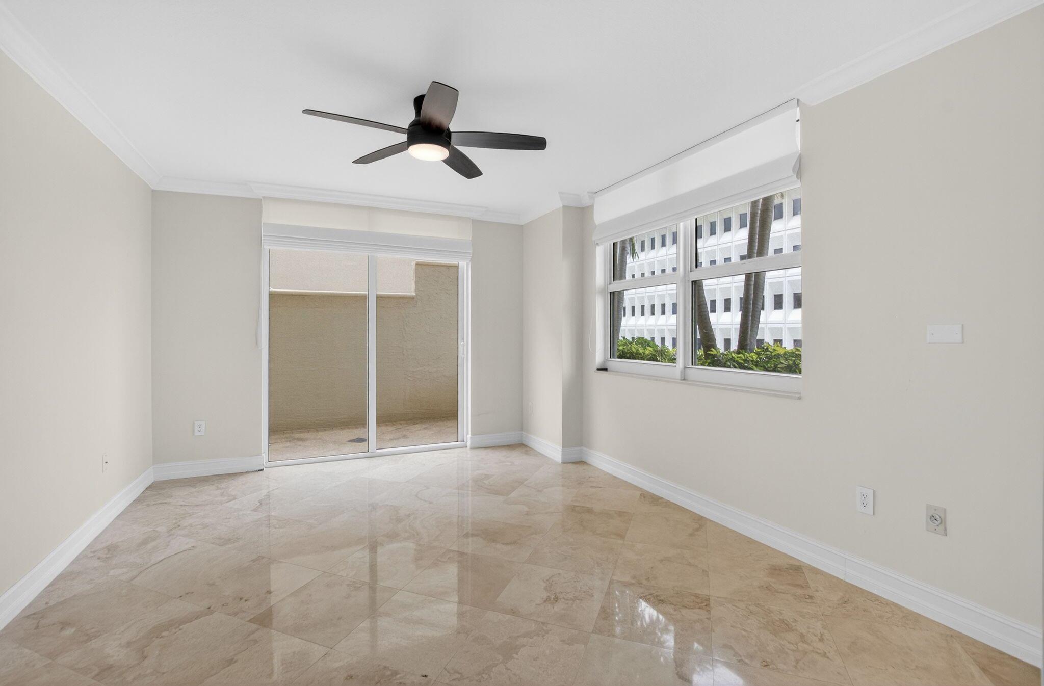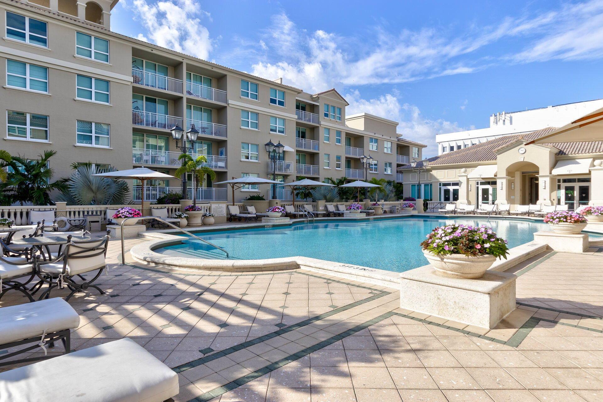 RENTED THROUGH NOV 2026. Live the Downtown Boca Dream - Luxury, Location & Lifestyle! Welcome to the ultimate South Florida condo in the heart of Downtown Boca Raton!Just under a mile from the Atlantic Ocean and steps from Mizner Park, Royal Palm Place, top-rated restaurants, upscale shopping, nightlife, and the intracoastal. This interior 2-bed, 2-bath condo features travertine marble floors throughout (no carpet), a full-size in-unit washer/dryer, and a rare double-sized private patio just steps from the pool. Enjoy a split floor plan, north-facing city views from the ensuite primary bedroom, and a jacuzzi tub in the bath. Building amenities include resort pool/spa, fully-equipped gym, infrared sauna, game/hospitality room, 24-hour security, valet parking, and much more!