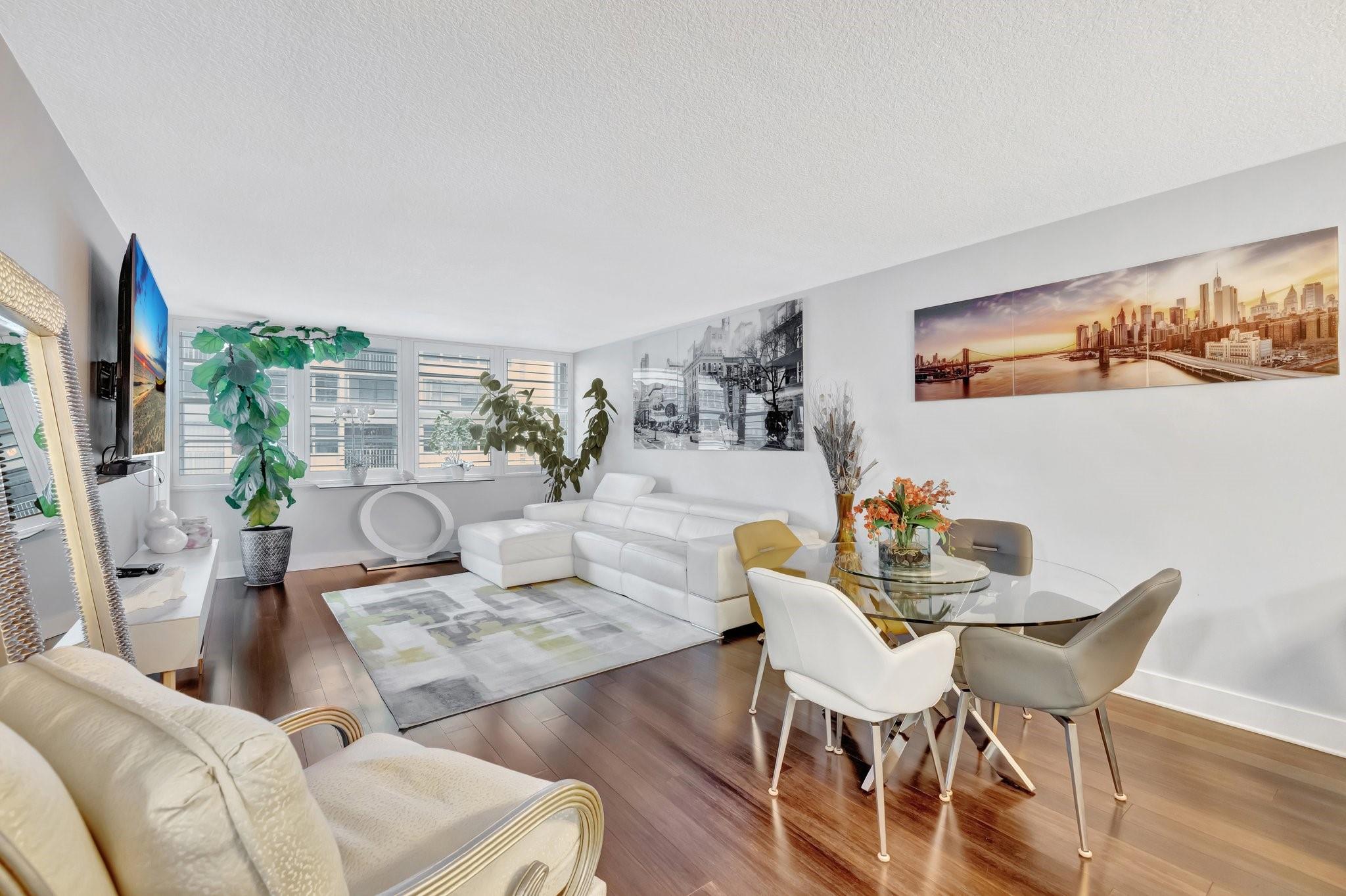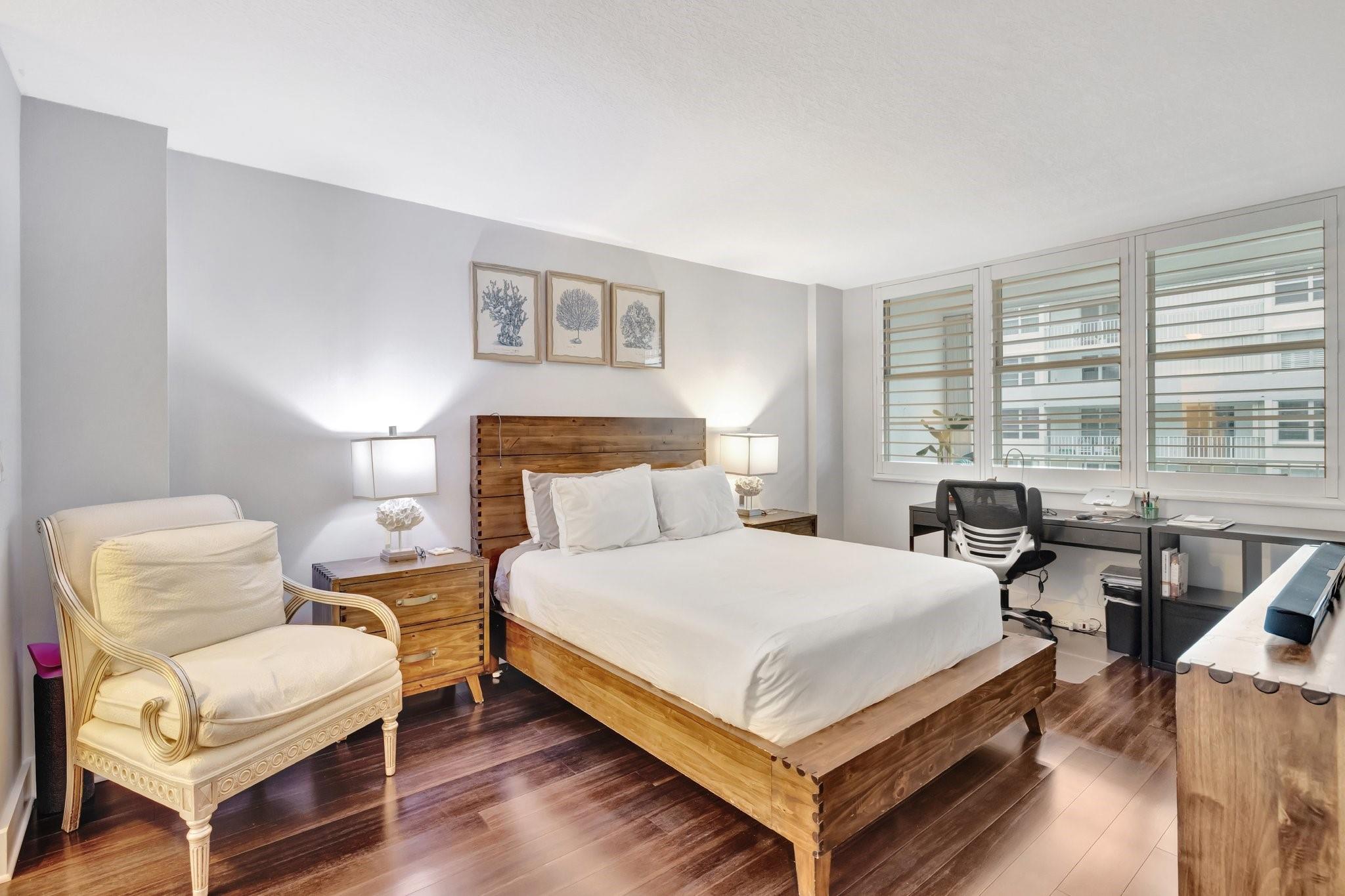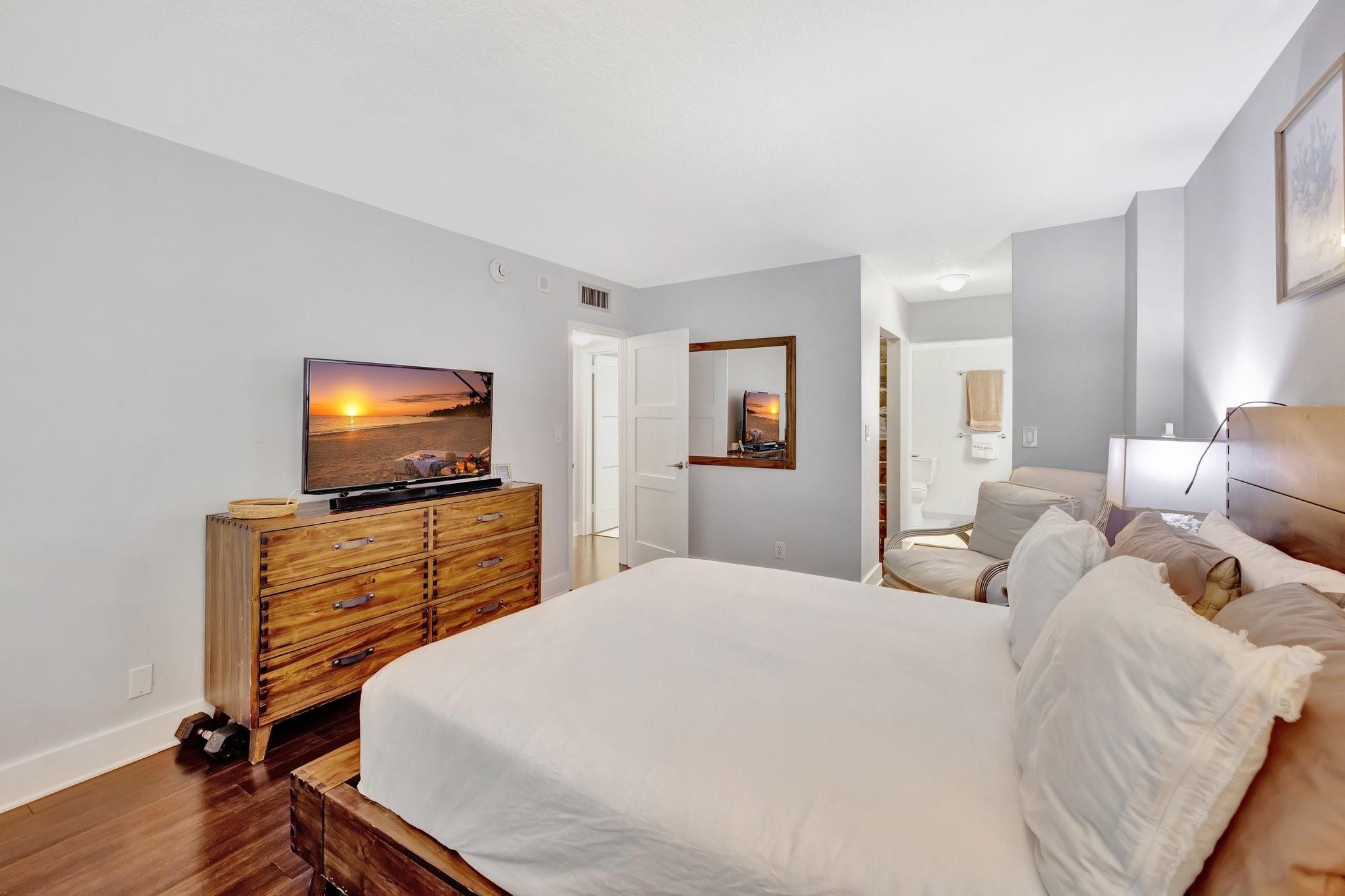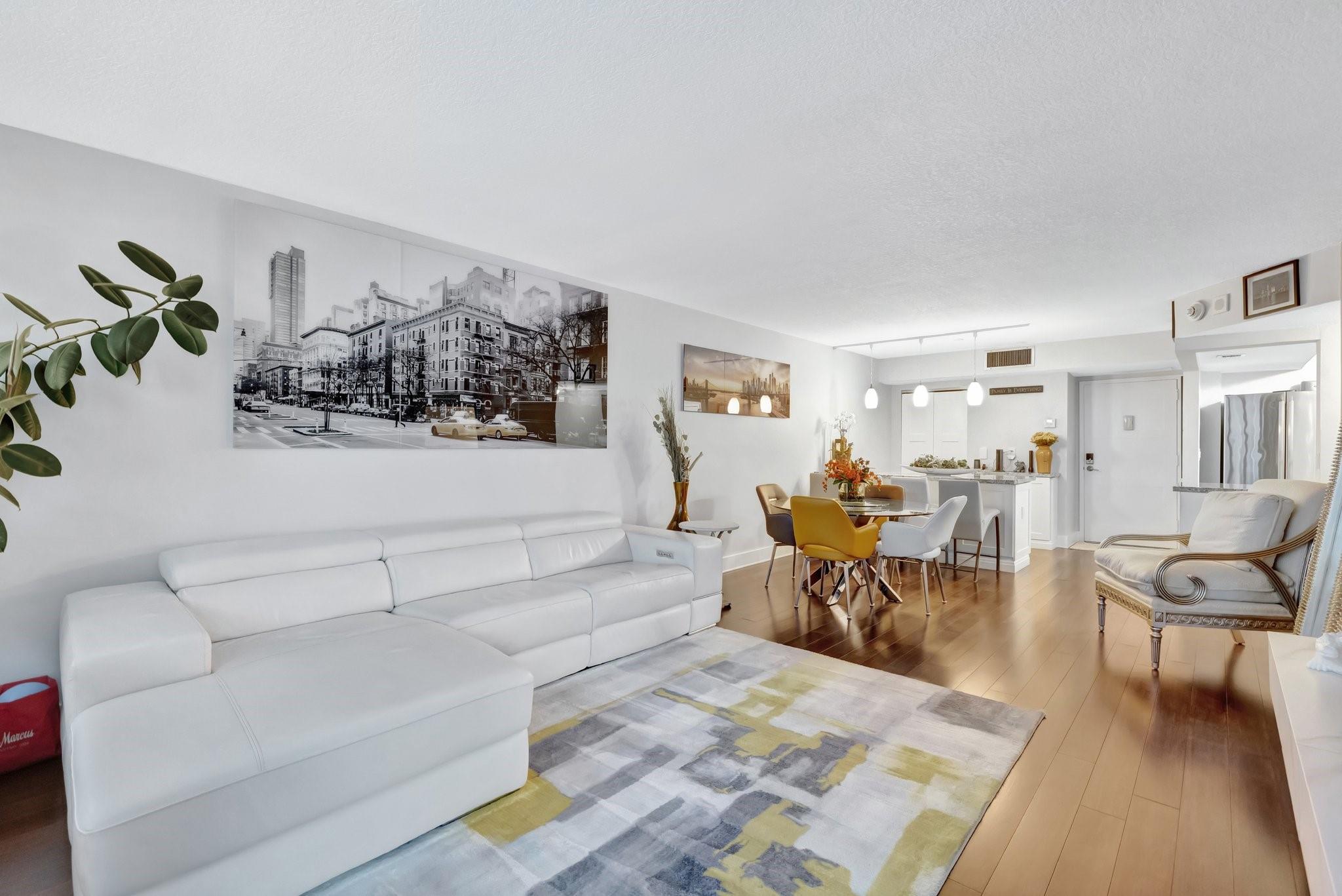 This impeccably maintained condo offers peace of mind and timeless appeal. Gleaming bamboo floors flow throughout the space, creating a warm, natural vibe. Expansive balcony invites you to unwind with morning coffee or evening cocktails while soaking in the breeze. Sunlight pours in through impact windows adorned with elegant Plantation Shutters. A modern open kitchen with bar seating seamlessly connected to living area for entertaining ease. Bedrooms provide generous space and natural light. Amenities include heated pool, sun-deck lounging areas with water views, fully equipped gym, sauna, 24 hour security, boat dockage when available. Whether you're entertaining or escaping, this condo offers the perfect blend of laid-back luxury and everyday convenience. Short distance to the beach.
