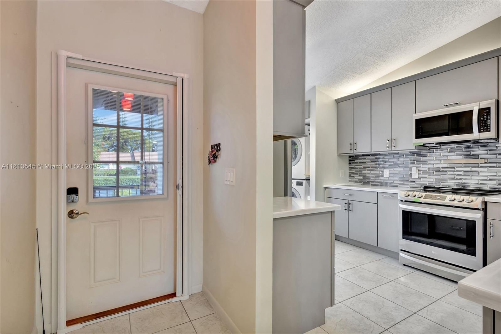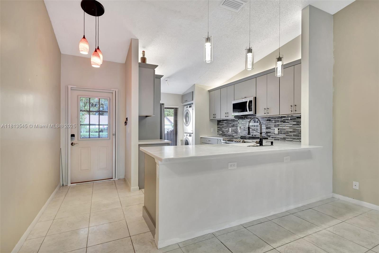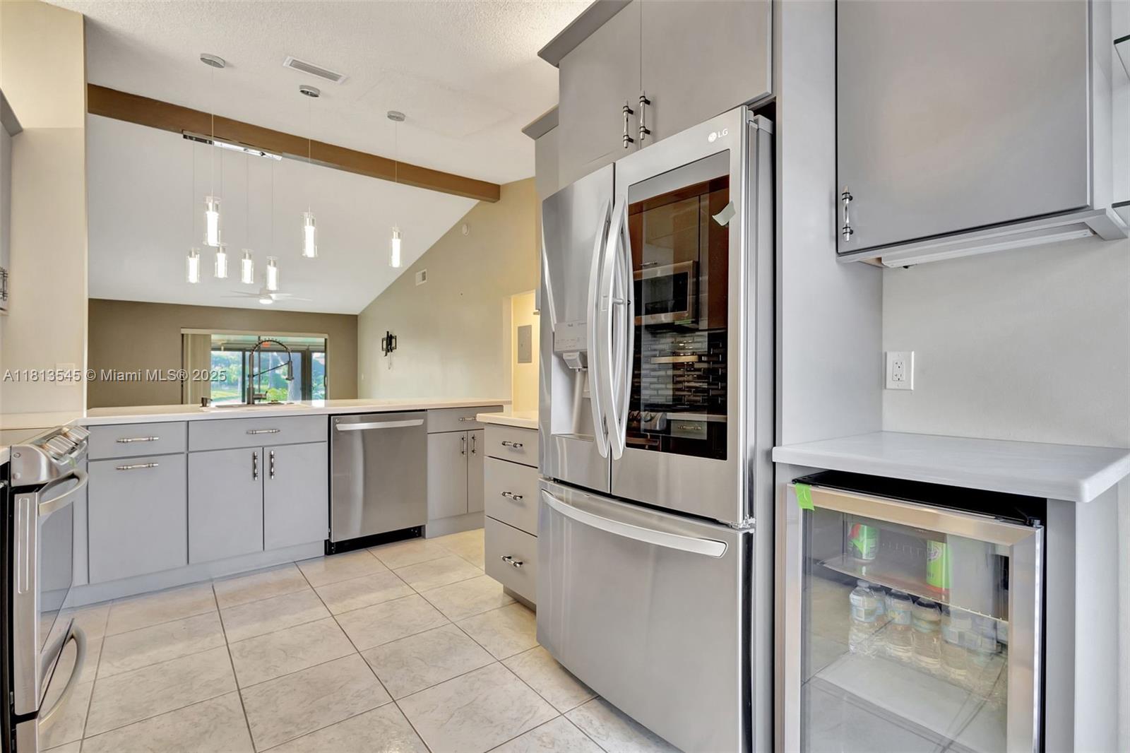Immaculate Corner Unit with lake view! Beautifully remodeled kitchen with custom cabinetry, poured epoxy countertops, wine cooler, Florida room enclosed with a/c giving additional square footage, new electrical, vaulted ceilings, Impact Windows, new air conditioner, new washer/dryer, new hot water heater and primary bedroom has walk-in closet. Very lovely quiet and gated community with nice amenities including a heated community pool that overlooks the lake, two tennis courts and clubhouse. Very stable HOA, monthly amount reflects 2025 change already. Centrally located in West Palm Beach, close proximity to shopping and dining and a short drive to the beach! Perfect move-in condition would make a wonderful vacation home or permanent residence. Motivated Seller bring offers!