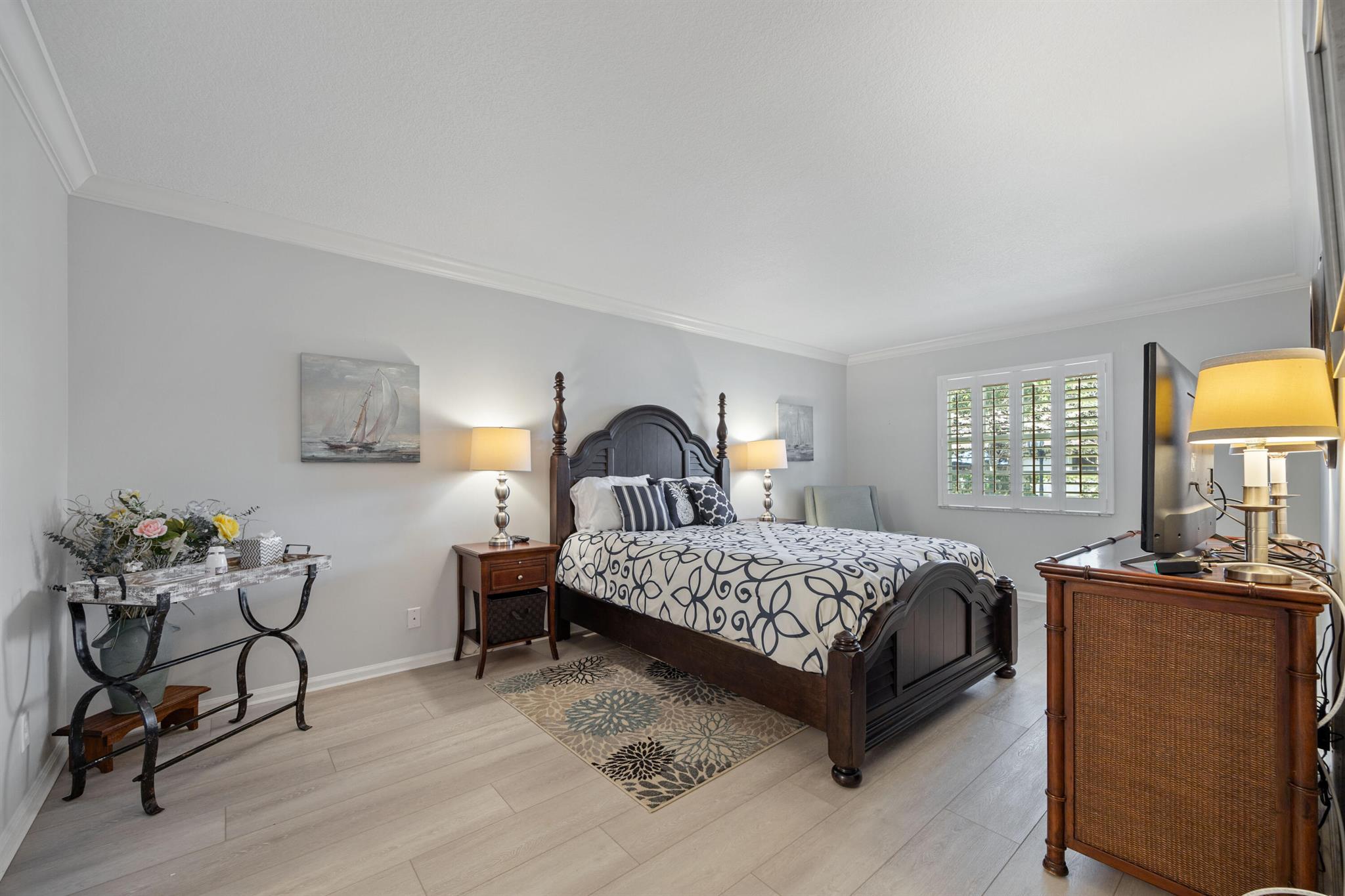 Beautifully remodeled villa-style condo in Limetree! Unit offers 2 bedrooms, 2 bathrooms with LVP flooring, crown molding & plantation shutters throughout. All popcorn has been removed. Kitchen updated with white shaker cabinets, quartz countertops & glass tile backsplash. Enclosed Florida Room w/complete impact glass & a privacy screen to close off for guests or home office! Guest bedroom w/ built-in shelving. Remodeled remodeled guest bathroom w/newer vanity & upgraded shower. Large primary suite with 2 closets & ensuite with remodeled shower. Property is being sold furnished/turnkey with exclusions. W/D in unit. ROOF 2021 & HVAC 2020. Limetree is an adult active community with 3 pools, 6 tennis/pickleball courts, Bocce & so much more!