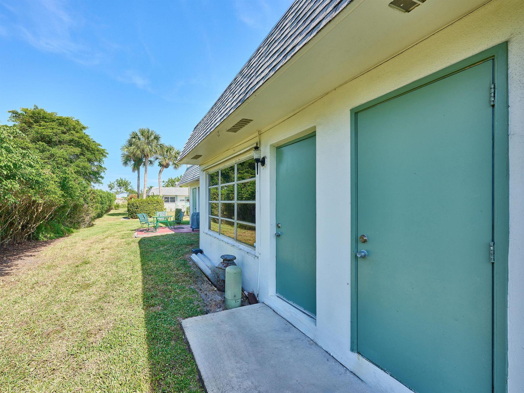 Updated villa with spacious walk-in closet and abundant storage throughout. Features a large utility room with full-size washer/dryer, shelving, and rear door to a private outdoor area. New flooring, fresh paint, and newer AC & water heater (2021). The finished enclosed porch adds 205 sq ft of bonus living space--great for a home office, den, or guest area. Two reserved parking spots located directly in front of the unit for added ease. Enjoy resort-style amenities including a heated pool, clubhouse, sauna, tennis, pickleball, and a new dog park. Ideally located near major highways and Palm Beach International Airport. Perfect for seasonal or year-round Florida living in a well-maintained, amenity-rich community.