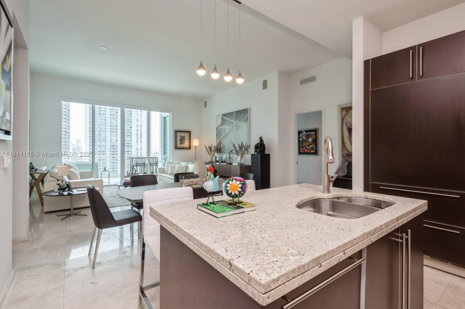 Excellent opportunity to own a condo in the sought after Asia on Brickell Key. 2 bedrooms with a den, high ceilings, top of the line kitchen, 2 parking spaces, private elevator, amazing views, tennis, valet, gym, sauna, party room. Easy to show. Show with pride