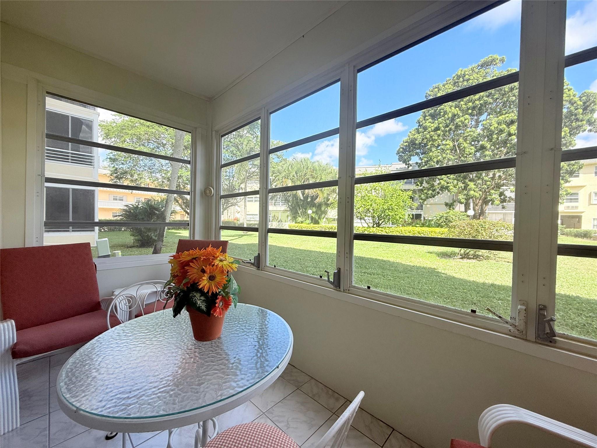 A must see! BRIGHT, CLEAN, and WELL-MAINTAINED 2 bed, 2 bath 1st-floor unit. FULLY FURNISHED (Turn key) with RENOVATED KITCHEN featuring white cabinets/appliances and ample storage. Updated bathrooms (2022). IMPACT WINDOWS in bedrooms, TILE throughout. Living room & 2nd bedroom have SOFA BEDS. Spacious primary bedroom with full wall of closets. Enclosed Florida room overlooks garden. Building is well-kept—roof 2023, 50-year inspection done. 55+ community with 2 POOLS, BBQ areas, FITNESS CENTER, clubhouse w/ billiards, library. Steps from Lauderhill 9-hole GOLF COURSE.
