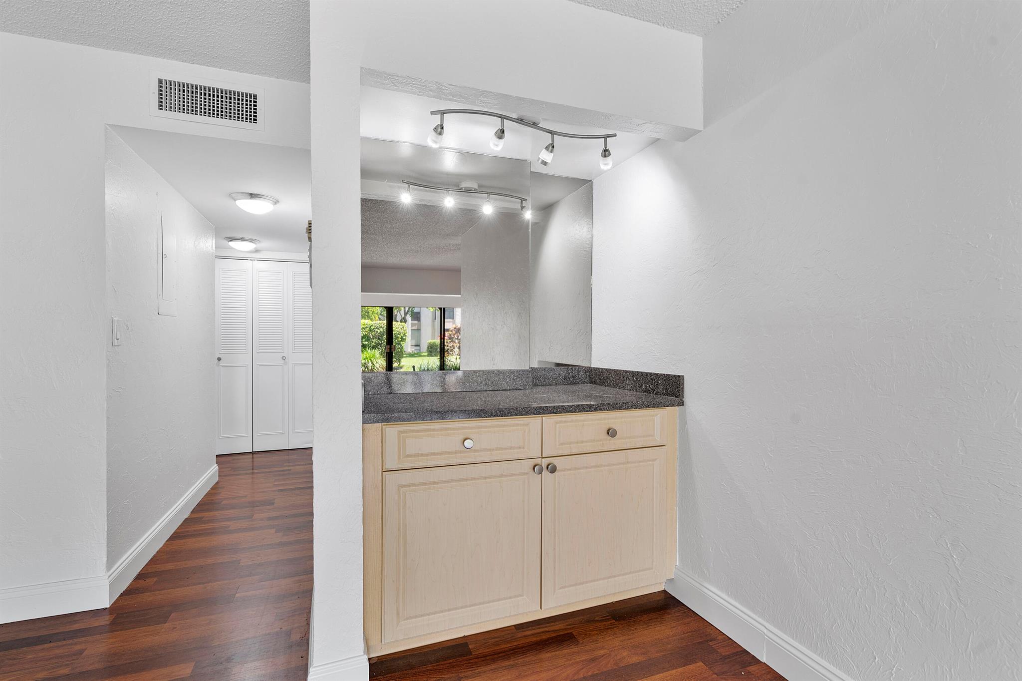 GREAT LOCATION! CORNER GROUND FLOOR UNIT WITH GARDEN VIEW! Lovely spacious corner unit on first floor with laminate flooring, freshly painted with new stainless steel kitchen appliances. Bathrooms with granite counters and wood cabinets. Master bedroom with 2 walk-in closets. Assigned parking right in front of unit entrance. Pools just steps from your door. Woodhaven is in the heart of Boca close to parks, malls, restaurants, beaches and highways. A 55+ community (allows 16 yrs old+ residents). Pools, clubhouse, grill, great for entertaining and with a storage room. Plenty of guest parking. A must see unit in Beautiful Boca Del Mar!!