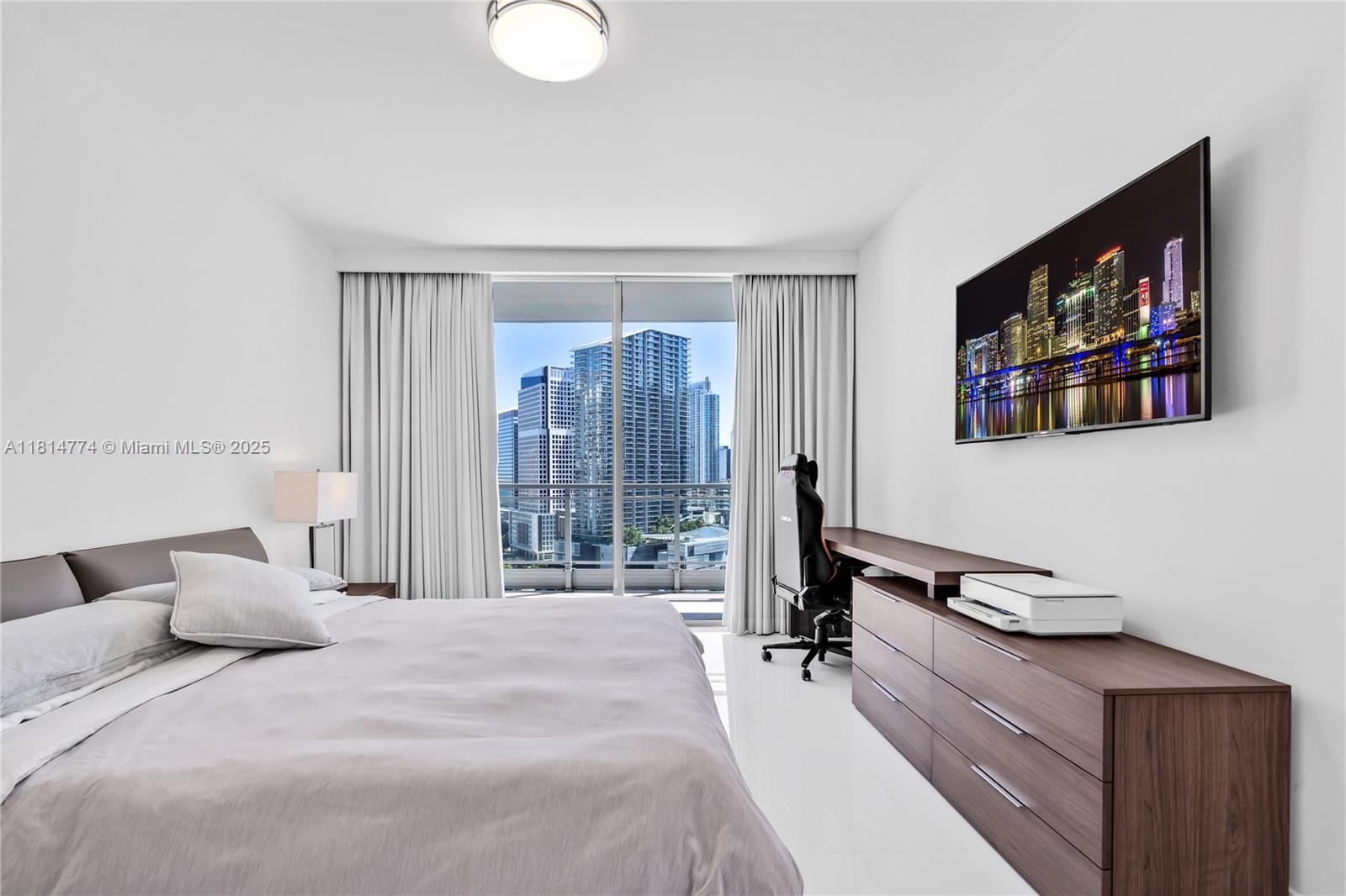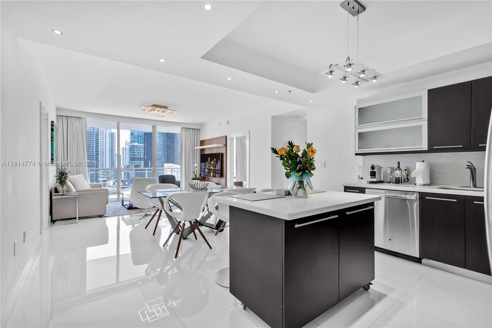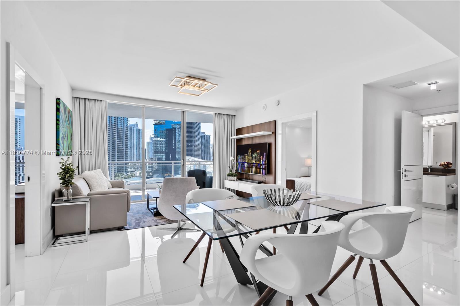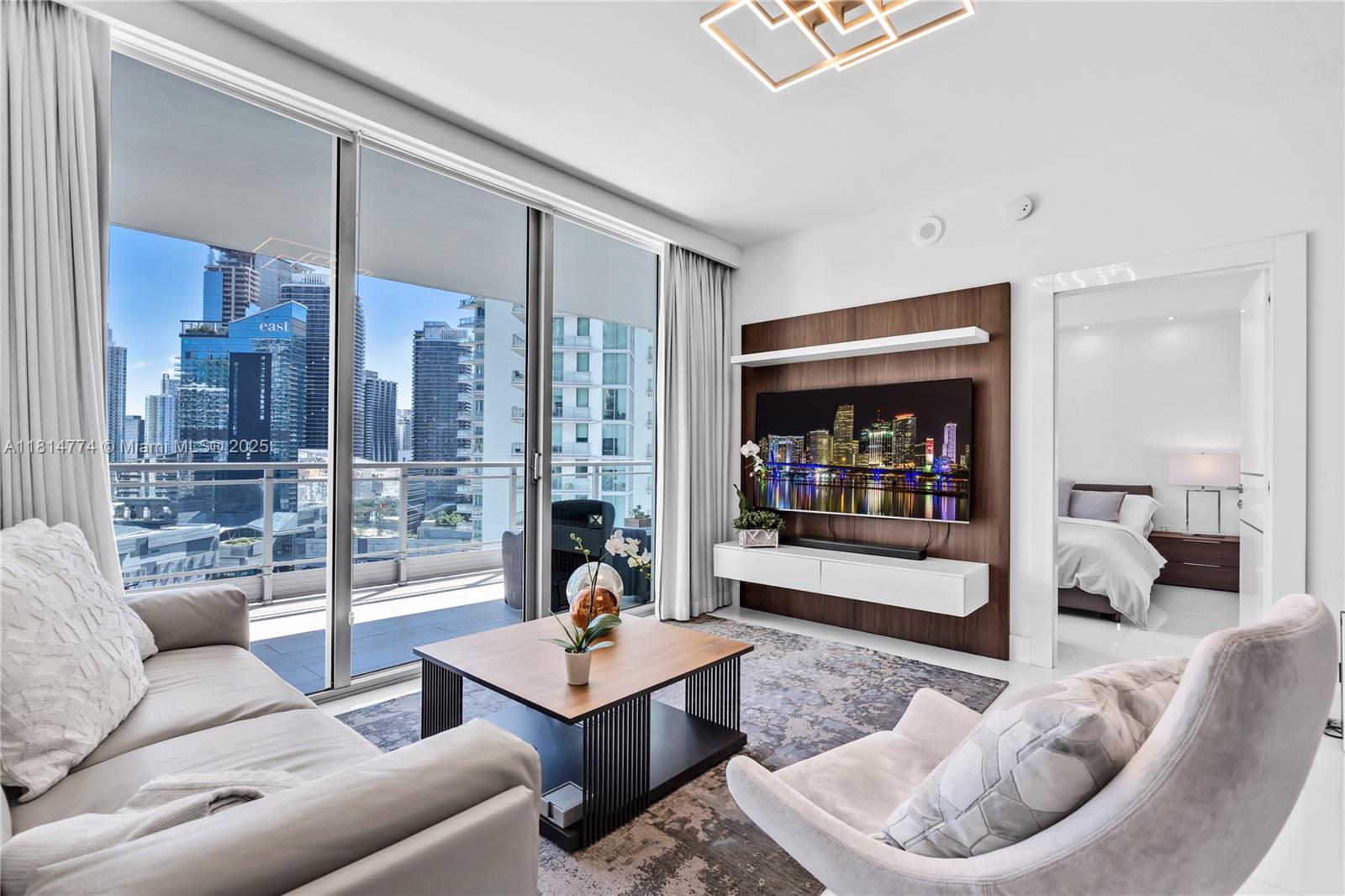 Unparalleled: high-floor unit at The Ivy, a gated Riverfront community with stunning Miami River, Brickell City Centre & skyline views. Spacious 2-bed, 2-bath with split floor plan, 32x32 porcelain tile, large terrace, custom doors, molding, recessed/LED lighting, floor-to-ceiling impact windows. The kitchen features glass tile backsplash & stainless-steel appliances. Renovated baths, California closets, blackout curtains, modern lights, Italian floating wall unit. Sold unfurnished. Includes tandem parking for 2 cars & 2 storage units. Resort amenities: infinity-edge & lap pools, spa, gym, BBQ, business center, playground, cable/internet, 24-hr security. Steps from BCC & expressways.