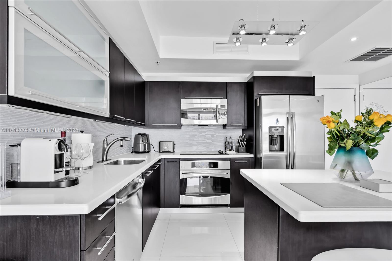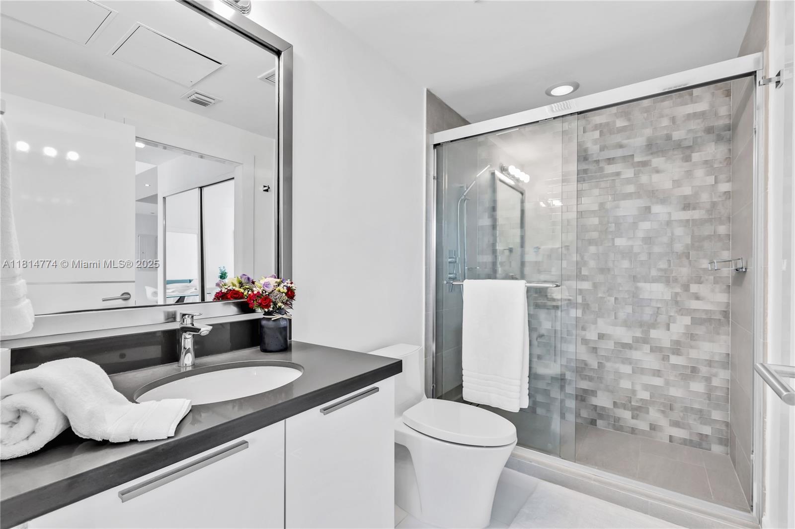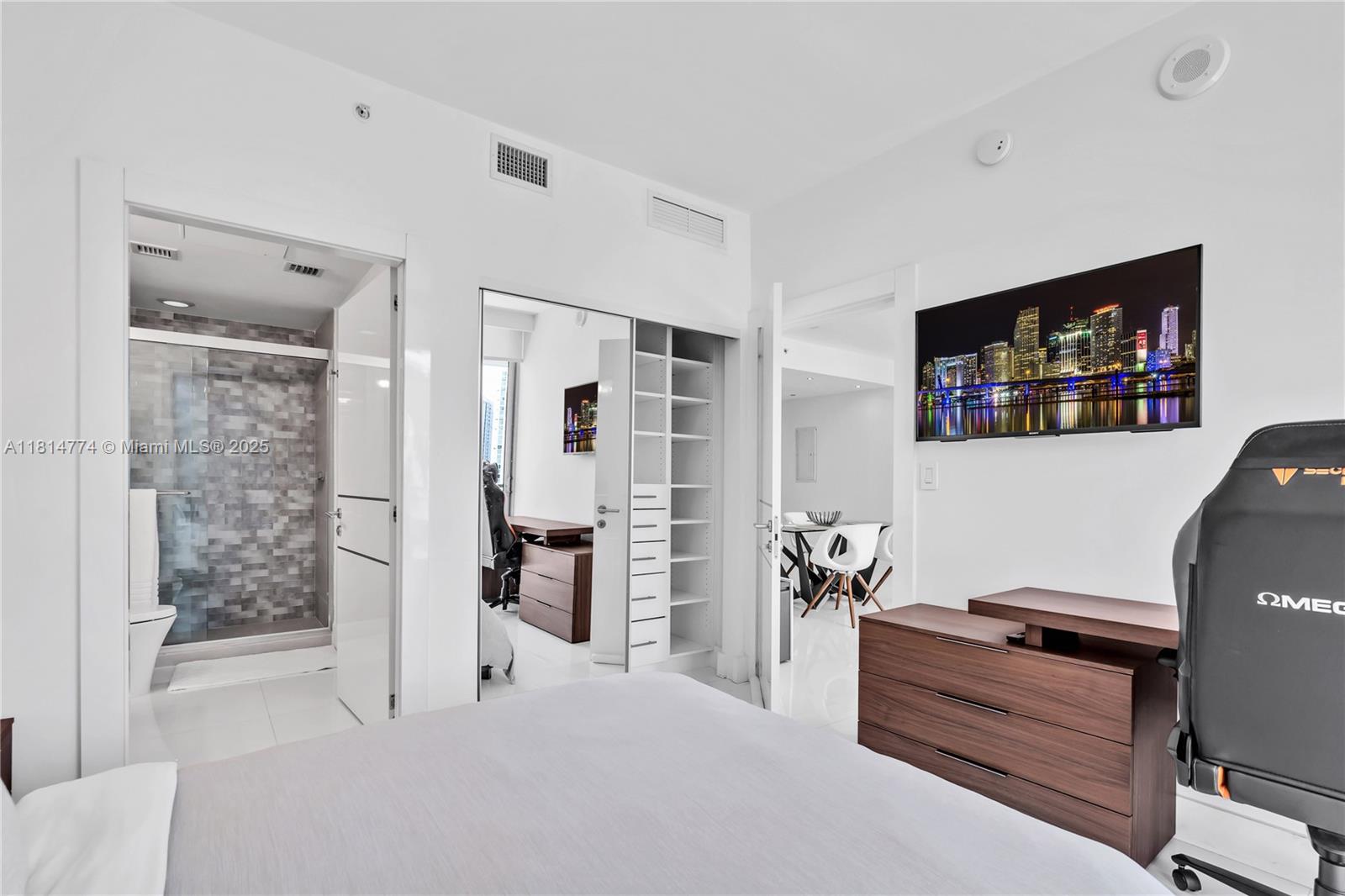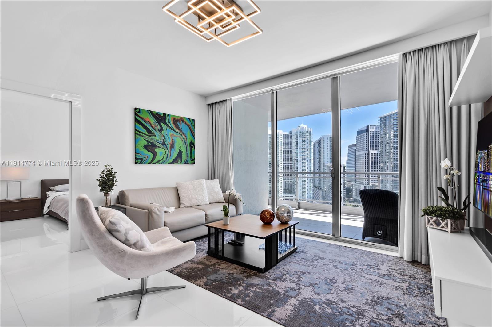 Unparalleled: high-floor unit at The Ivy, a gated Riverfront community with stunning Miami River, Brickell City Centre & skyline views. Spacious 2-bed, 2-bath with split floor plan, 32x32 porcelain tile, large terrace, custom doors, molding, recessed/LED lighting, floor-to-ceiling impact windows. The kitchen features glass tile backsplash & stainless-steel appliances. Renovated baths, California closets, blackout curtains, modern lights, Italian floating wall unit. Sold unfurnished. Includes tandem parking for 2 cars & 2 storage units. Resort amenities: infinity-edge & lap pools, spa, gym, BBQ, business center, playground, cable/internet, 24-hr security. Steps from BCC & expressways.