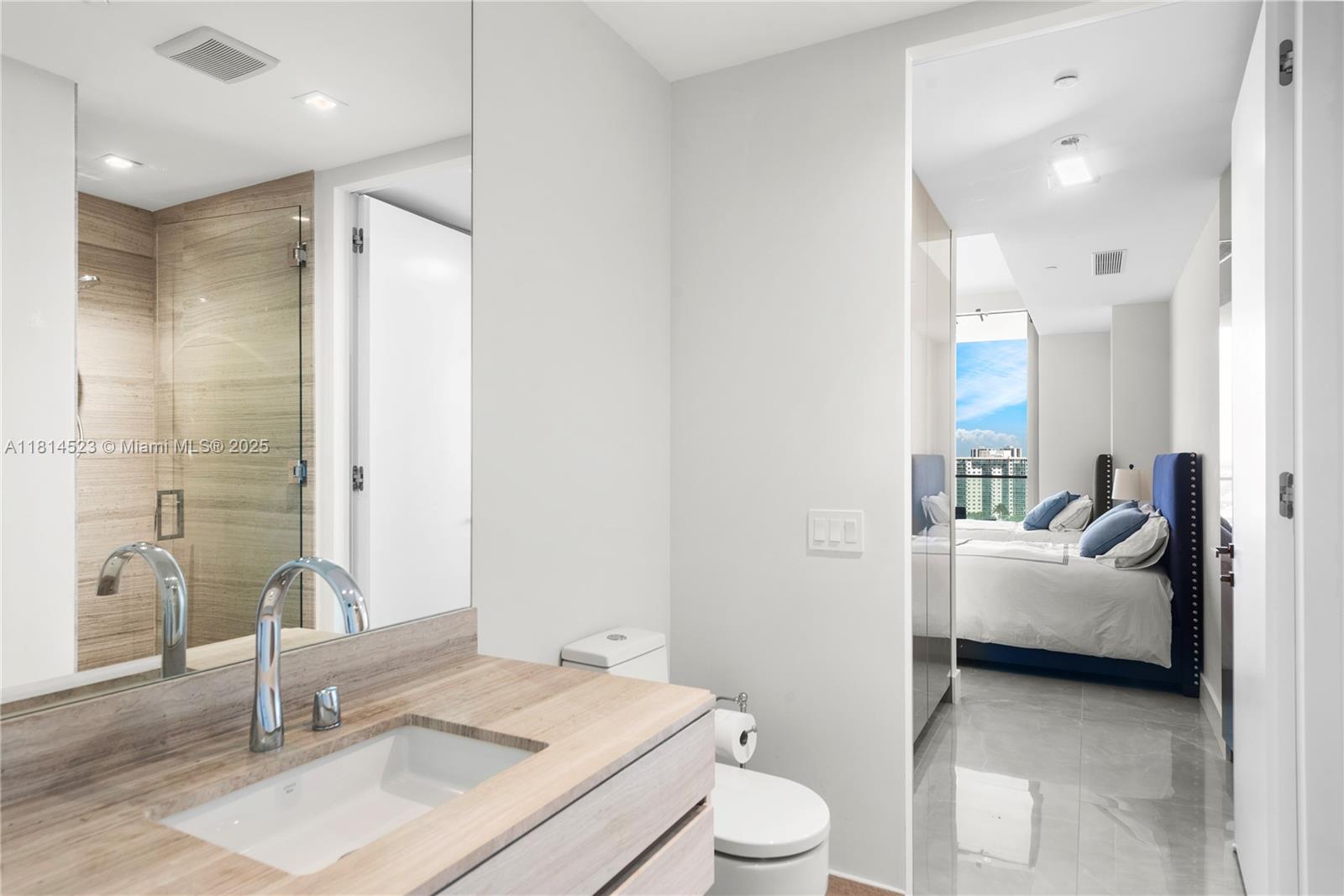 Gorgeous 3 bedrooms + studio oceanfront apartment at Residences by Armani Casa, Sunny Isles Fl. Highest quality finishes in kitchen & bathrooms by Armani Casa, two large/deep terraces; facing the turquoise ocean with white sand. And bayview/city view with amazing sunsets in the second. Principal bedroom with builtin minibar, walk-in closet and elegant marble bathroom with doble vanity, bathtub, shower & water-closet. Studio can be turned into a 4th bedroom with a shared bathroom. Live with style in one of the most elegant and luxurious residences in Miami. Armani Spa, Armani café, top of the line gym, restaurant, oceanfront outdoor jacuzzi & much more. UNIT COMES FURNISHED.