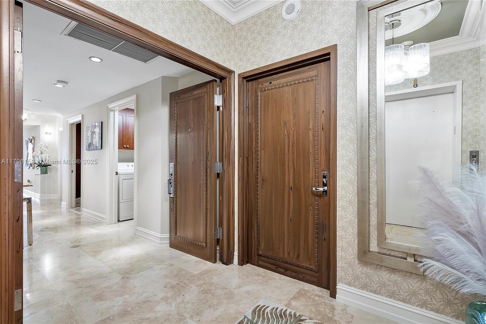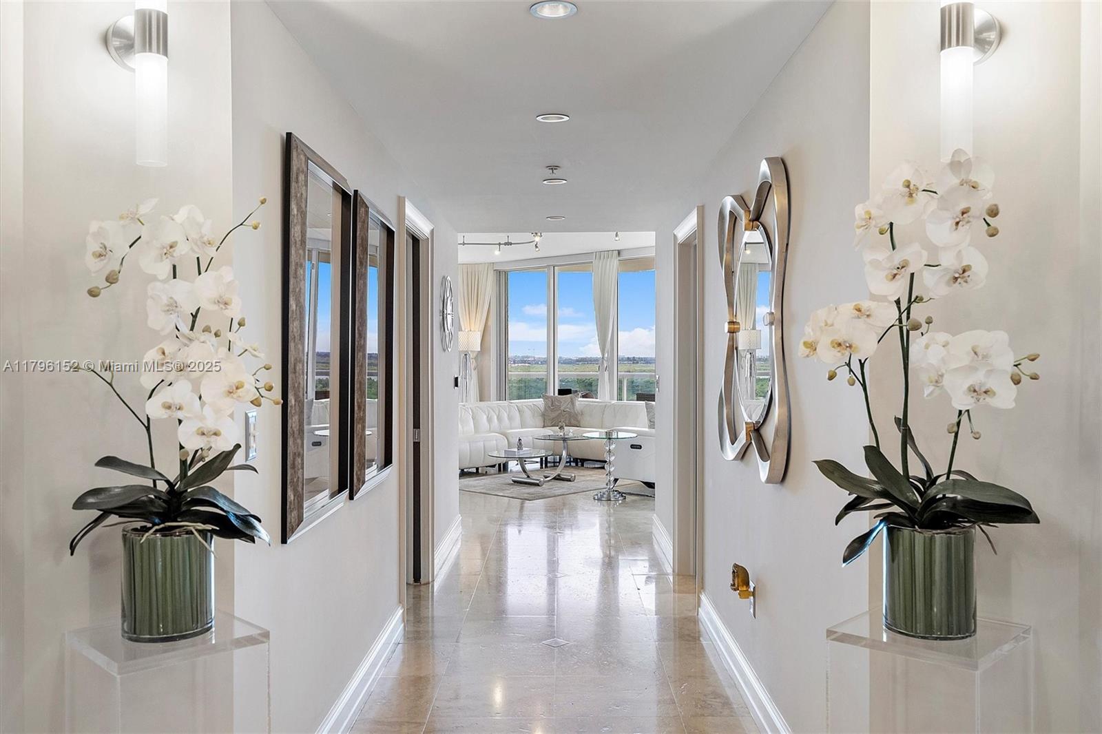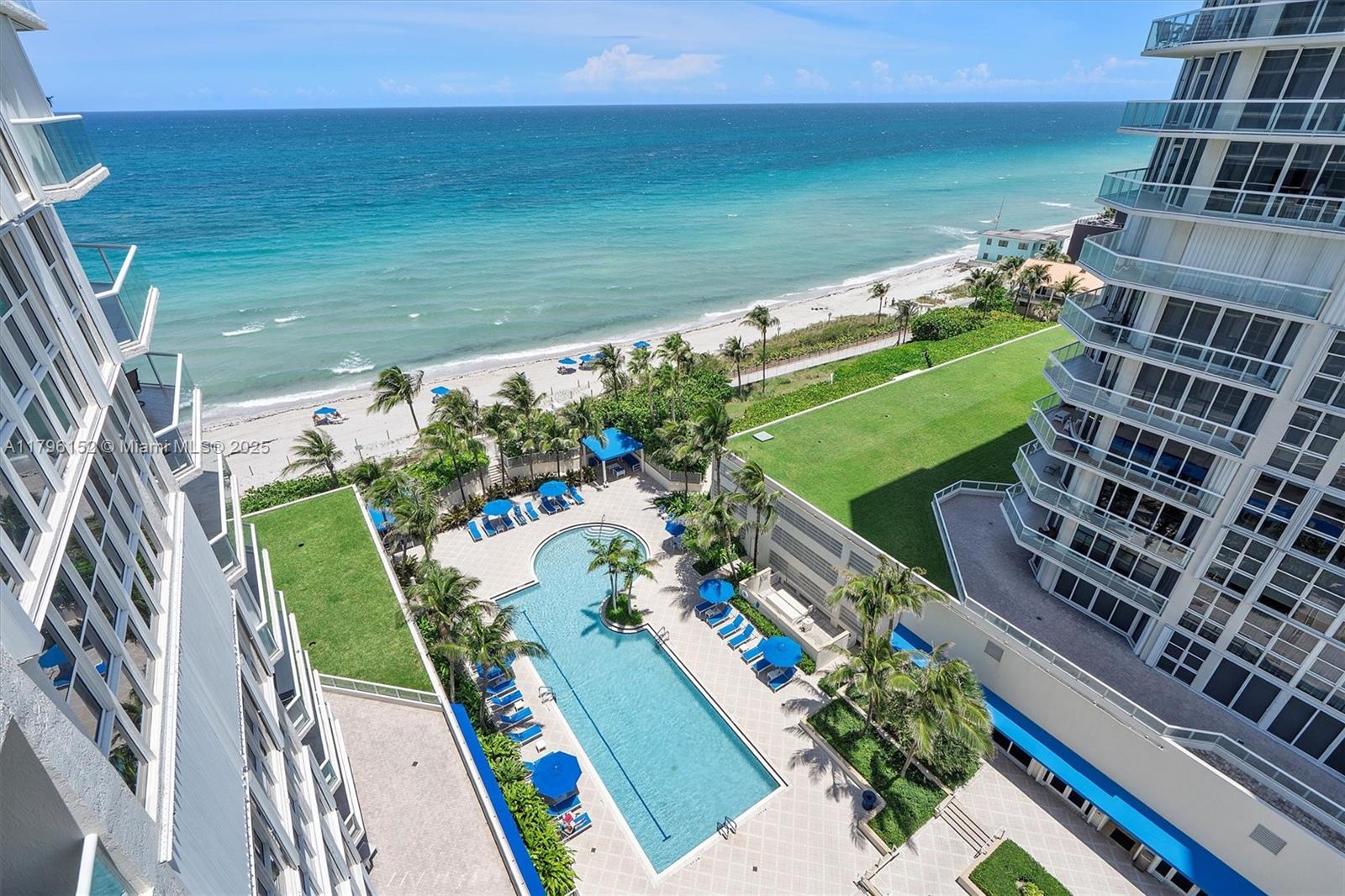 DIRECTLY ON THE SAND! BEAUTIFULLY APPOINTED OCEANFRONT RESIDENCE OFFERS EXPANSIVE VIEWS OF THE OCEAN & INTRACOASTAL. PRIVATE ELEVATOR W/ FOYER ENTRY & DOUBLE GLASS DOORS WELCOMES YOU INTO THIS BRIGHT OPEN RESIDENCE FEATURING MARBLE FLOORS, CROWN MOLDINGS, RECESSED LIGHTING, FLOOR TO CEILING GLASS, OPEN LIVING & DINING SPACE WITH A LARGE WRAPAROUND BALCONY, GOURMET KITCHEN W/ DOUBLE OVENS, GRANITE COUNTERTOPS AND BACKSPLASH, STAINLESS APPLIANCES, AND SO MUCH MORE! PRIMARY SUITE OFFERS LARGE MASTER BATH W/ 2 SEPARATE VANITIES, JACUZZI TUB, LARGE WALK-IN CLOSET & FLOOR TO CEILING GLASS WINDOWS. SPLIT BEDROOM FLOOR PLAN. PERFECTLY LAID OUT WITH AMPLE STORAGE. LAUNDRY ROOM W/ SINK. FULL SERVICE LUXURY BEACHFRONT BUILDING WITH ALL THE AMENITIES ANYONE COULD WISH FOR AND CONCIERGE SERVICES.