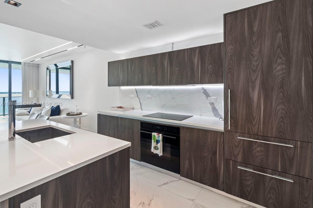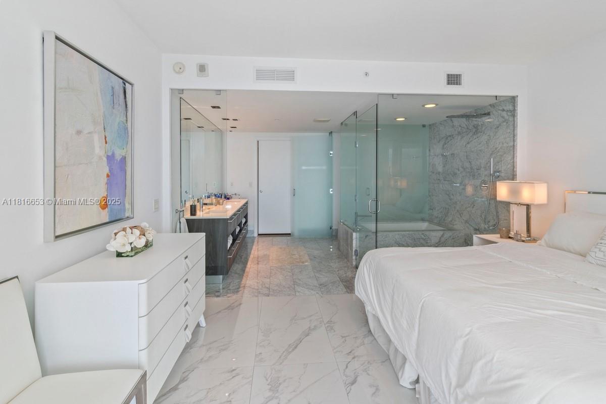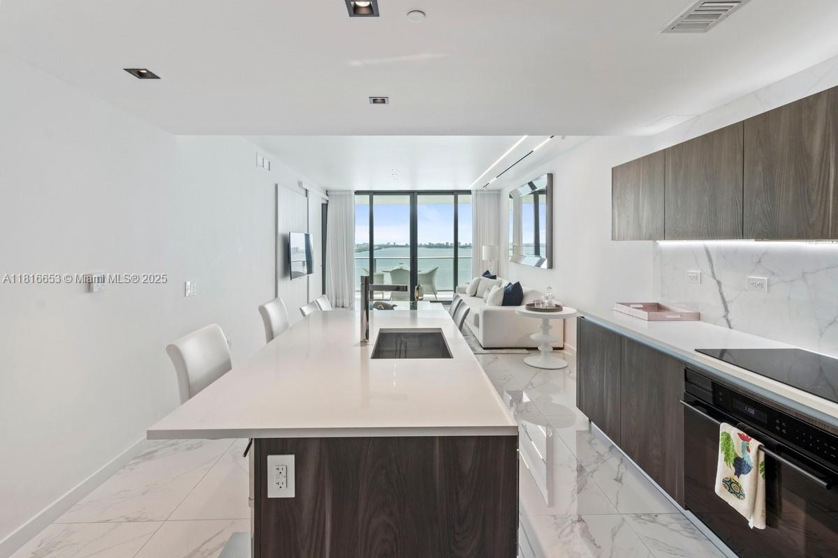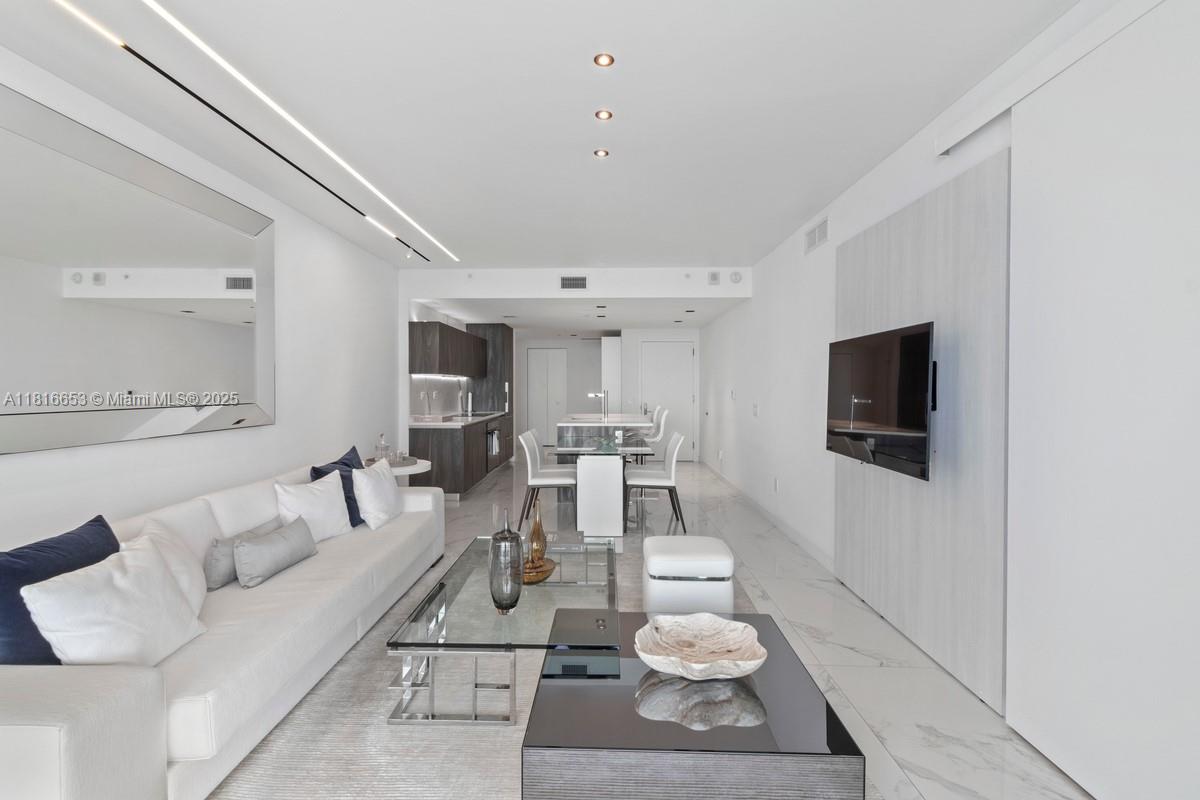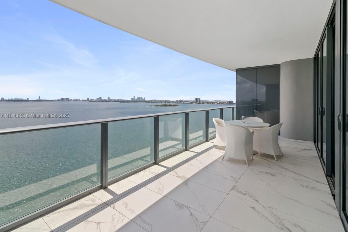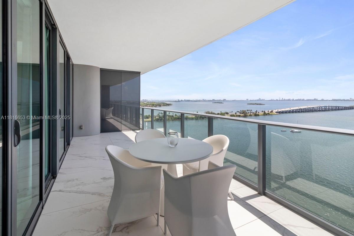 Spectacular 1 Bed + DEN / 1.5 Baths at One Paraiso with unobstructed bay and ocean views from a unique oversized balcony (approx. 250 SqFt) located in the tower’s bubble—offering one of the best 180° views. Only line with A/C unit outside the apartment, open kitchen with Italcraft cabinets, Sub-Zero & Wolf appliances, private elevator, panoramic windows, 9-ft ceilings. 5-star amenities: 3 pools, spa, gym, sauna, steam room, business center, theater, wine & cigar lounges, BBQ area, tennis courts, children’s room, boat dock, and direct access to Amara restaurant. 1 assigned covered parking space, plus valet. EV charging stations, bike storage. Pet-friendly. Only 6 residences per floor.
