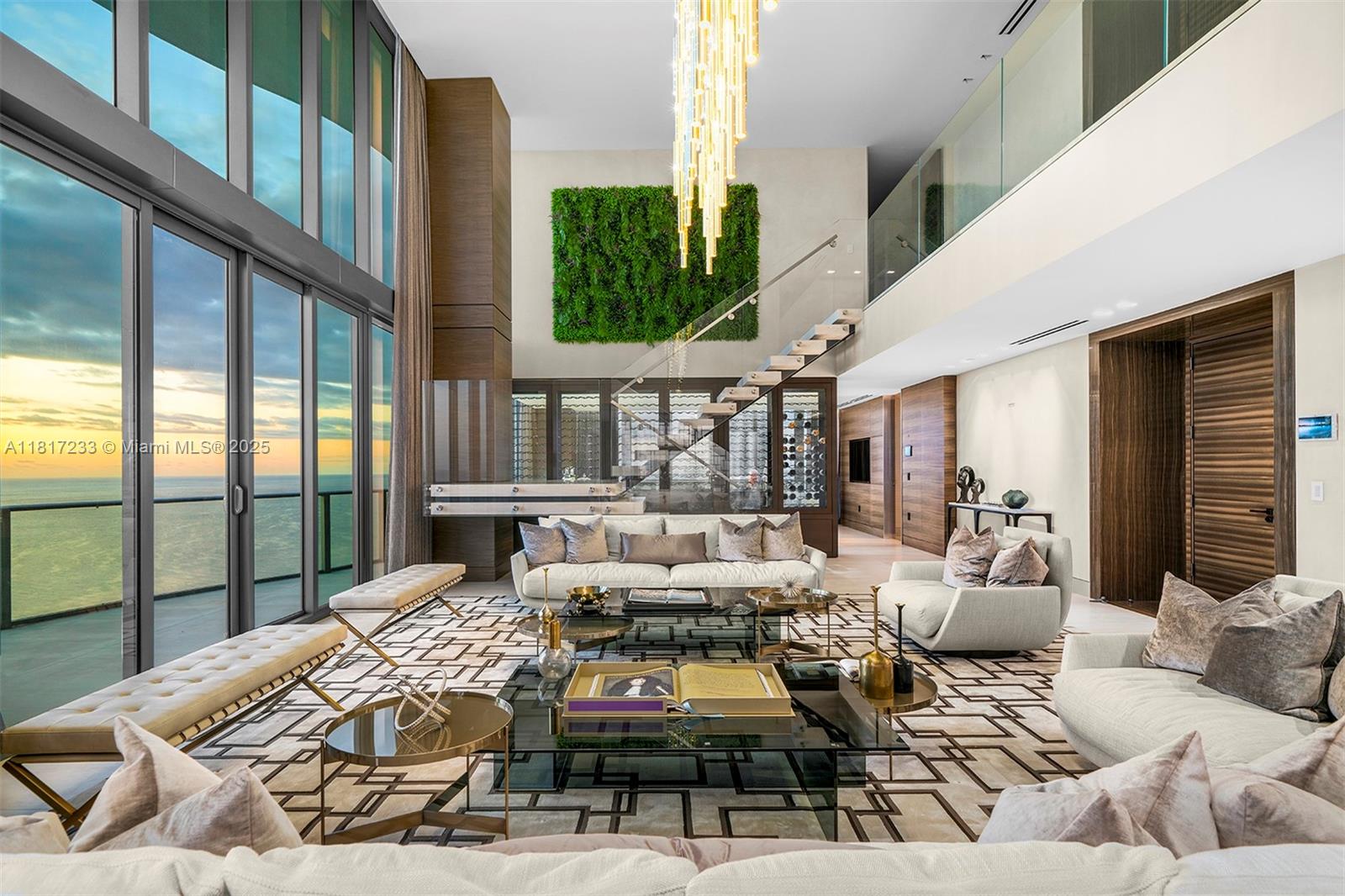 Introducing the Regalia Penthouse, a masterpiece offering limited edition living on the Ocean in Sunny Isles Beach. Encompassing 10,755 SF of living space, this residence is furnished with the world's finest materials where quality & style define the interiors. With a private pool & 2 levels of unobstructed panoramic views, including the Atlantic Ocean, pristine beaches, Intracoastal Waterway & Miami Beach skylines. This home in the sky features a stunning European kitchen with chef island & Miele cooktop, a 500-bottle wine cellar, private movie theatre, and an all marble spa like expansive primary bathroom with two stunning showers and best in class finishes. Enjoy sunrise & sunsets from this elegant residence, the last oceanfront parcel in Sunny Isles.