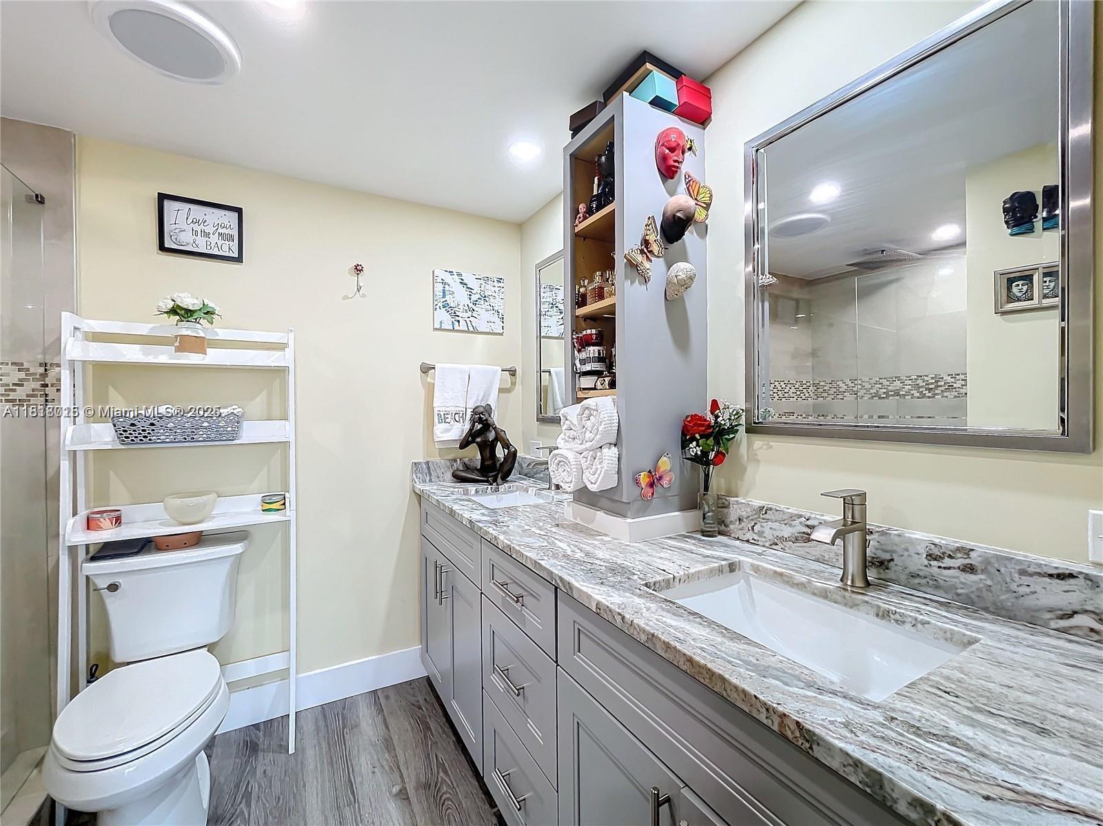 A must see recently remodeled 2-bedroom 2 bath updated condo with gorgeous sunset water views! Own your own slice of paradise on this private island. Under mile walk to the beach. Floor plan has been changed to accommodate walk in close, his and hers sinks and open concept kitchen. Allowing you to capture view on entry. Upgrades: quartz counter tops, new appliances, walk in shower bathtub ,new doors, new lighting and electric panel, water heater! Look no further this is where you want to be! Lovely tucked away condo community with clubhouse, BBQ and heated pool. Property is conveniently located nearby grocery stores, restaurants, Gulf stream casino & Horse track, tennis, pickleball court, dog park. Extra storage included with unit 1 parking space included, plenty of guess parking.