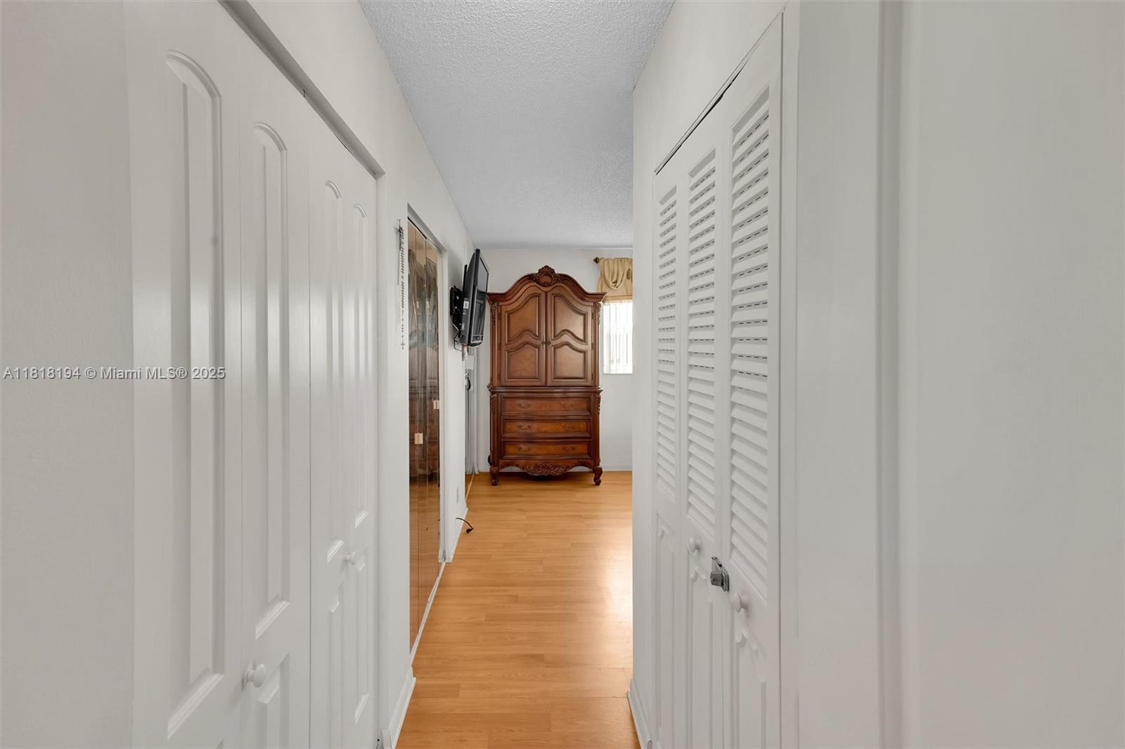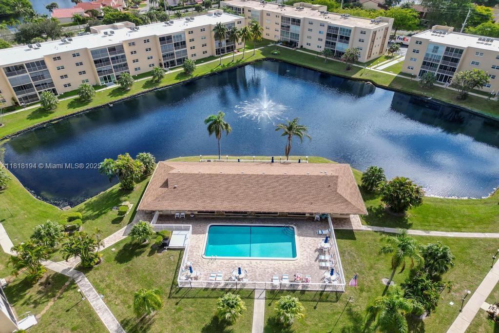 Best view, corner unit very private, remodeled kitchen, wood cabinets, granite counters, stainless steel appliances. Impact windows & doors. Balcony has wrap around windows! Master bath remodeled. Guest bath updated. Roof has been replaced, elevator updated, exterior paint is fresh. 40 year inspection complete. No upcoming assessments planned. $500.00 assessment 4 times per year for 2025 to build reserves. Ok to lease after 3 years. 1 assigned parking space & use of a guest space allowed. ESA or service animals allowed with proper documentation. 1 mile to the beach & Broadwalk, minutes to the airport, seaport, Jai-Alai w/concerts, Seminole Hard Rock Casino. Blocks to grocery, restaurants, banks, etc. Paved bike/walking path to the beach! Community pool & clubhouse, BBQ area, car wash.