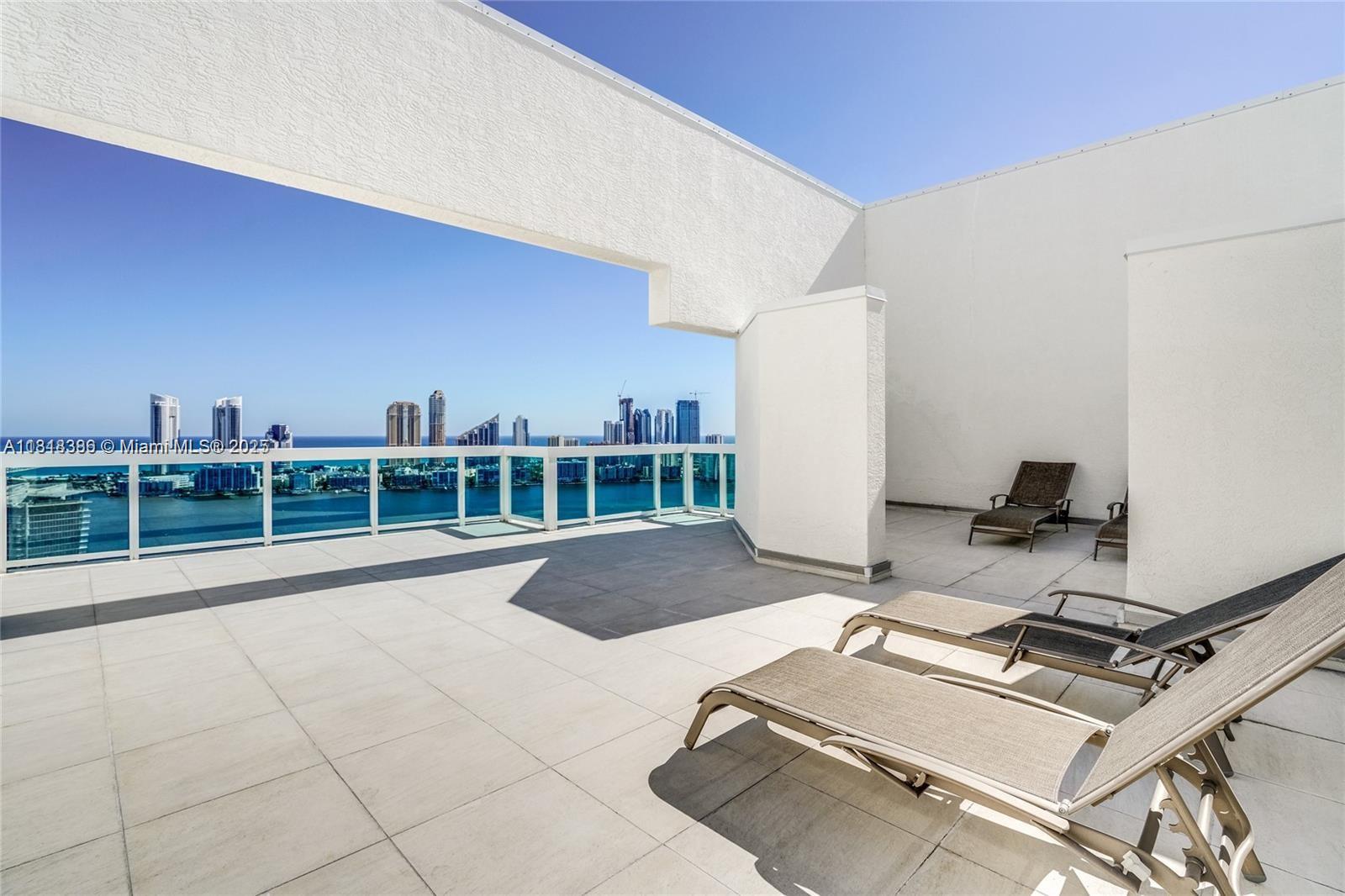 Spectacular PENTHOUSE at The Peninsula in Aventura! This one-of-a-kind unit boasts a private rooftop terrace perfect for sunbathing or entertaining, plus 2 balconies with stunning views, East to the Intracoastal & Sunny Isles skyline, West to the city & water. Enjoy 3 bedrooms, 3.5 baths + den across 3,400 sq ft of fully remodeled luxury: marble floors, custom cabinetry, impact windows, electric shades/blackouts, surround sound, recessed lighting, and a full-size wine cooler. Private elevator opens directly into the unit and to your exclusive rooftop. Includes 2 parking spaces, valet, and storage. Spacious, bright, and move-in ready. Amenities include 2 pools, fitness center, library, party room, tennis courts and 24 hours security in gated building. Virtual tour and floorplan available!