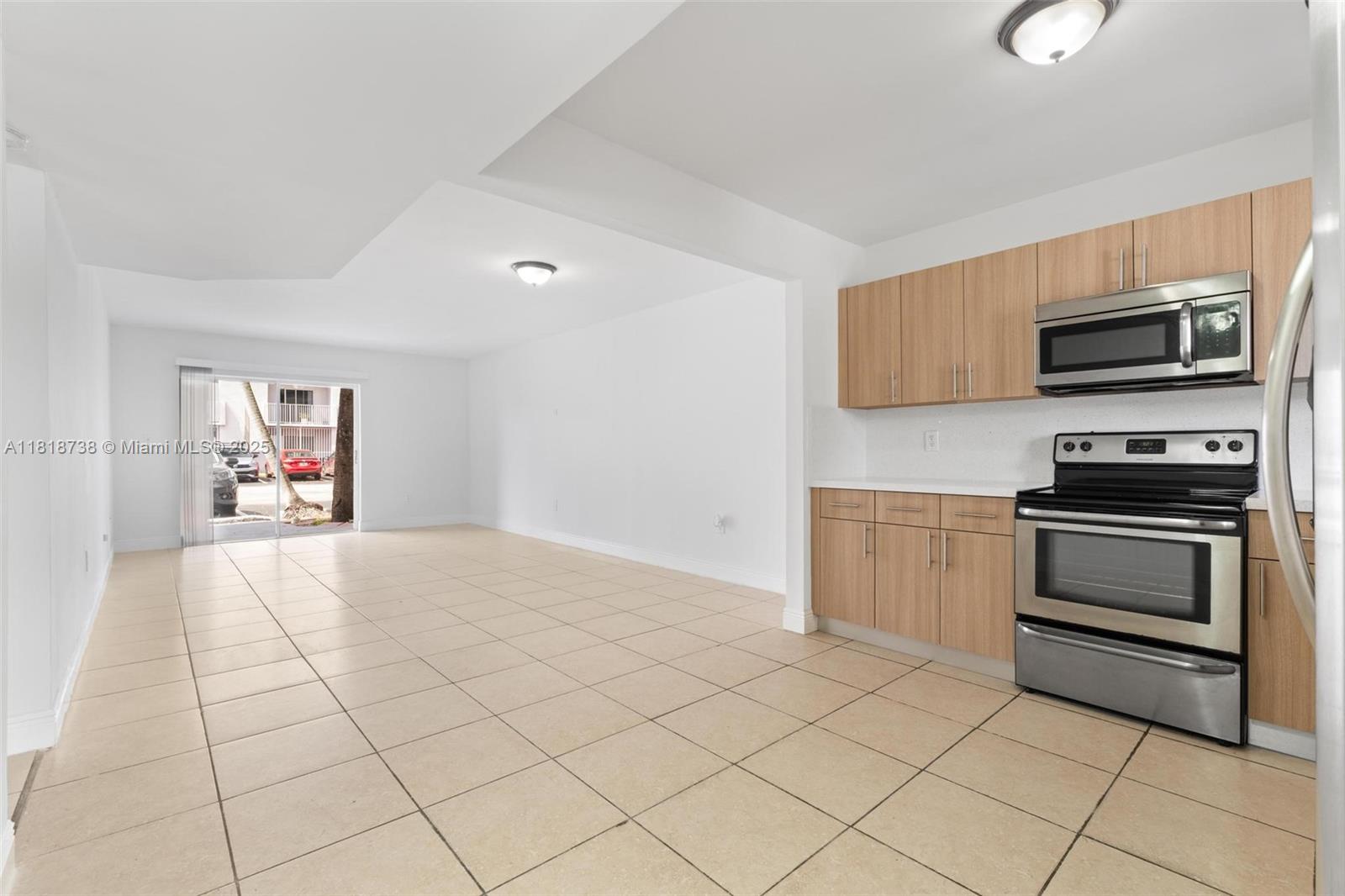 This beautifully maintained 2-bedroom,1.5-bathroom condo located in the desirable Terrazas Del Sol community.This first-floor unit offers 985 square feet of comfortable living space, ideal for first-time homebuyers,downsizes,or investors.The interior features a spacious open layout with tile flooring throughout,a modern kitchen equipped with stainless steel appliances including a refrigerator ,electric range, microwave, and in-unit washer/dryer.The well-kept, gated community offers low HOA fees per month,covering exterior maintenance and common areas. With strong rental potential and excellent long-term value, this move-in-ready condo is a great opportunity in one of Hialeah’s most central neighborhoods.
