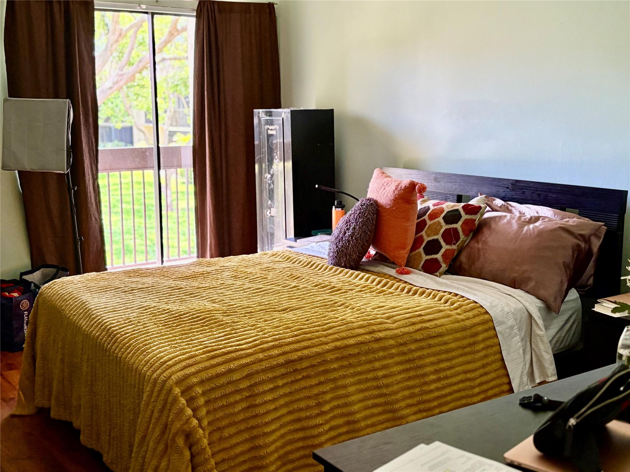 COME TO PARADISE! Unique and spacious 2 bedrooms 2 bathrooms on the second-floor condo with a peaceful garden view. This beautifully maintained unit features high ceilings, large walk-in closets, and new laminate flooring throughout, and washer and dryer. The kitchen boasts newer Frigidaire stainless steel appliances. Enjoy the enclosed patio with acrylic windows—perfect for relaxing year-round. The master bathroom has been tastefully remodeled. Located in a well-kept community with great amenities. Move-in ready and price to sell!