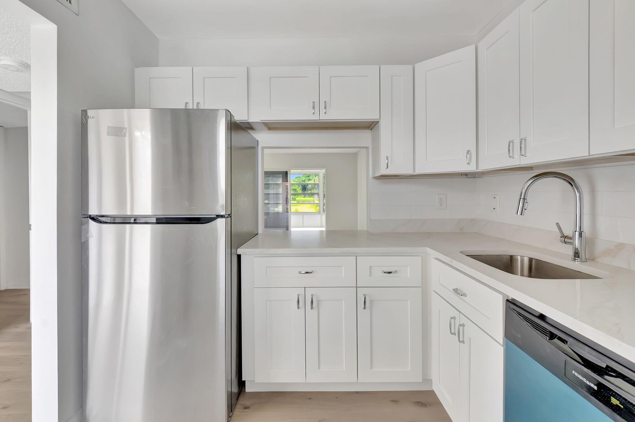 Flying High Here at Village of Oriole! Exquisitely Renovated Corner Condo here at Abbey Village (55+) Two Bedroom Two Bath renovated condo overlooking the pool and the clubhouse! Full Hurricane protection! Newer A/C and Water Heater! New Kitchen with Quartz Countertops and Brand new Kitchen Appliances! (Renovation fully permitted) New Electrical Box! Abbey Village is being painted in the near future (Already paid for). Close to the Clubhouse offering a Fitness Center, Walking paths, Community rooms, and 2 Large Pools! Right off Atlantic, Close to Shops, Turnpike and I95! 700 Credit Required by Association. Condo accepts Financing. Service Animals Allowed. Children age 15+ allowed.