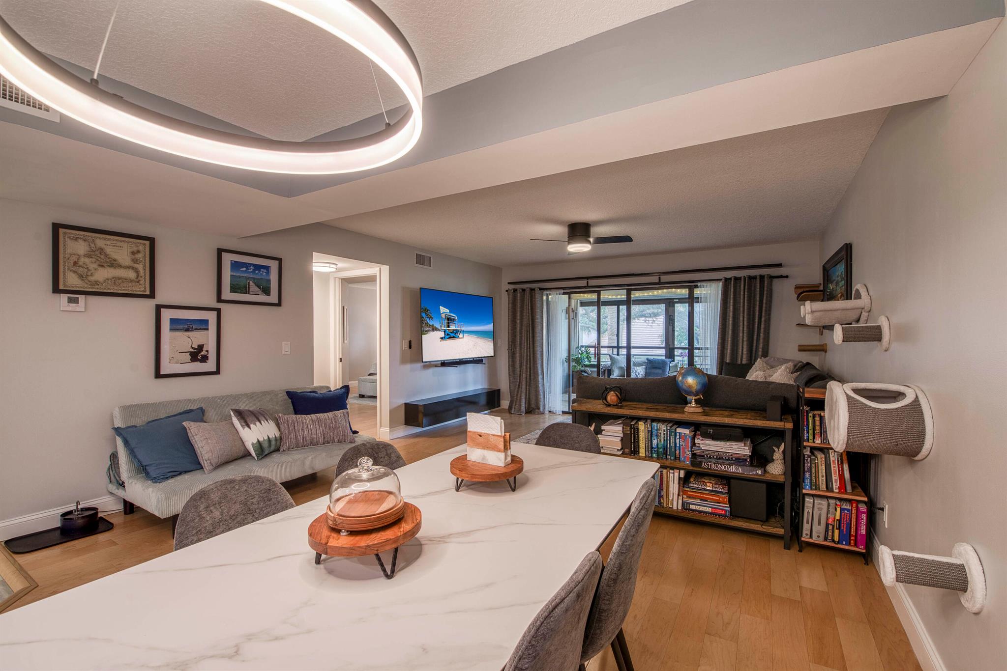 Renovated contemporary-style 2BR/2BA condo in Juno Beach's gated waterfront community, Oak Harbour. Enjoy an open floor plan with kitchen bar-top seating, a separate dry bar for entertaining, and a private primary suite. The enclosed patio adds additional living space or can be opened up for a breezy outdoor setting--surrounded by lush greenery and mature oak trees for both privacy and a peaceful view. Oak Harbour offers 24/7 manned security and resort-style amenities, including a marina with available boat slips, two pools, tennis courts, and a clubhouse. Ideally located just minutes from Jupiter's pristine beaches, top-rated dining, shopping, and major roadways. Whether you're seeking a full-time residence or a luxury seasonal retreat, this move-in ready home offers the best of Jupiter's