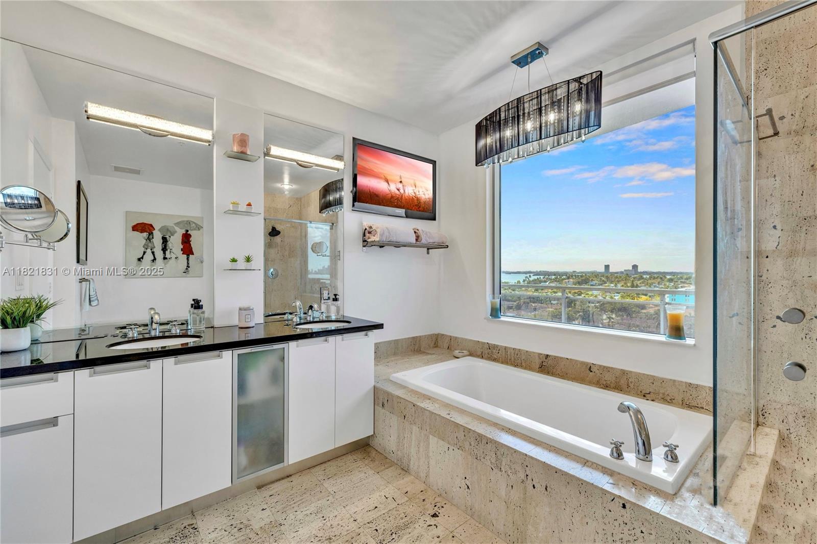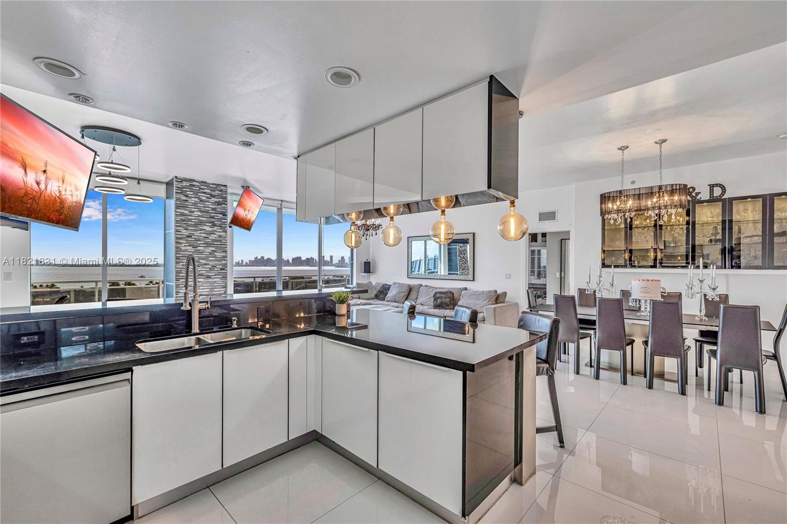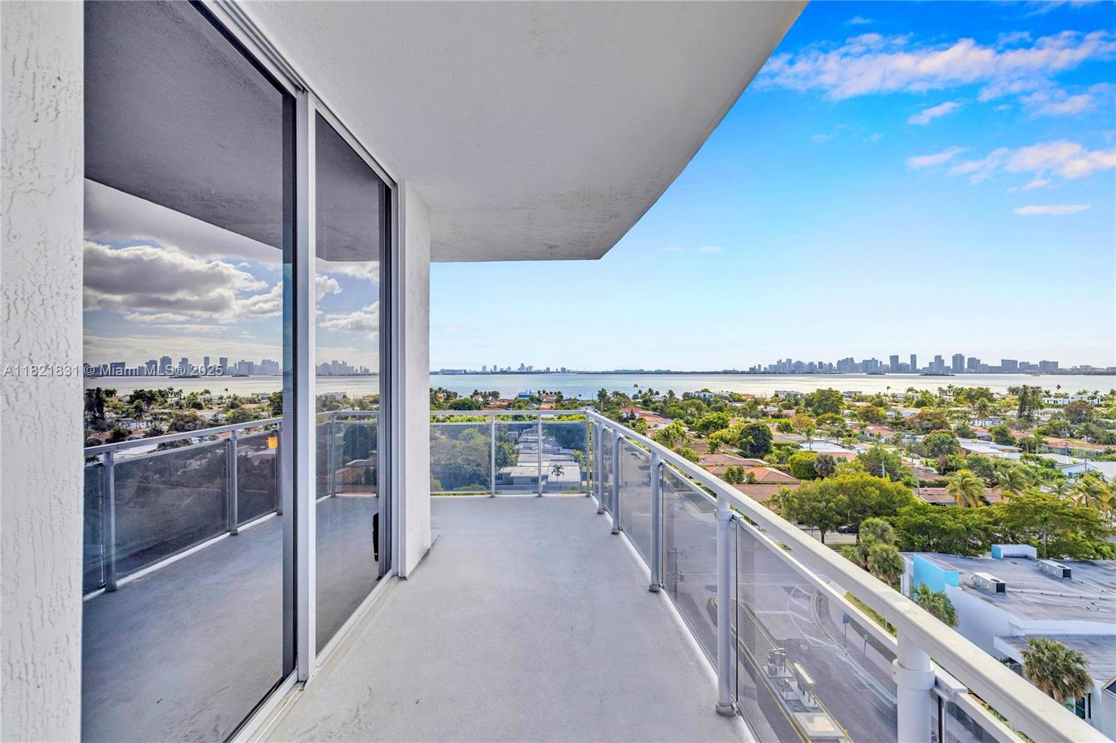 Stunning corner unit with a panoramic wraparound balcony, located in the 02-line, the best line in the building, offering unobstructed skyline and water views, including views of Biscayne Bay, the skyline, and Miami Beach. The unit features 10ft high ceilings, impact windows, a renovated interior with new flooring, a decorative fire pit, an updated kitchen, an updated bathroom, a built-in walk-in closet, and brand-new top-of-the-line appliances, including a washer and dryer. The unit includes two assigned lower-level parking spaces and private storage. The building also offers a newly redesigned lobby, a brand-new heated pool, a redesigned gym, a relaxing jacuzzi, electric car chargers, and an updated roof, making this home a true gem in the highly desirable North Bay Village.