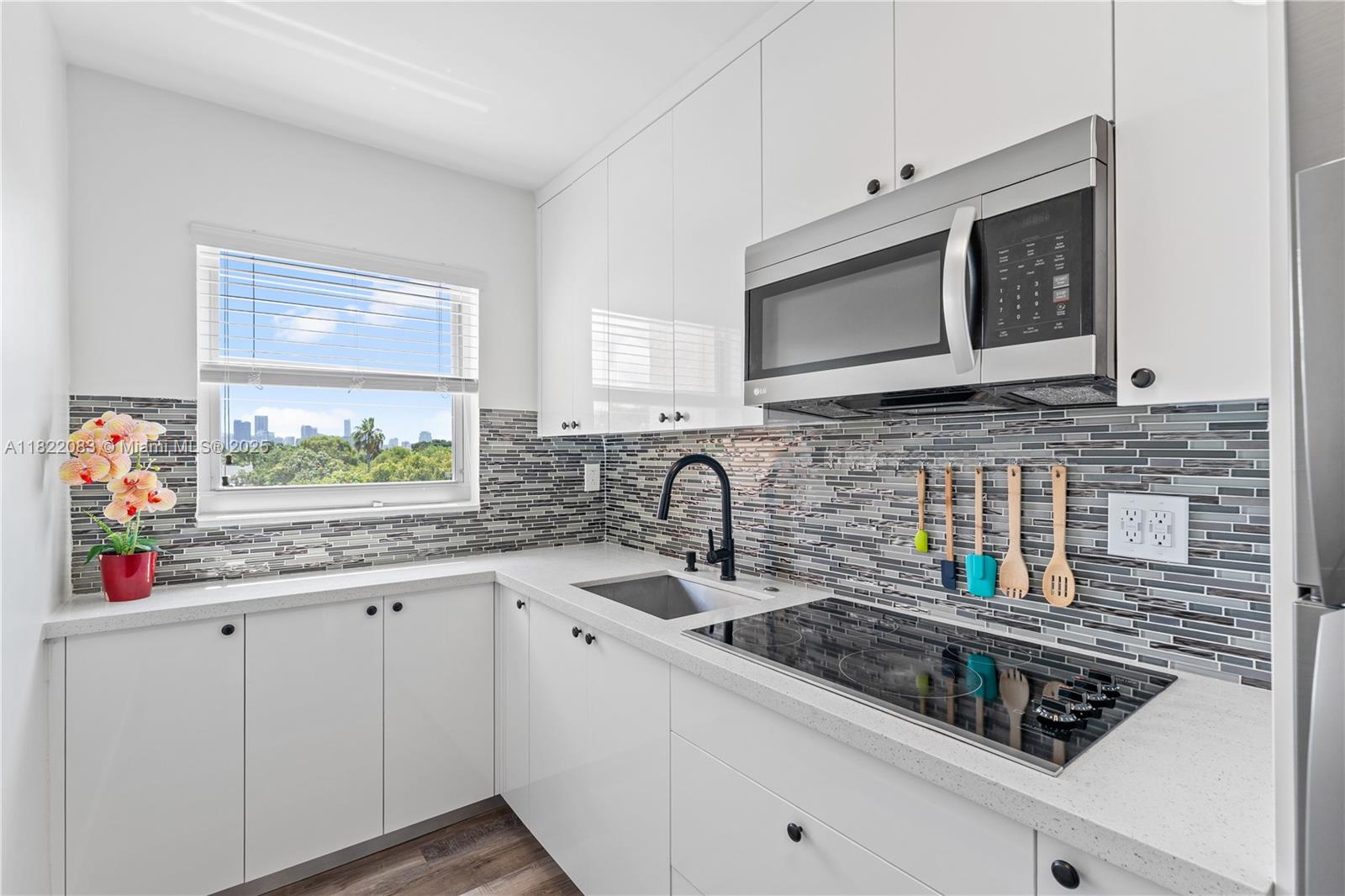 Completely remodeled 1-bedroom, 1-bath condo in the heart of Little Havana—just two blocks south of the iconic Calle 8. Take in panoramic views of Coral Gables, Coconut Grove, and the Downtown/Brickell skyline from your private balcony. This turn-key unit features a sleek modern kitchen and bathroom, stylish PVC flooring throughout, and a striking black porcelain accent wall in the living room. Fully furnished (if desired) and includes an assigned parking space. A move-in-ready gem in a vibrant, central location!