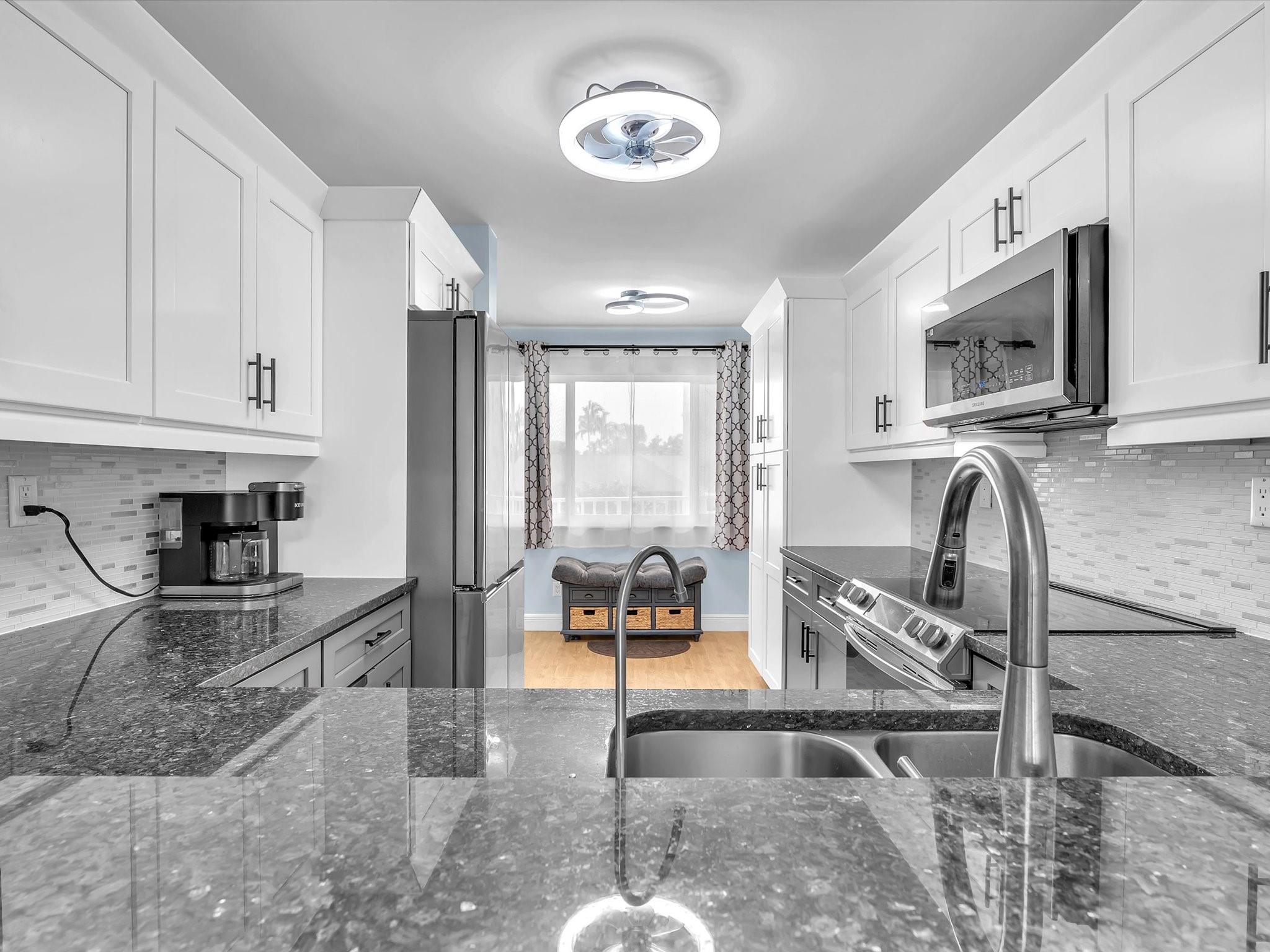 RUN!! TO THIS COMPLETELY REMODELED 2/2 UNIT IN SOUGHT AFTER 55+ DEVON COMMUNITY OF KINGS POINT. OVER 50K IN UPGRADES DONE WITHIN THE LAST 2 YEARS INCLUDE, ALL NEW KITCHEN CABINETS WITH TWO TONED COLOR, GRANITE COUNTERS, TOP OF THE LINE S/S APPLIANCES, REVERSE OSMOSIS SYSTEM, REMODELED MASTER BATH INCLUDE NEW CABINETS, QUARTZ COUNTERS,DOUBLE SINKS, WALK IN SHOWER WITH RAIN SHOWER HEAD, UPGRADED FIXTURES, SECOND BATHROOM HAS OVER-SIZED ITALIAN TILE, NEW CABINET, MARBLE COUNTERS, OVER SIZED LAUNDRY ROOM WITH COMPLETE WATER SOFTENER SYSTEM. WOOD FLOORS THROUGHOUT, NEW LIGHT FIXTURES AND FANS, NO POPCORN CEILINGS! IMPACT WINDOWS THROUGHOUT WITH DOUBLE WINDOW PROTECTION IN FRONT TO INCLUDE ACCORDIAN SHUTTERS. AWESOME WATER VIEWS! THIS CORNER UNIT IS NEXT TO ELEVATOR, STAIRS, AND TRASH CHUTE.