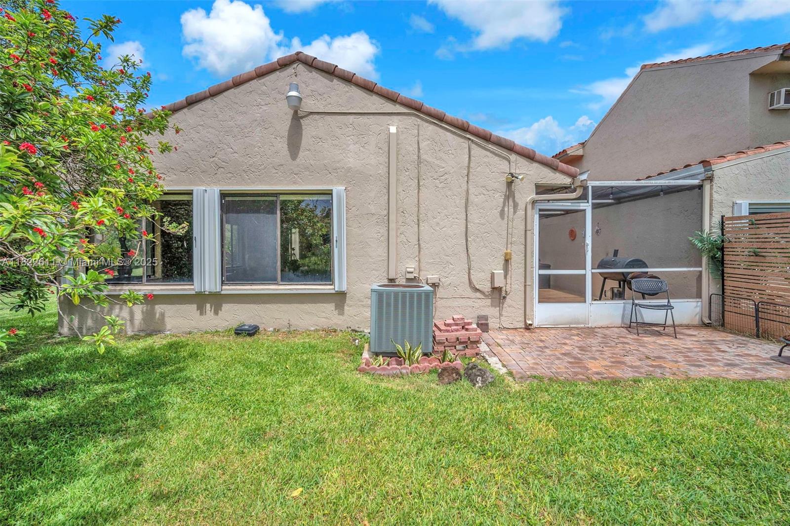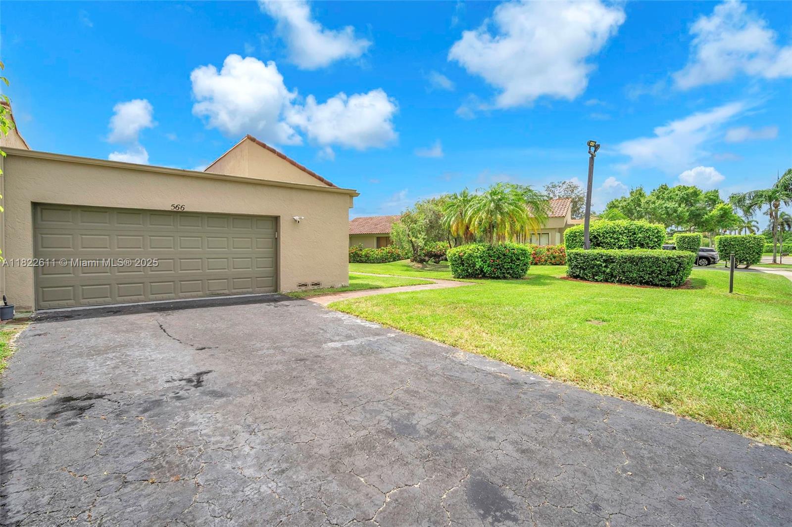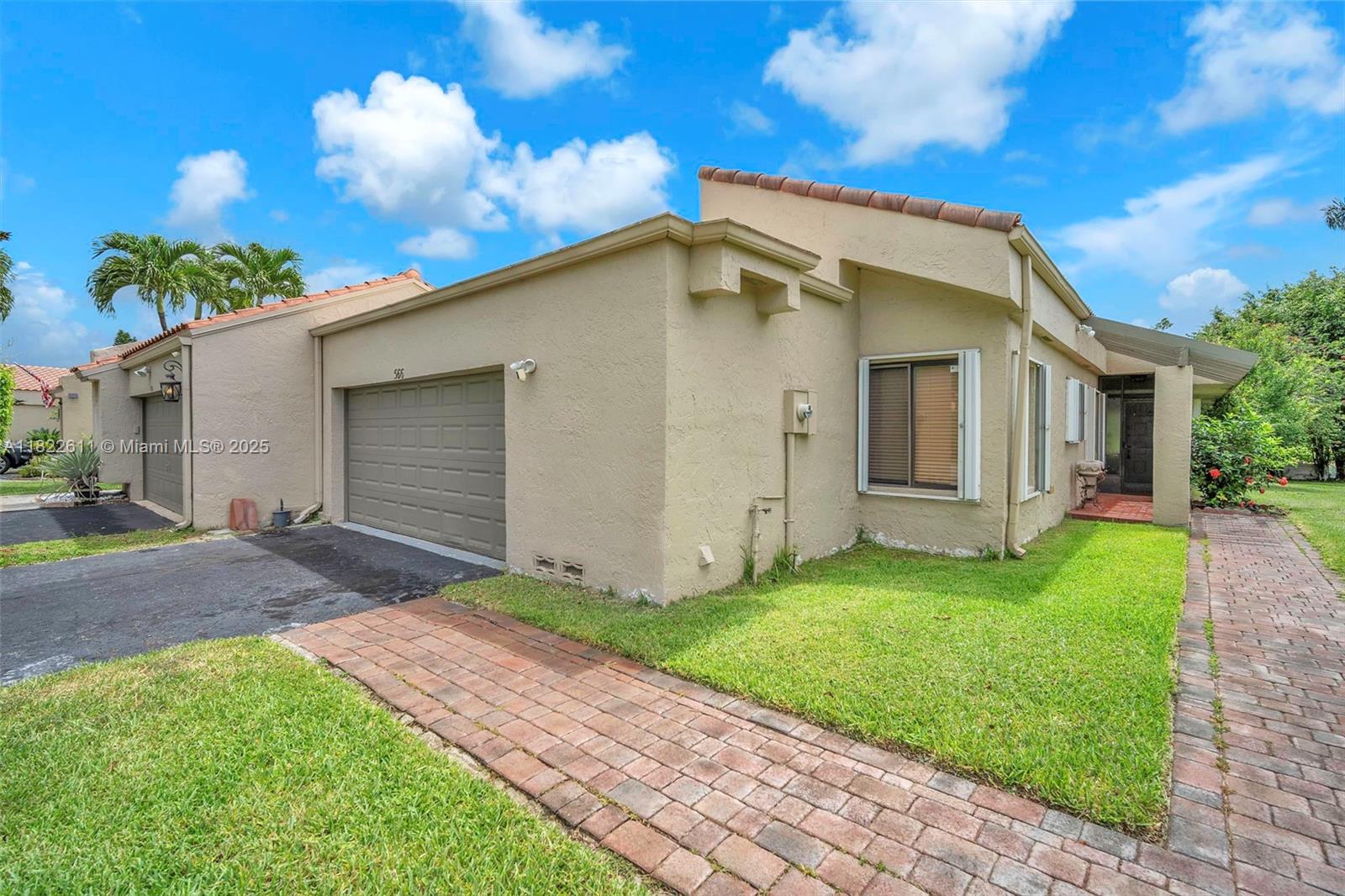 PRICED FOR QUICK SALE. Rare 1-story corner unit villa in Patio Village w/stunning lake views! Beautiful 3/2 home features 2-car garage, vaulted ceilings, enclosed patio & tile floors. Needs some roof work. Tankless water heater. Spacious living room offers abundant windows/natural light. Kitchen boasts plenty of cabinets & ample counter space. Dining room perfect for meals/entertaining. Primary bedroom with en-suite bath and walk-in shower. Second bedroom includes walk-in closet. Third bedroom used as den, easily convertible. Hurricane shutters included. Association payment includes exterior paint. Bonaventure Town Center Club features pools, tennis, bowling, indoor basketball, gym, billiards & more. Low HOA fees & Bonaventure annual dues $385. Available for immediate rental. Easy to show.