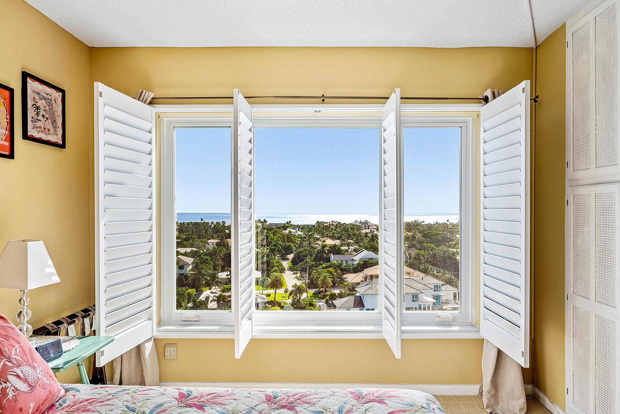 East Delray, Waterfront with Ocean and Intrcoastal Views, and close proximity to Atlantic Ave for under $500,000. This incredible 1/1.5 is located on the 11th floor of The Barrton. The short distances (.64 miles) to Atlantic Ave. and (1.2 miles) to the beach makes this a very desirable building in Delray. 24/7 security. Impact windows. New Bosch AC Unit and hot water heater. Parking space close to entrance. Association application fee is $150 and deposit is a $500 refundable move-in deposit. Financing requires 20% down. No rentals allowed. No Pets. No Washer and Dryer in unit. Common laundry room on each floor. Additional 107 sq. ft. of the enclosed porch area is included in the living sq. ft. All measurements are approximate and subject to error, omission, and changes without notice.