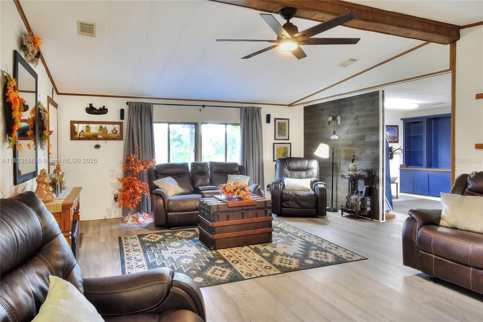 Welcome to a unique homestead on 4.89 private, unrestricted acres—no HOA or CDD! The main home is a 3-bed, 2-bath Biltmore model (1982) with approx. 1,800 sq. ft., featuring a fireplace, central air/heat, and new metal roof. A second 1-bed, 1-bath cottage with extra room offers flexible space for guests or work. Enjoy a spring-fed pond, chicken coop, large shed, and ample parking for RVs and toys. Just 2 miles from Sebring Raceway and close to town, this property blends rural charm with real-world convenience. Ideal for a hobby farm, retreat, or family compound.