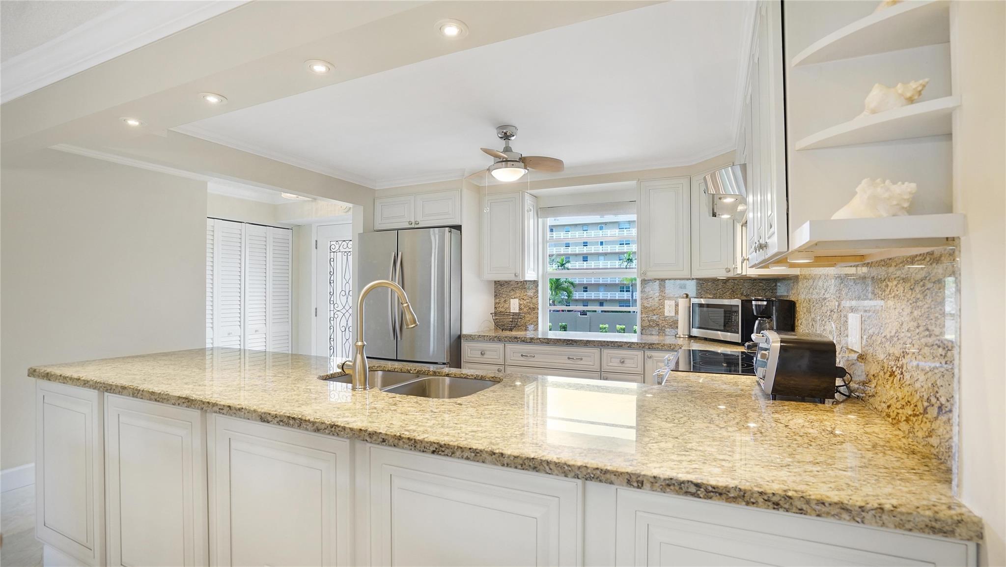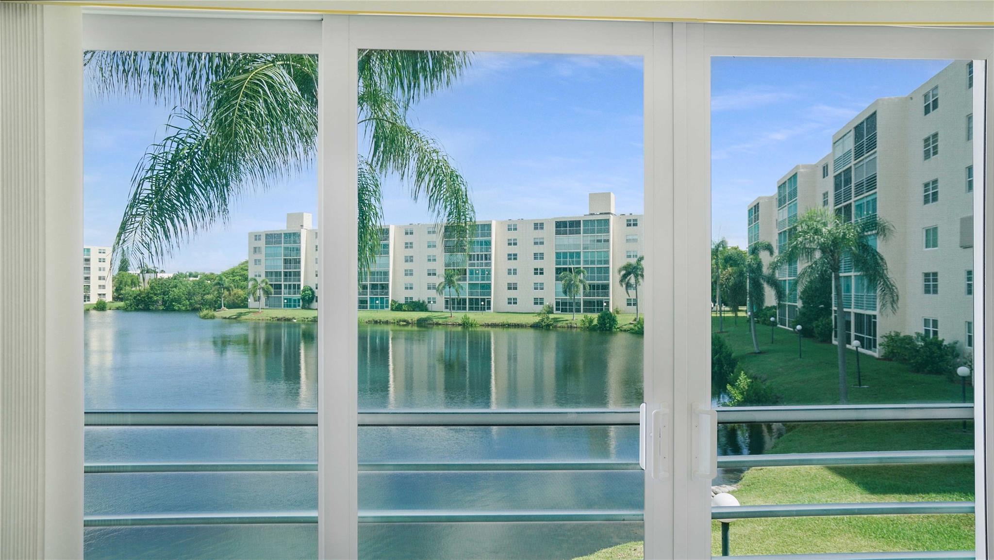 Totally renovated waterfront condo with stunning lake views in a quiet 55+ community, featuring tiles throughout, open kitchen with white custom kitchen cabinets, SS appliances, granite countertops, updated bathrooms with custom vanities, impact windows and door, close to shopping, banking, transportation, parks, ocean access. Located east of US 1 next to the Anne Kolb Nature Center and much more.