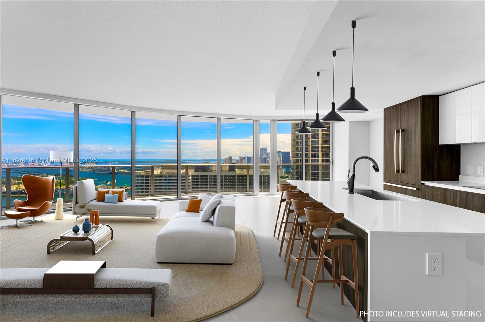 Fabulous 3BR/4BA Southeast corner unit on the 41st floor at Aria On The Bay offers a full wrap-around terrace and spectacular panoramic views over the open bay, city and ocean. Sip your coffee while watching the sunrise over Miami Beach, Fisher Island & beyond and enjoy cocktails and dinner with stunning sunset views over the city. Porcelain floors and electric shades throughout, marble baths and sleek open chef’s kitchen with quartz countertops and top-of-the-line stainless steel appliances. All the closets have been outfitted with built-ins. A full service building with great amenities in one of Miami’s most desirable locations close to shopping, dining, The Design District, Brickell, Miami Beach and Miami International airport. Just furnish it with your taste and make it your home.