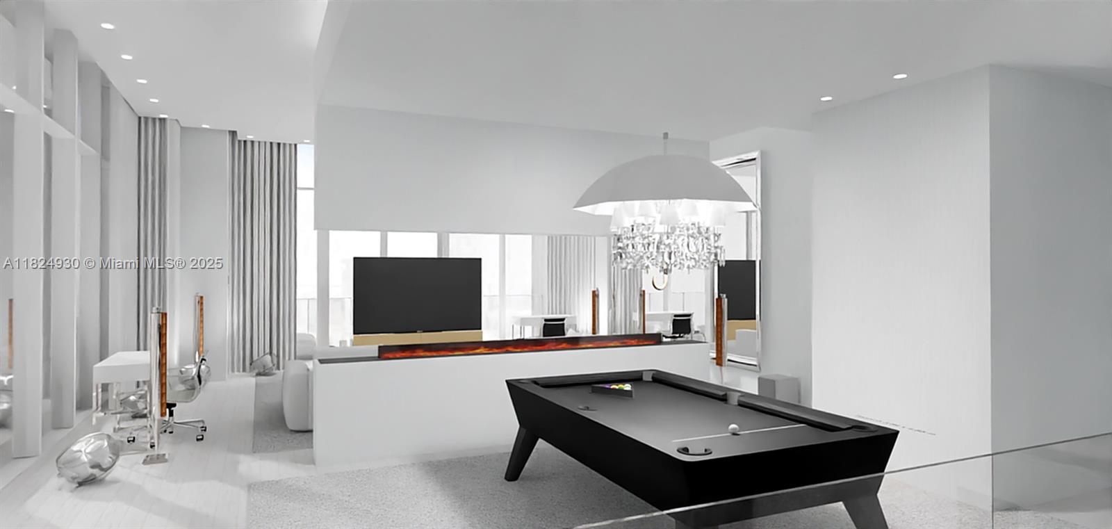 Penthouse 2 at Missoni Baia in Miami’s Edgewater offers refined modern luxury with panoramic views from Biscayne Bay to the city skyline. This rare south-facing residence spans two floors and approx. 7,000 sq ft, including a 2,700 sq ft wraparound terrace up to 12 feet deep, ideal for elevated outdoor living. The upper level features 13-foot ceilings and open-plan living/dining areas, ready for custom or curated designer finishes. A sleek staircase leads to five spacious bedrooms, including a lavish corner master suite and a private theater. Offered with architectural plans and an optional luxury package: Poggenpohl kitchen, designer baths, premium lighting, Crestron tech, top flooring, furnishings, and a Louis Vuitton pool table, defining elite Miami living.